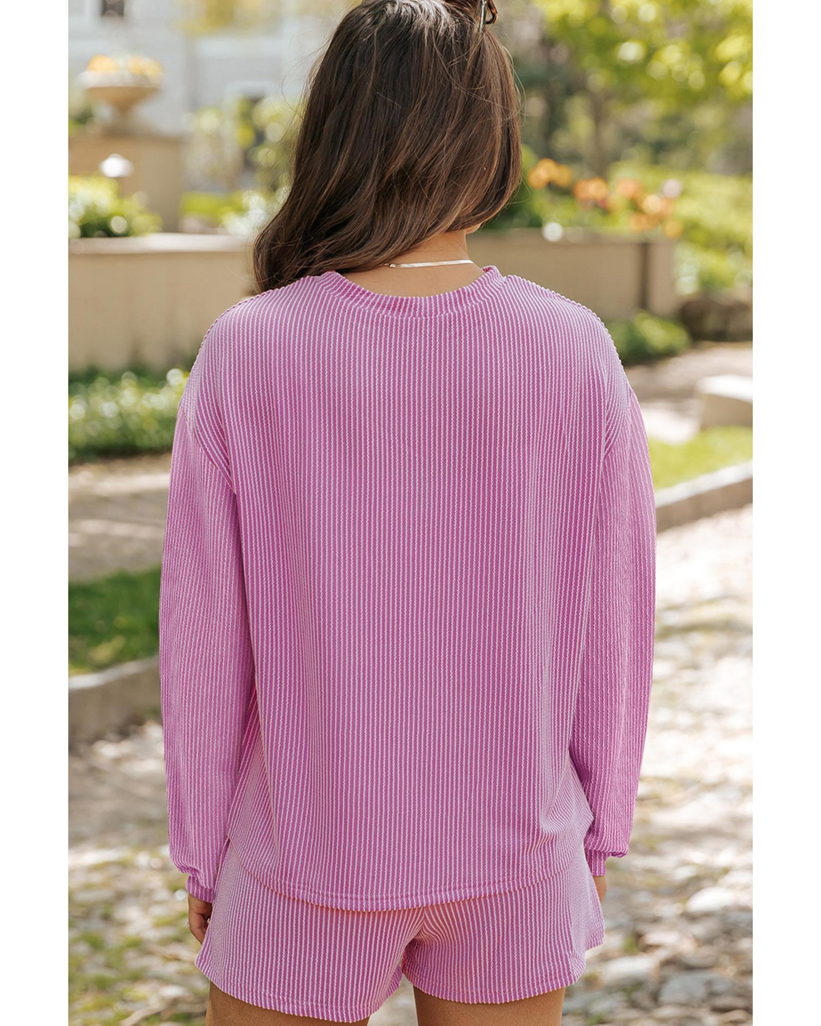 Casual Corded Knit Long Sleeve Top and High Waist Shorts Set - S Original price was: $72.99.Current price is: $38.99.