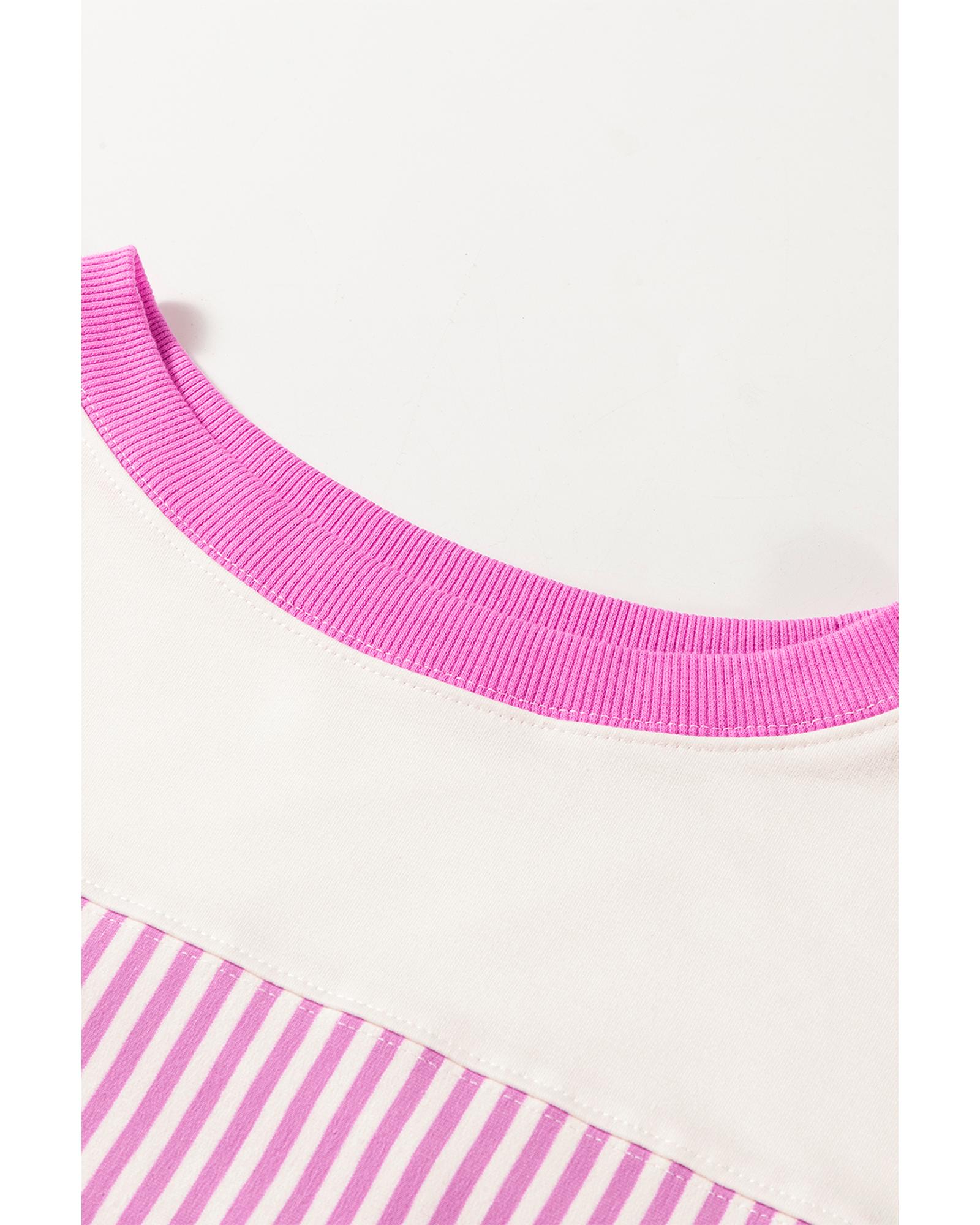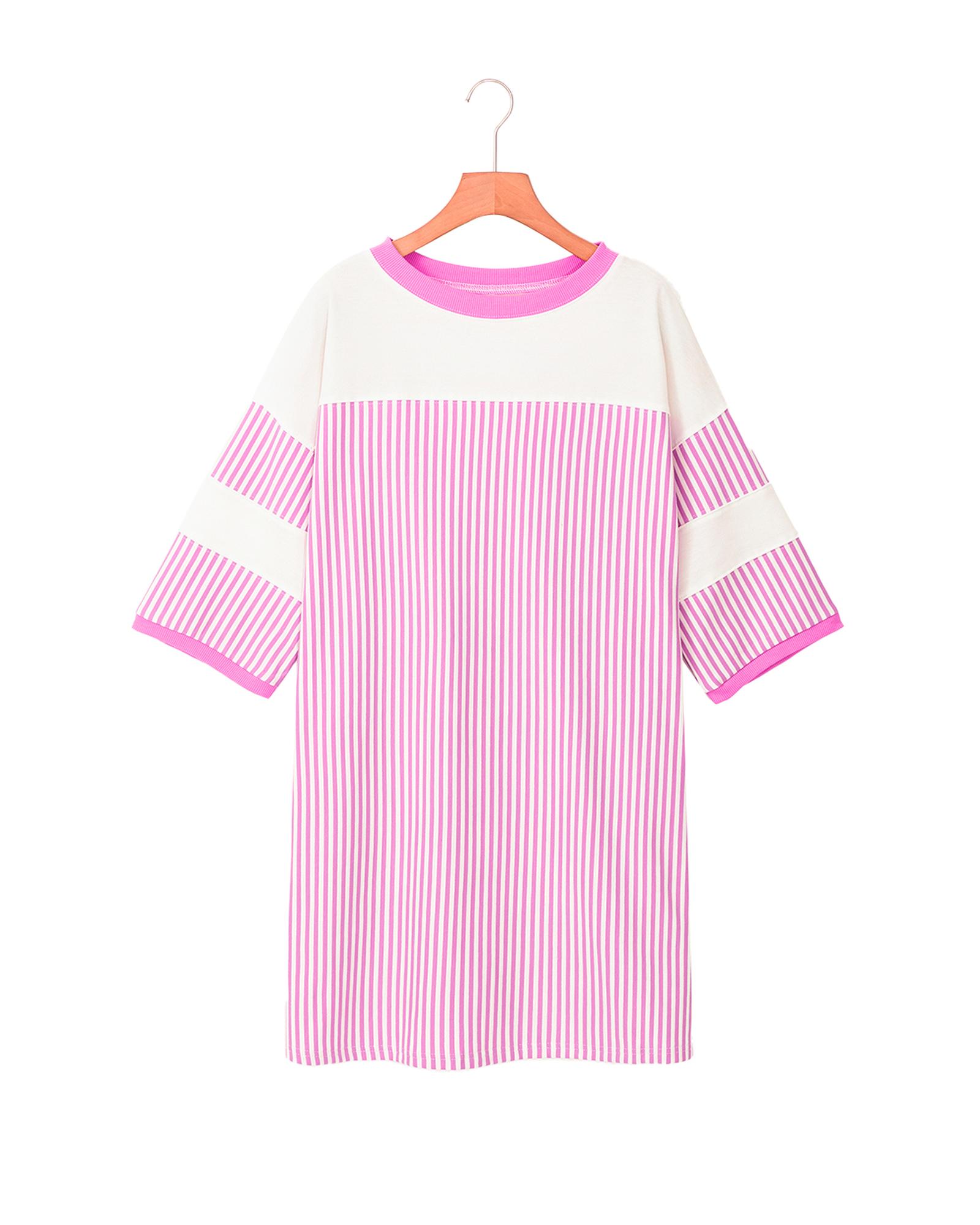 Phalaenopsis Striped Patchwork Three Quarters Sleeve Loose Mini Dress – L