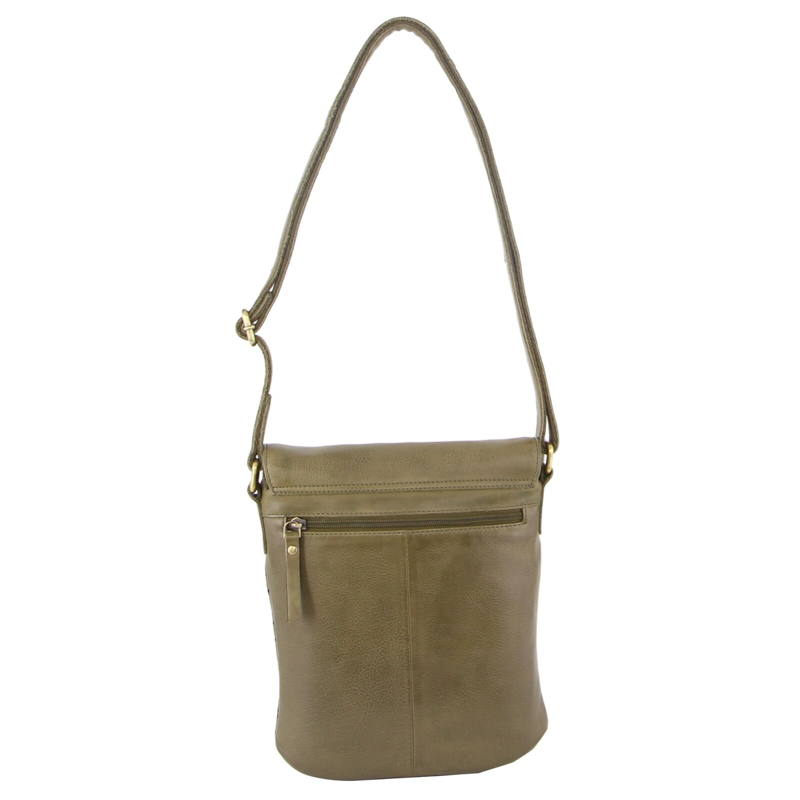Pierre Cardin Leather Perforated Cross-Body Bag with Flap Closure – Olive