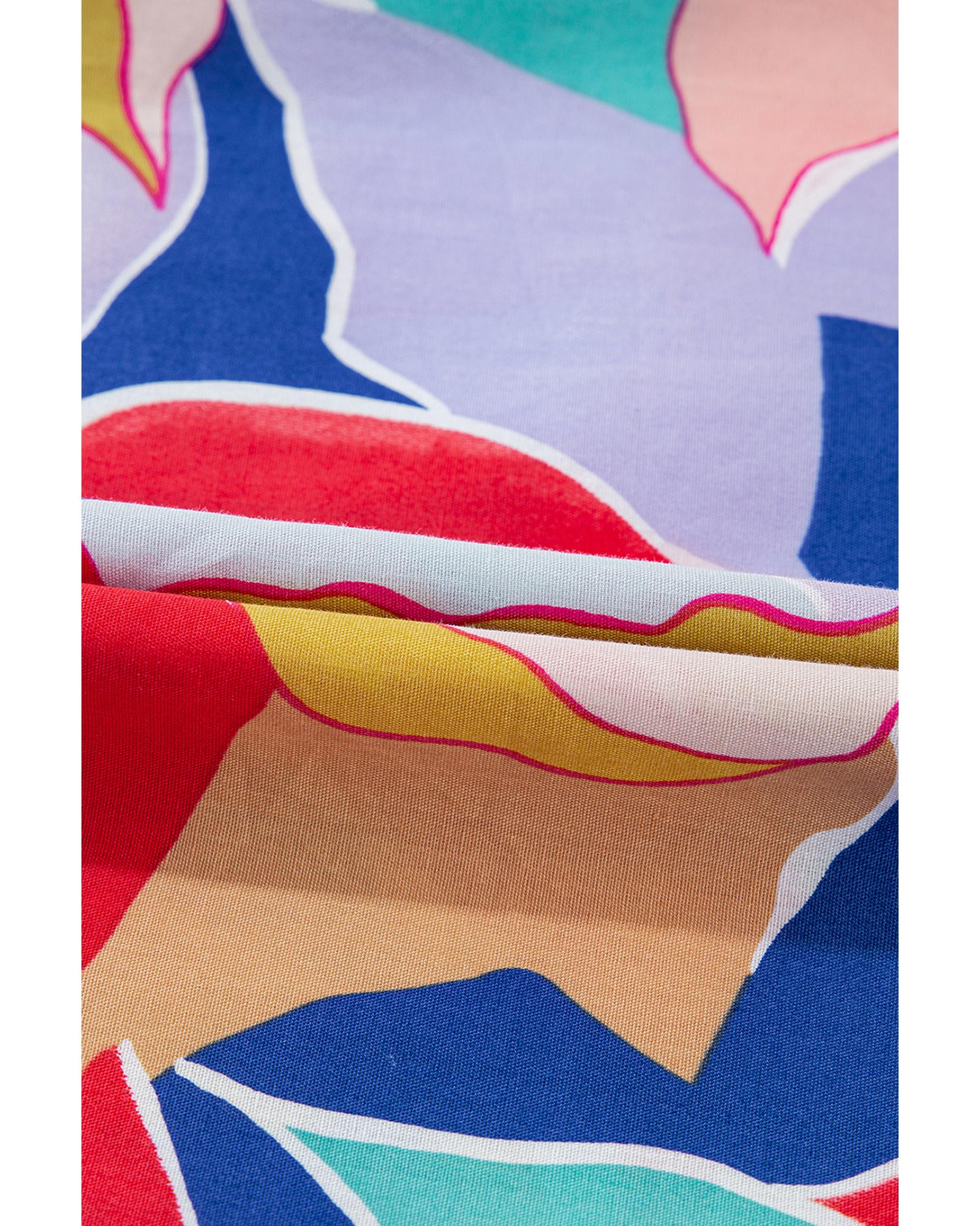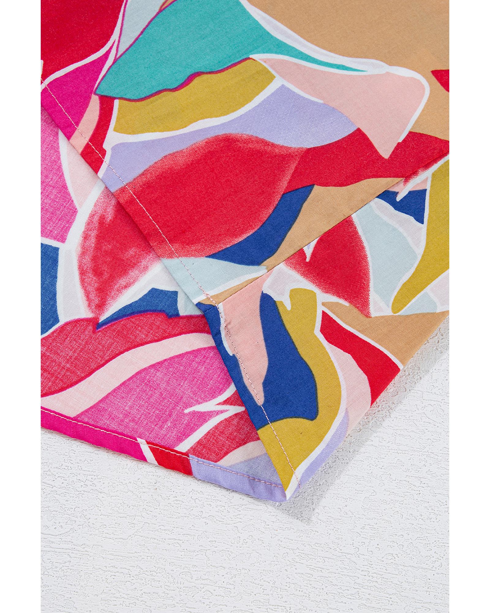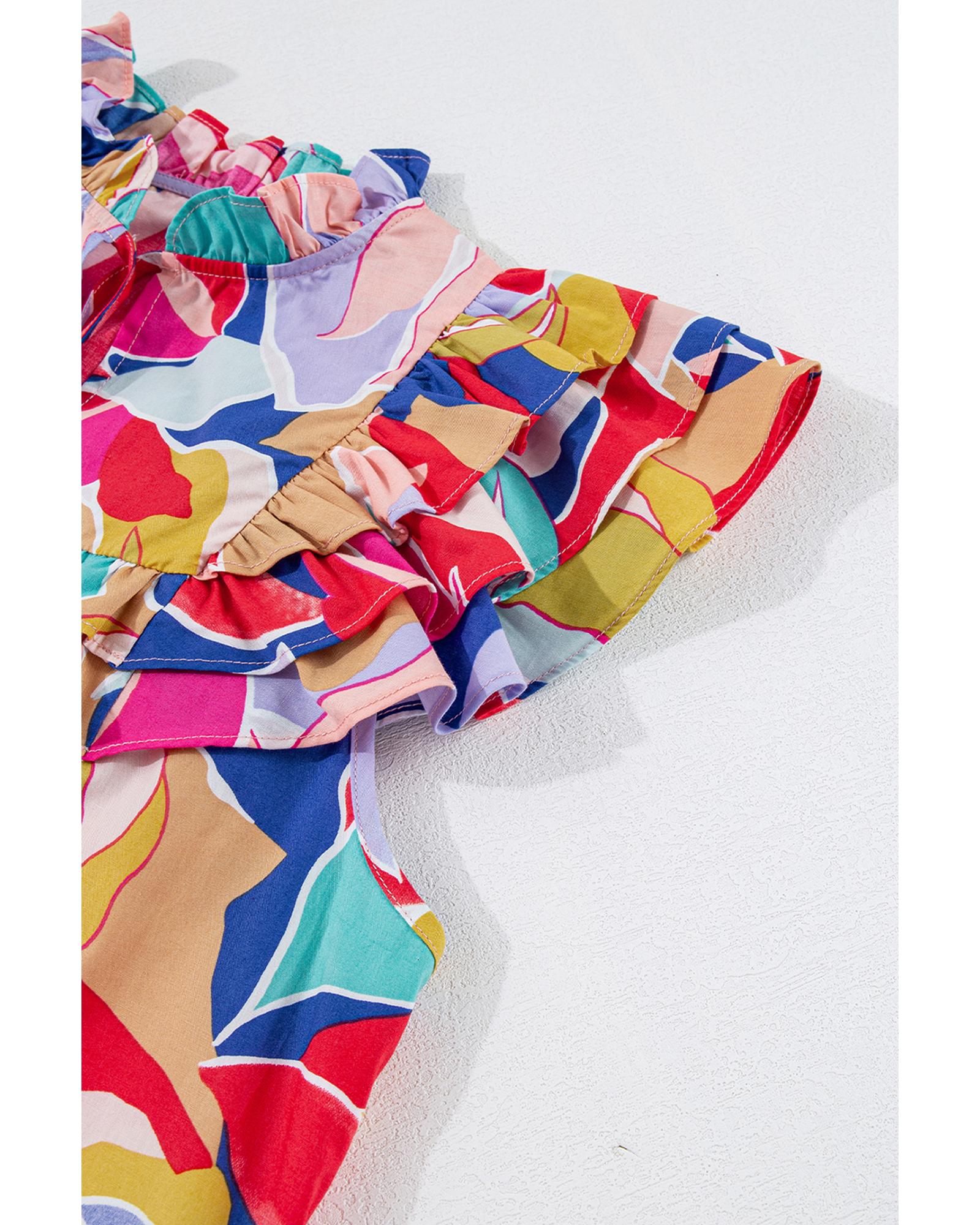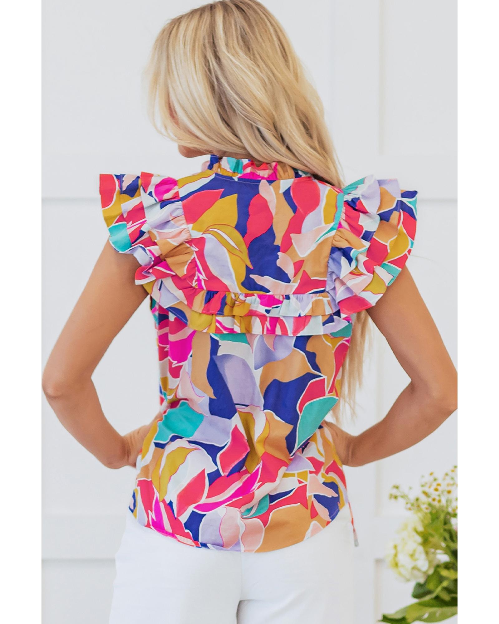 Pink Abstract Printed Ruffled Flutter Sleeve Tied Split V Neck Blouse – M