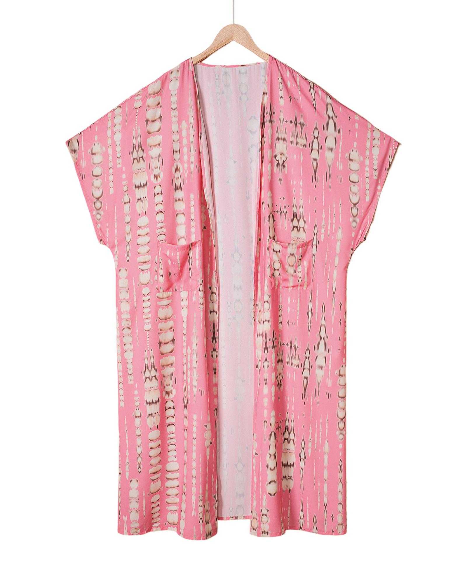 - Pink Bohemian Tie Dye Oversize Long Kimono