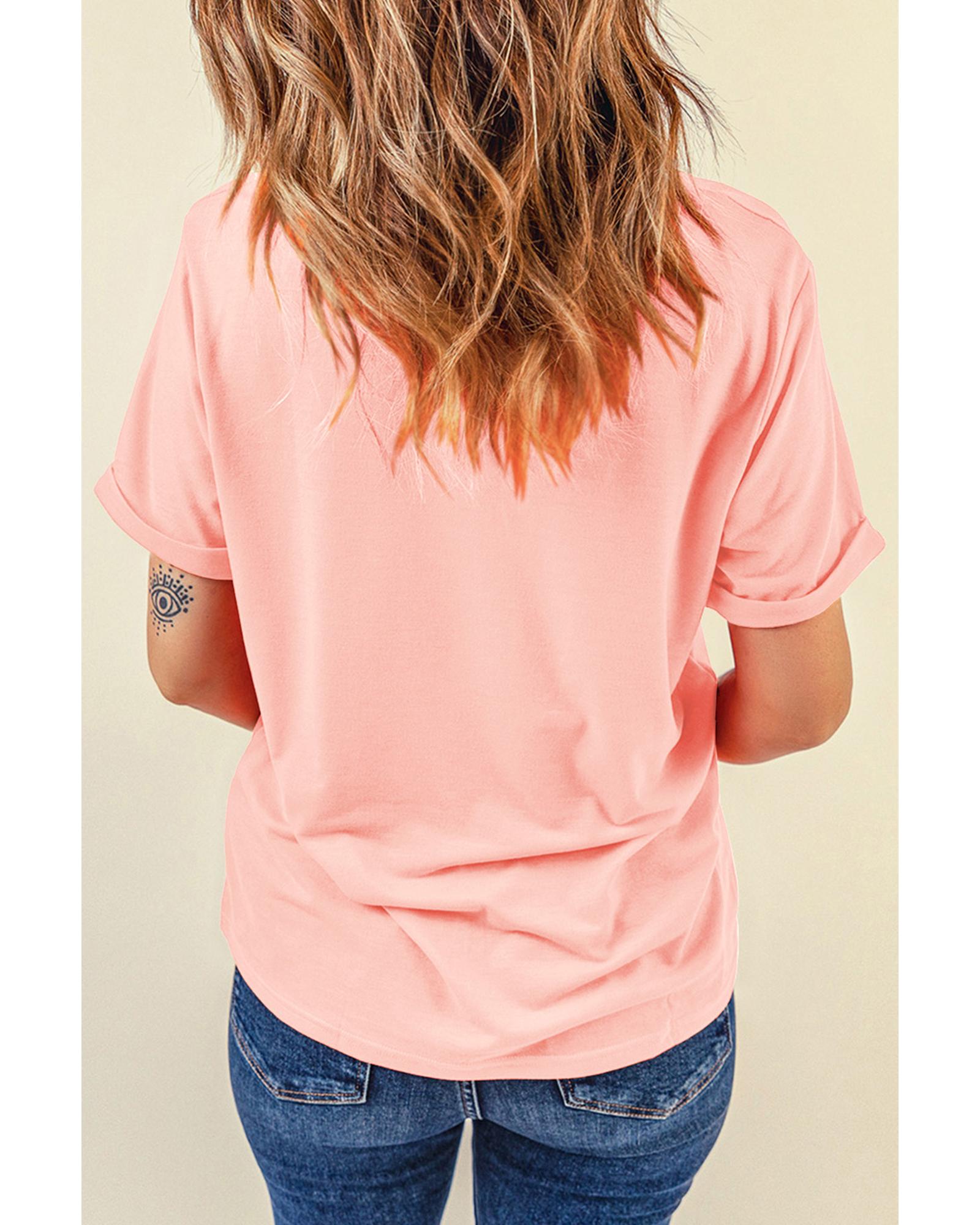 Pink Bow Knots Print Slim Fit Crew Neck T Shirt – S