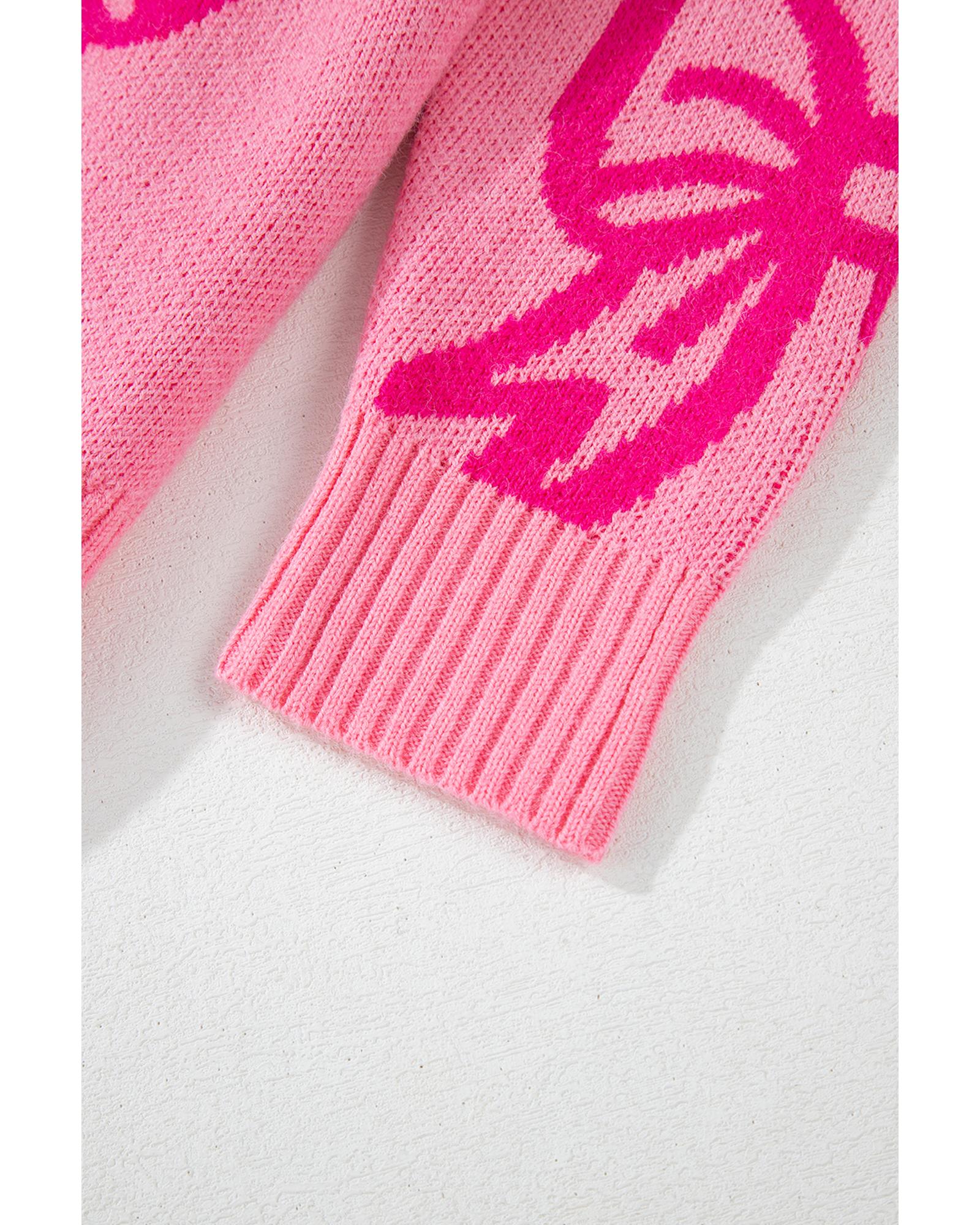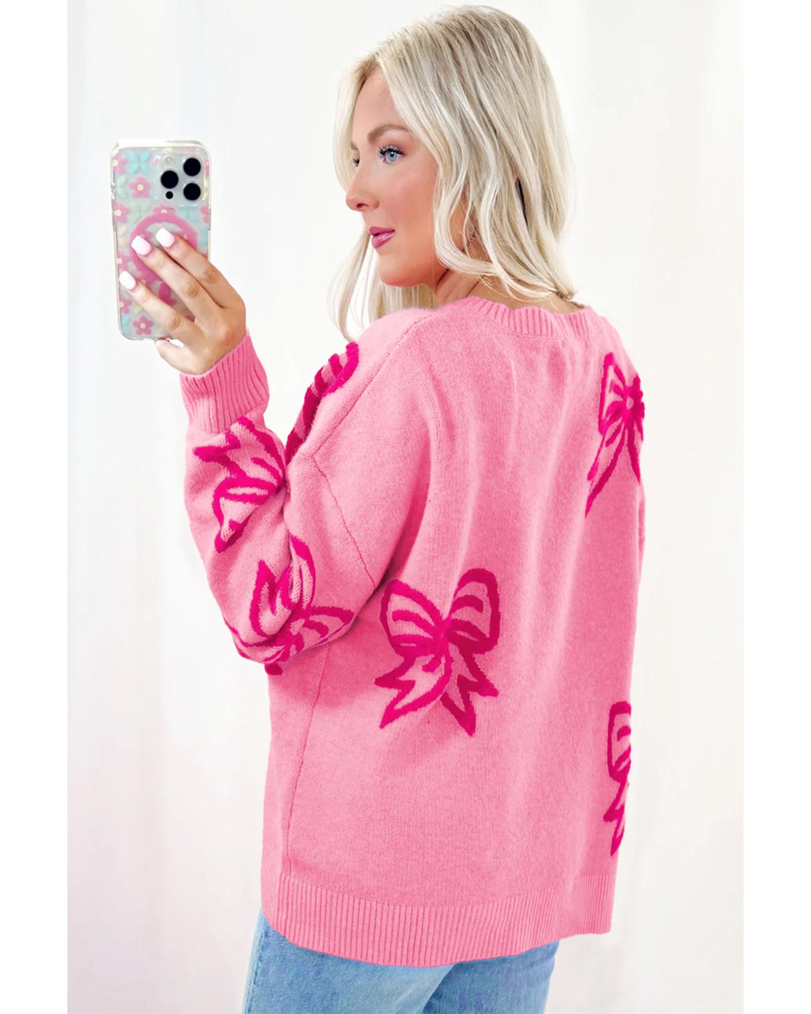 Pink Bow Pattern Drop Shoulder Loose Sweater – XL