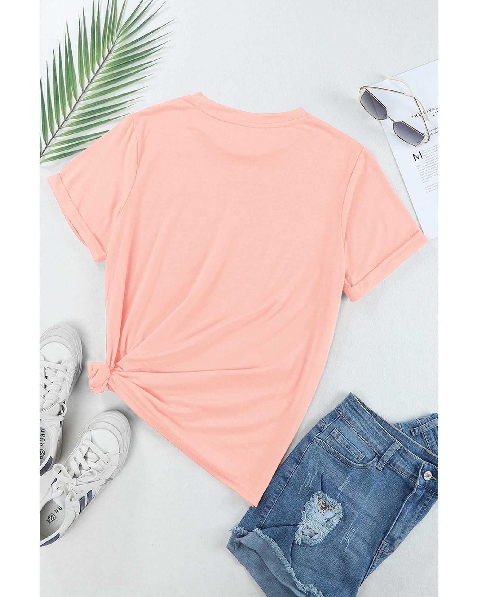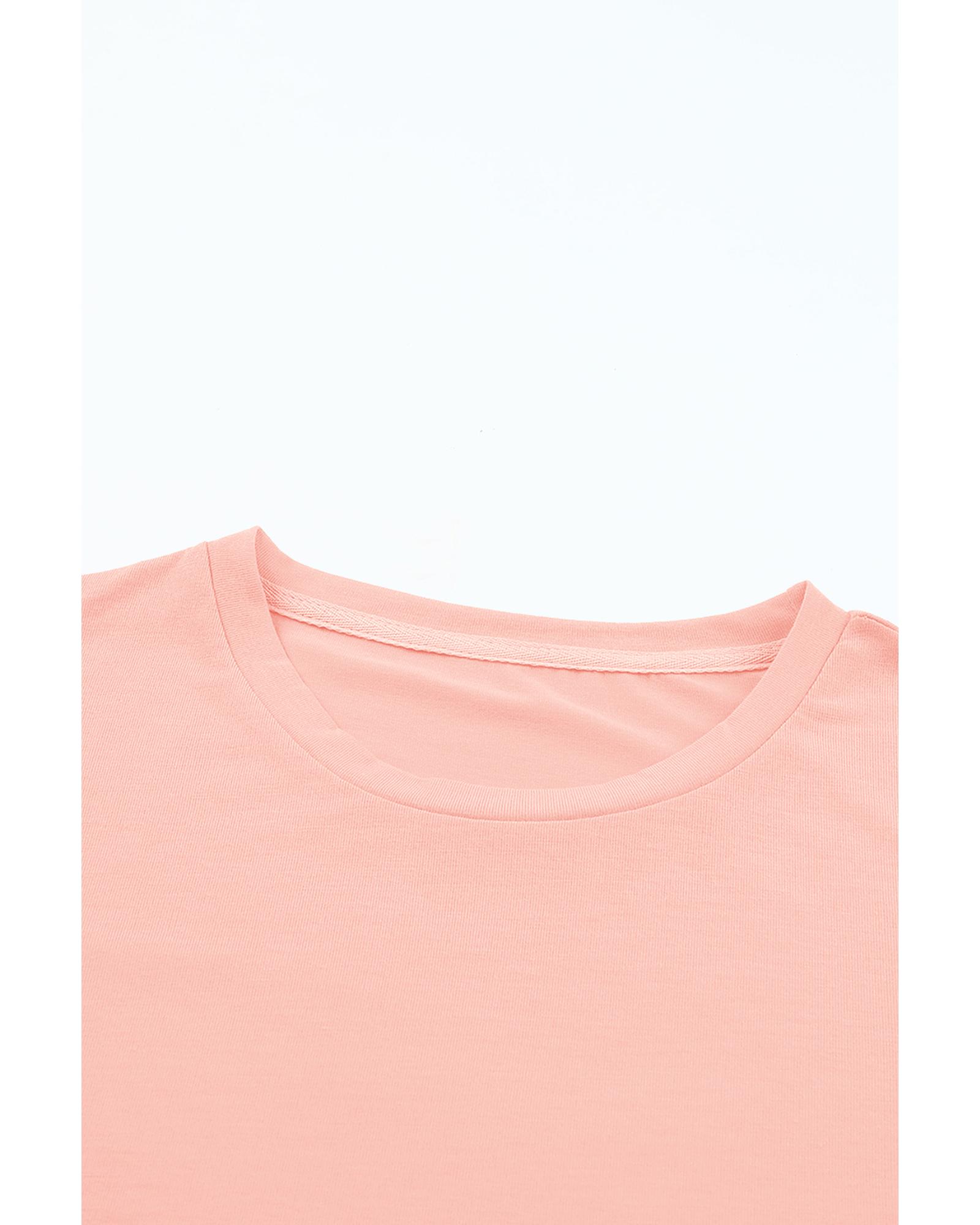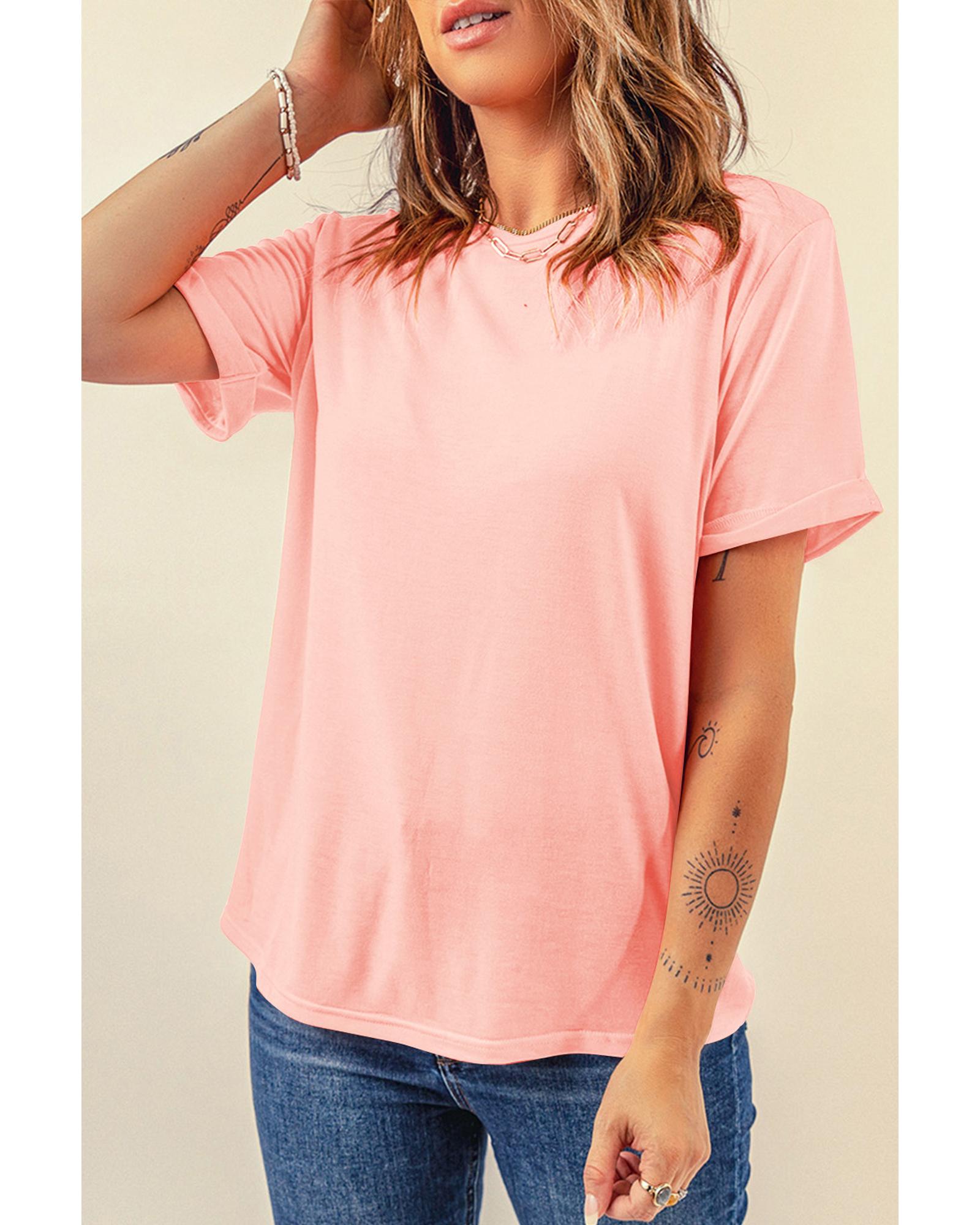 Pink Casual Plain Crew Neck Tee – M