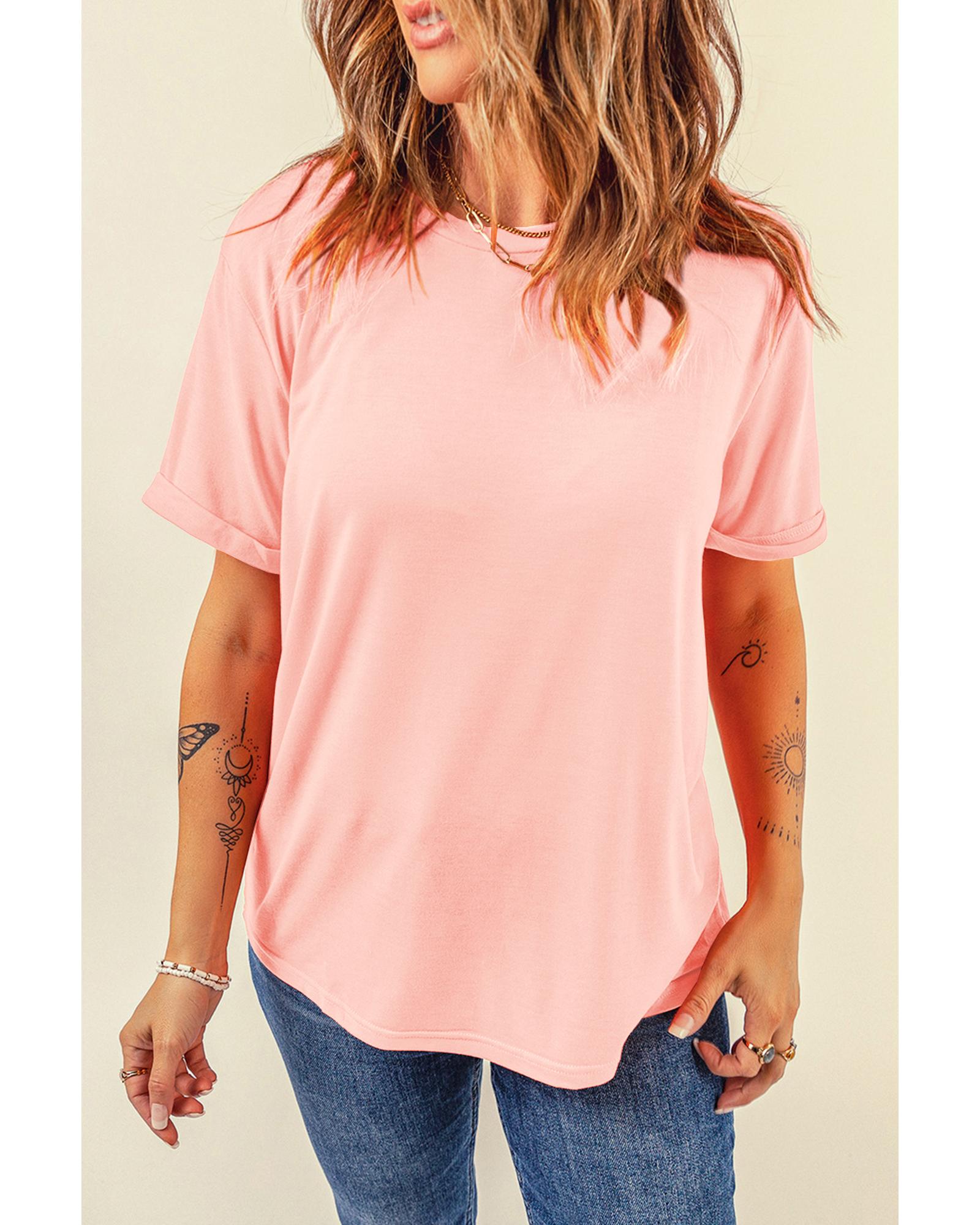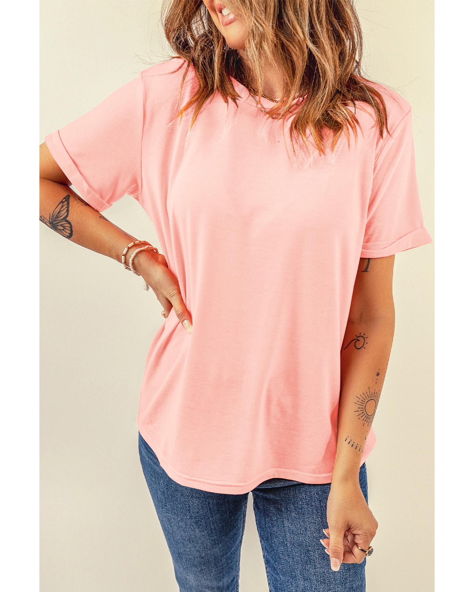 Pink Casual Plain Crew Neck Tee – XL