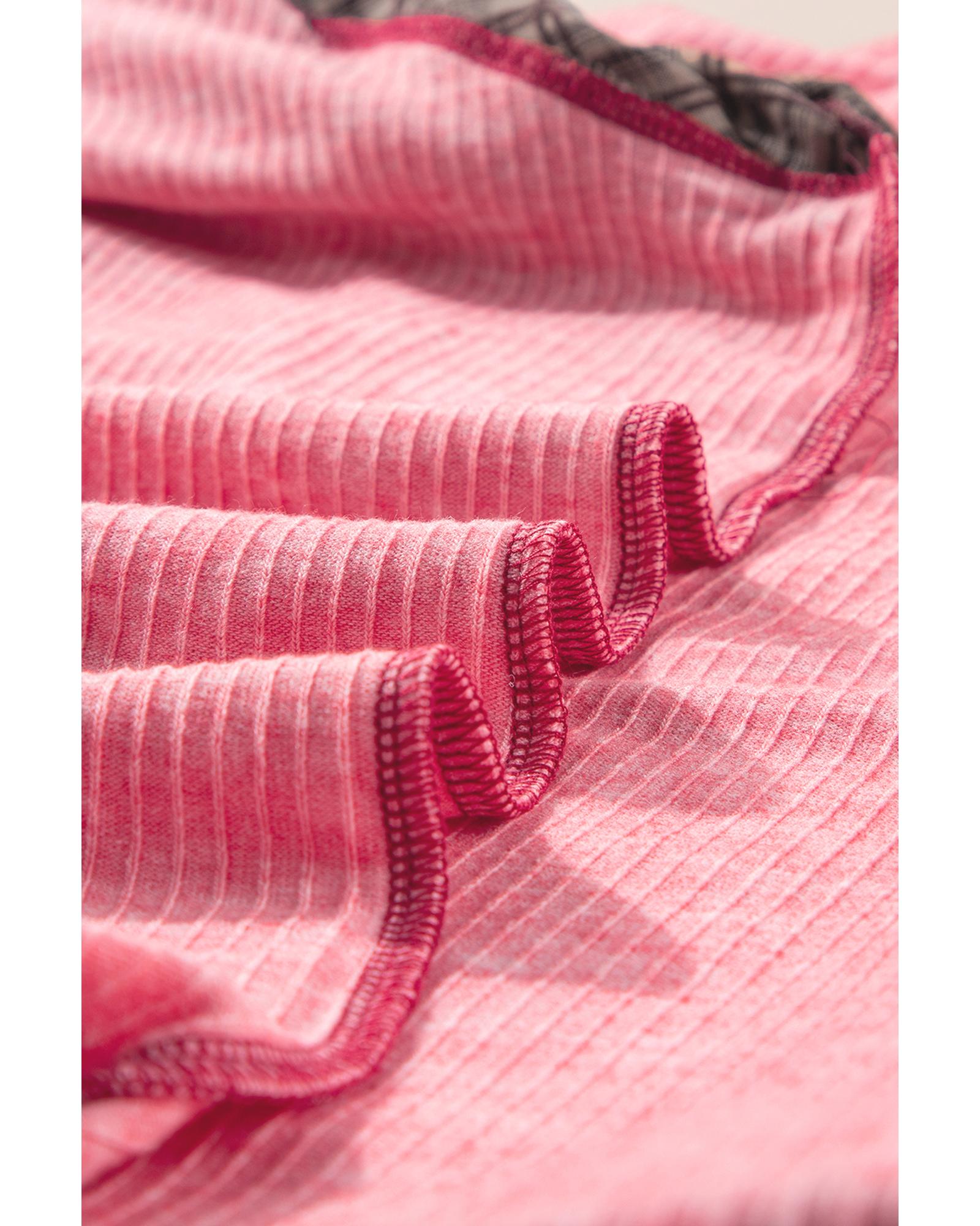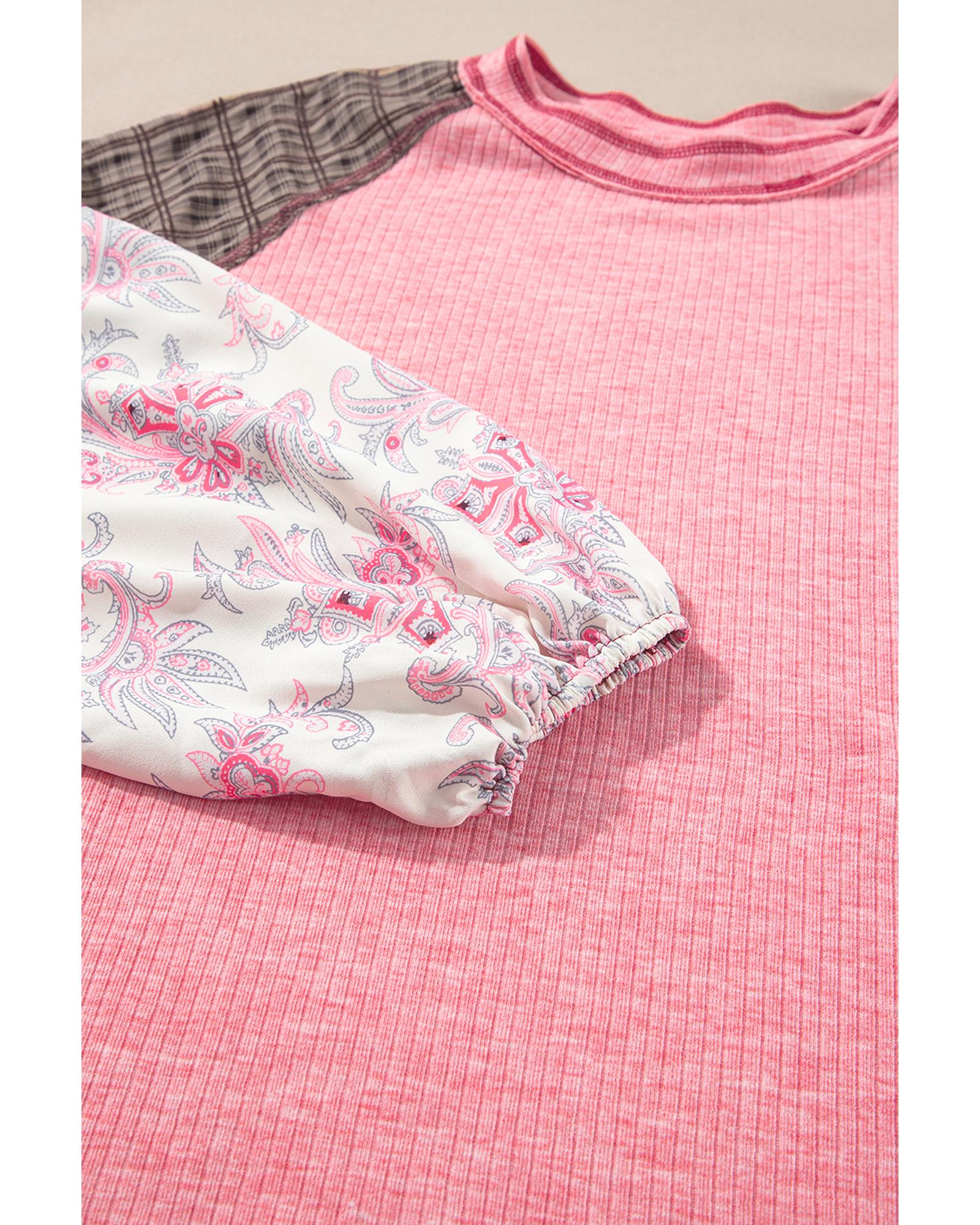 Pink Checkered Paisley Patchwork Raglan Sleeve Seamed Plus Size Top – 4X