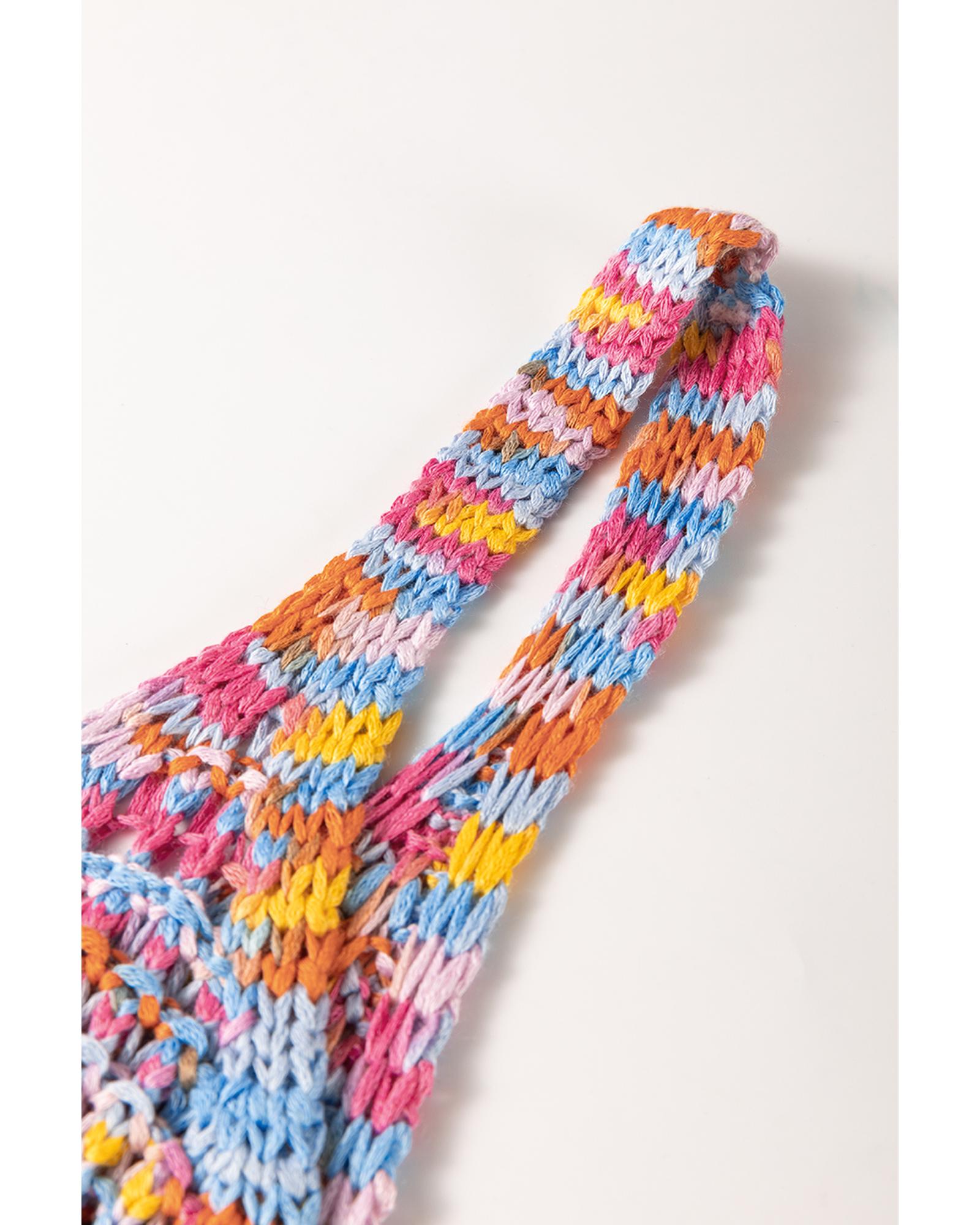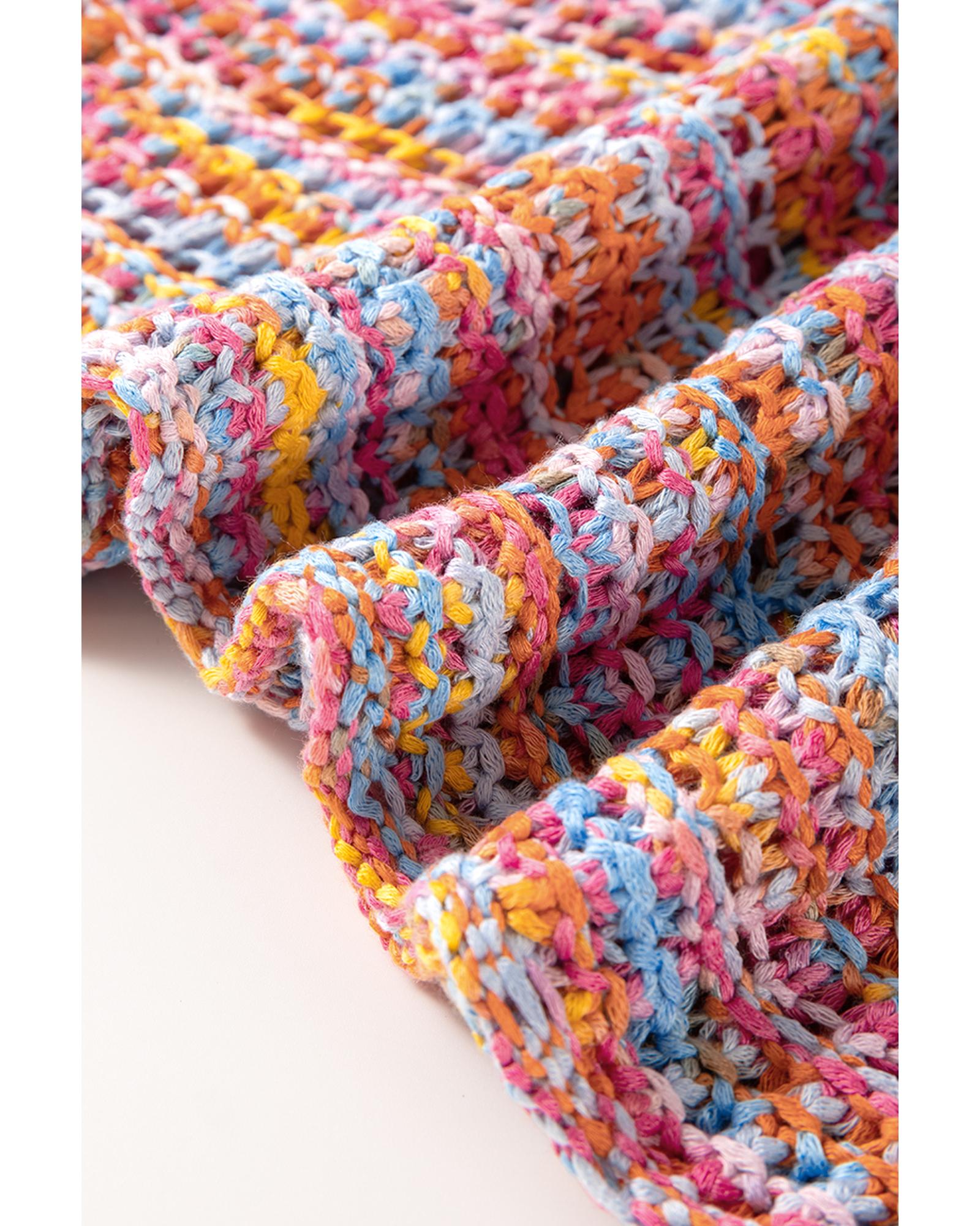 Pink Color Contrast Crochet Loose Fit Sweater Vest – M