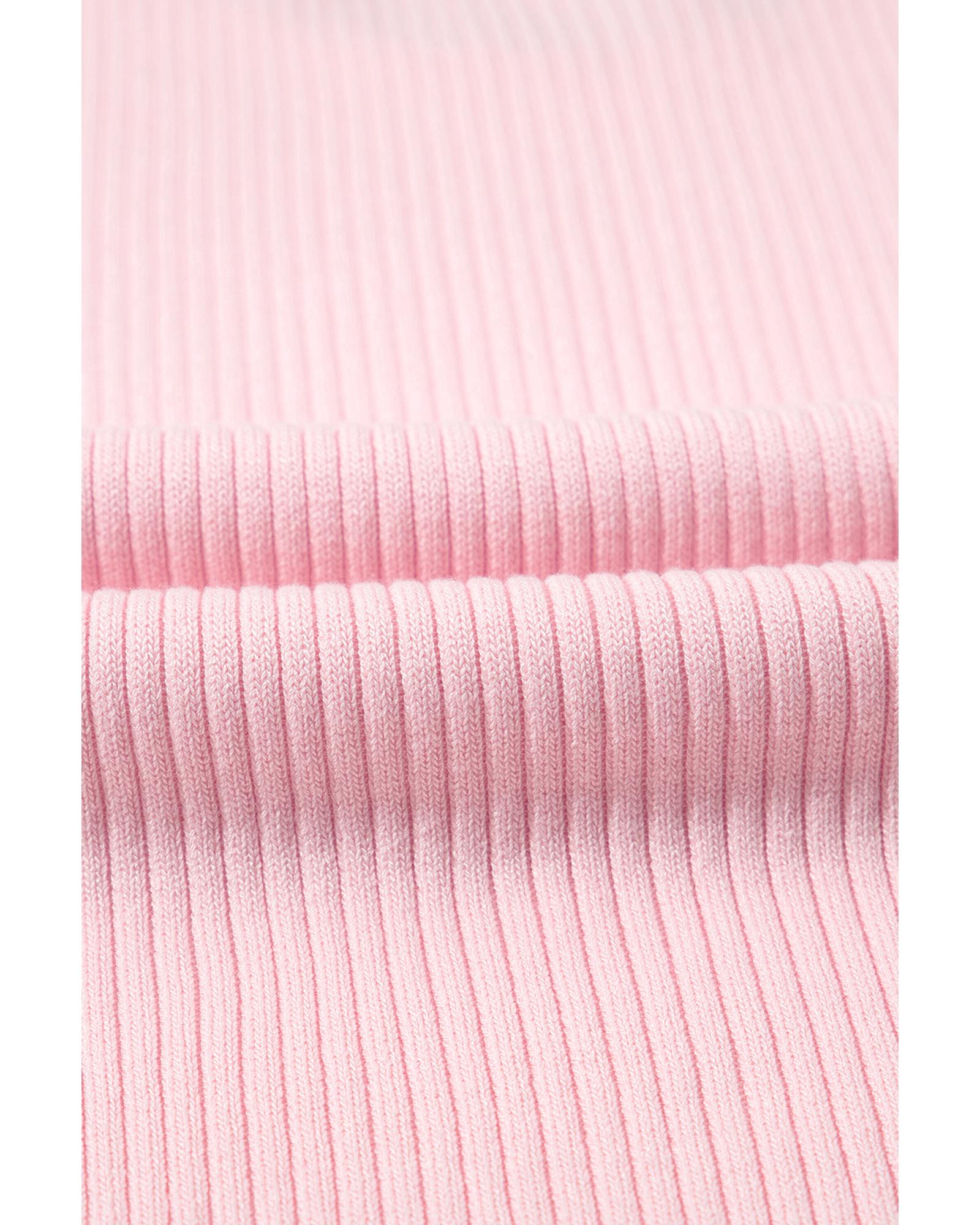 Pink Colorblock Edge Ribbed Knit U Neck Tank Top – L