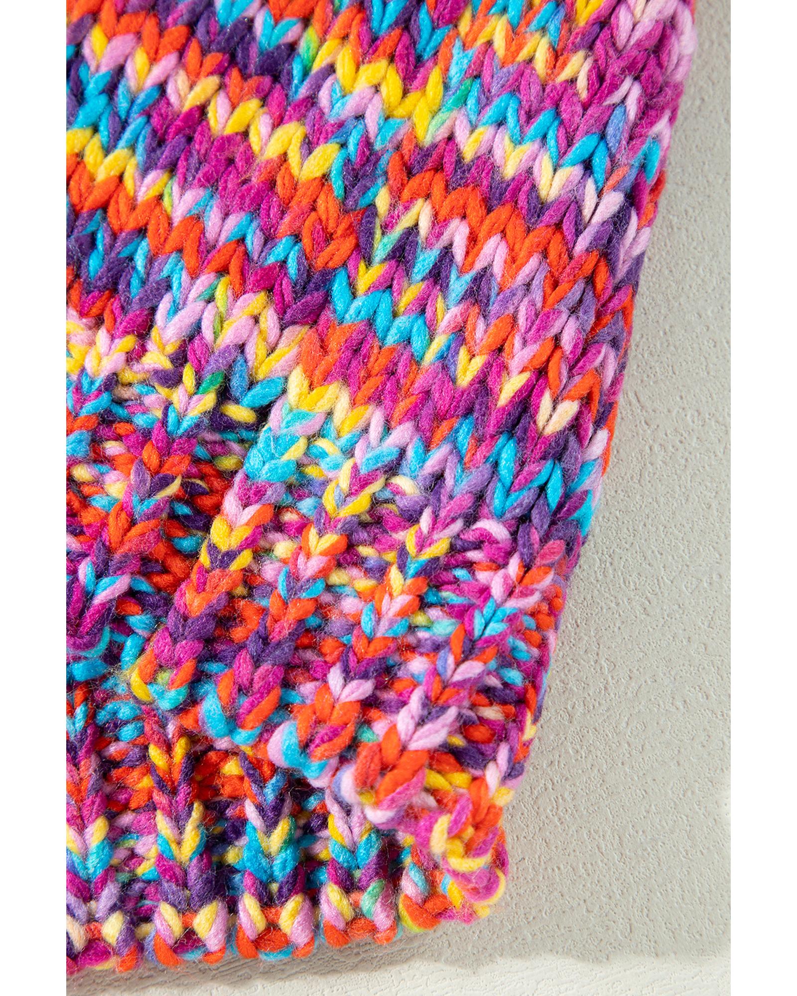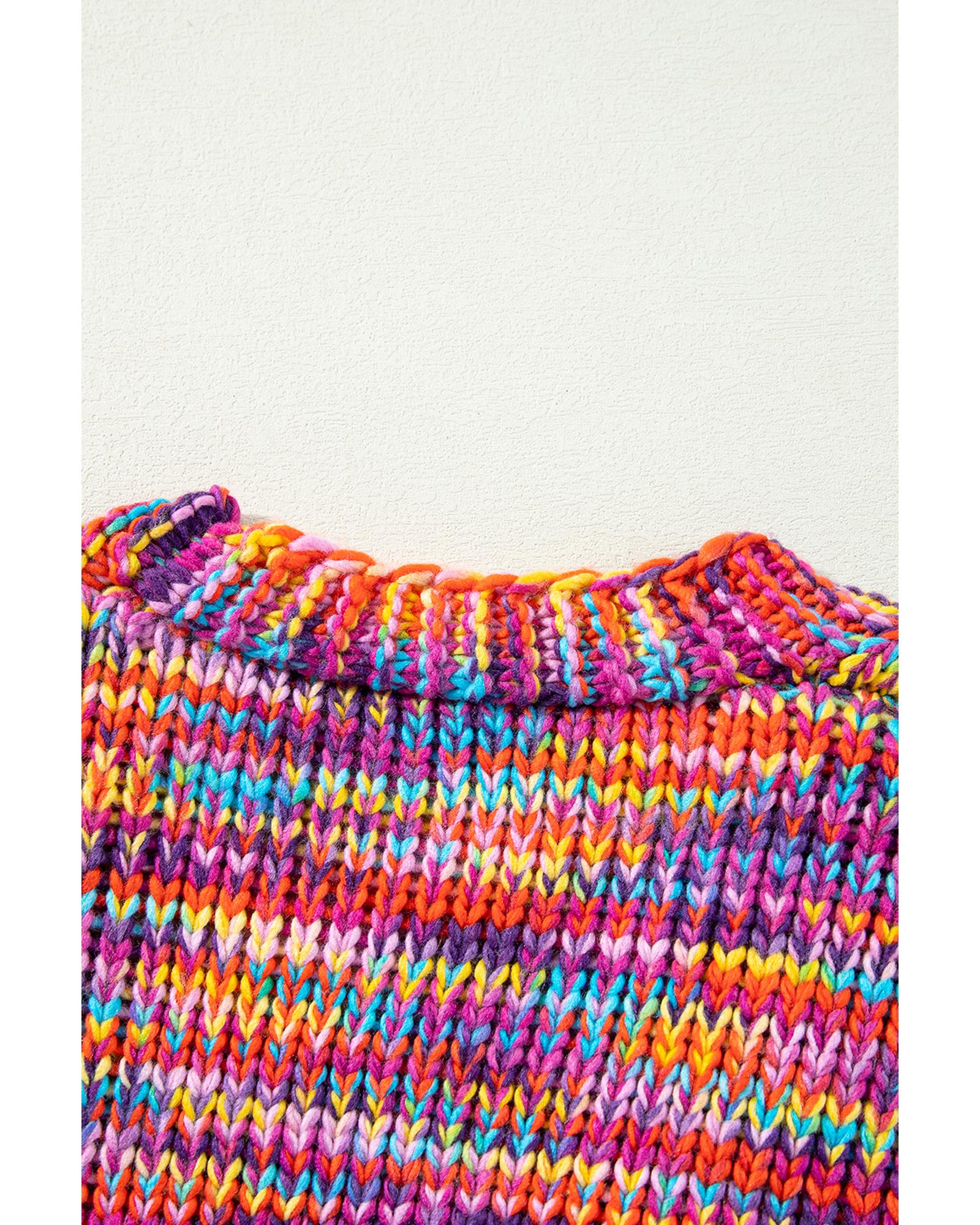 Multicolor Chevron Striped Drop Shoulder Sweater - L