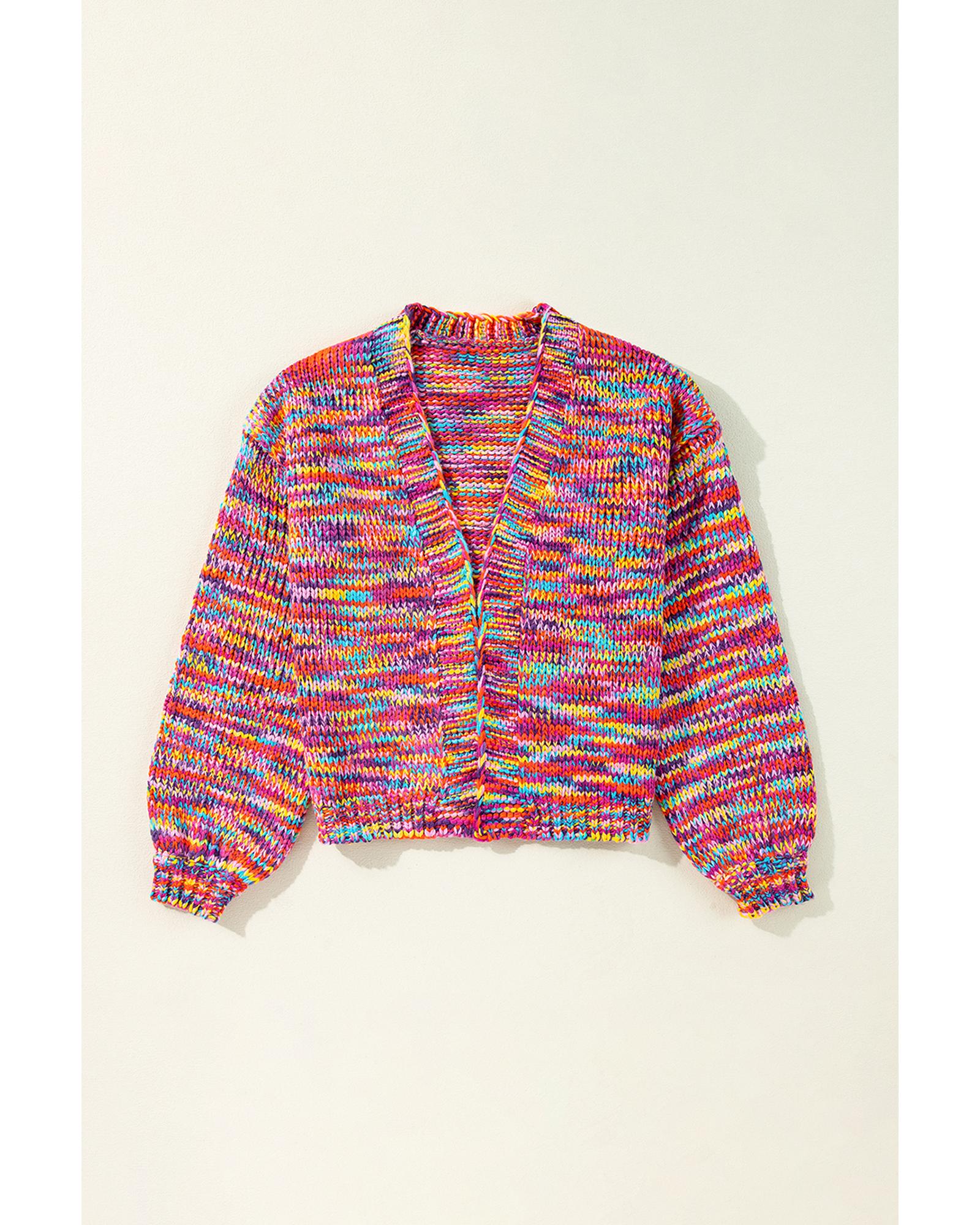 Pink Confetti Drop Shoulder Open Front Cardigan – XL