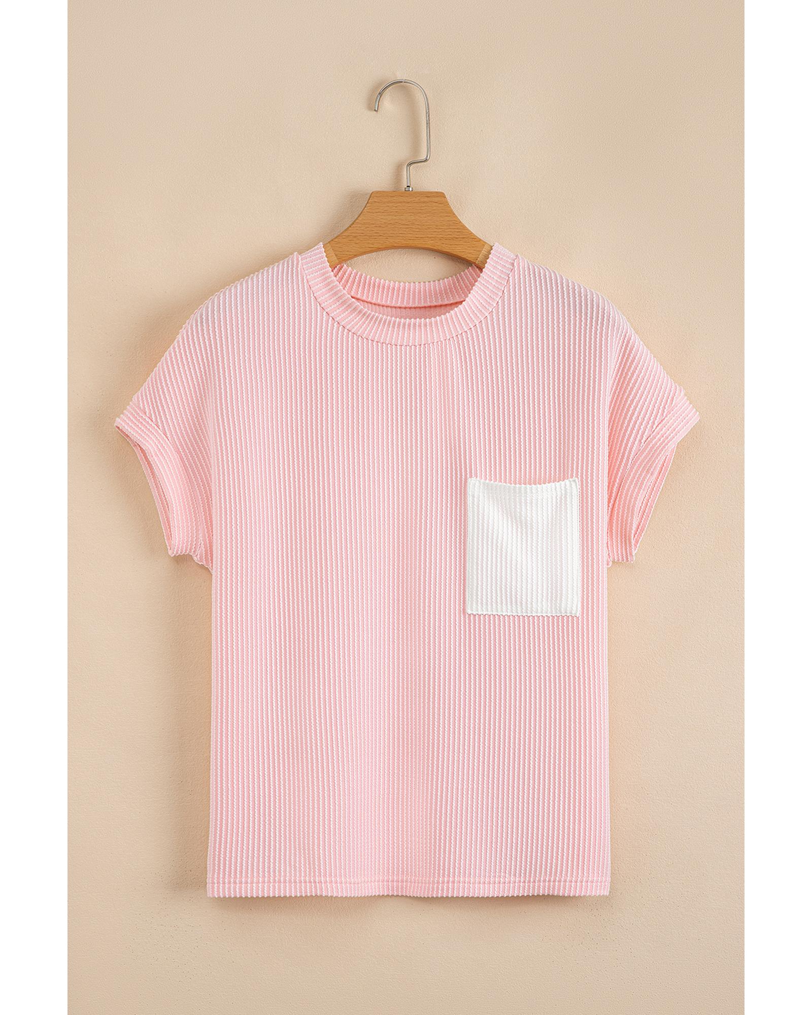 Pink Corded Knit Color Block Pocketed Crew Neck T Shirt – L