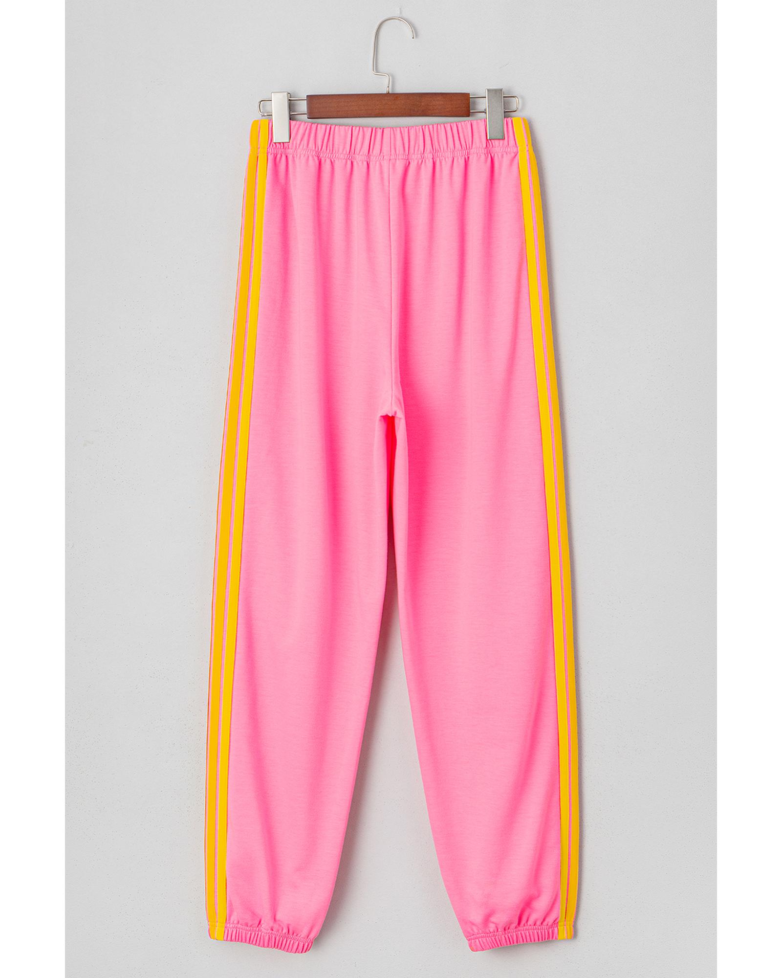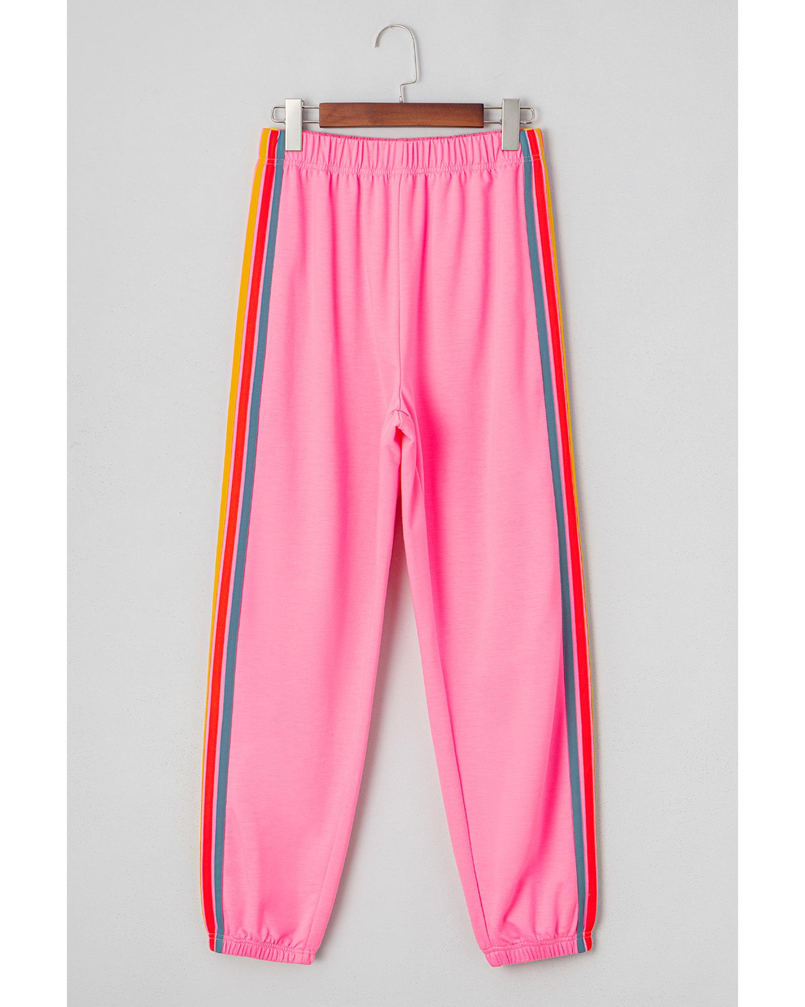 - Pink Counting Rainbows High Waist Sweatpants for women