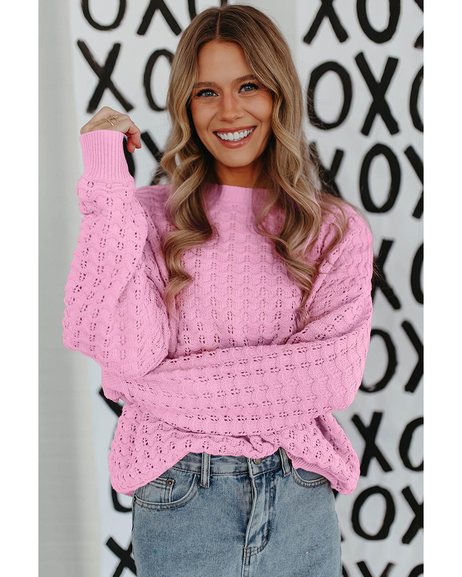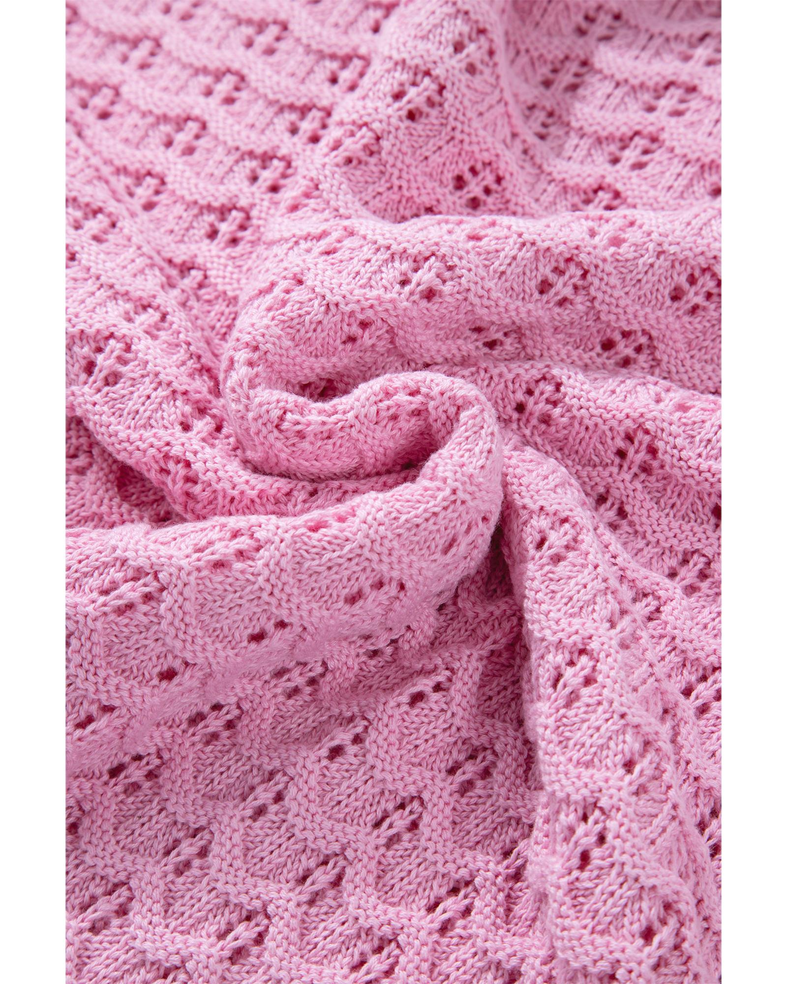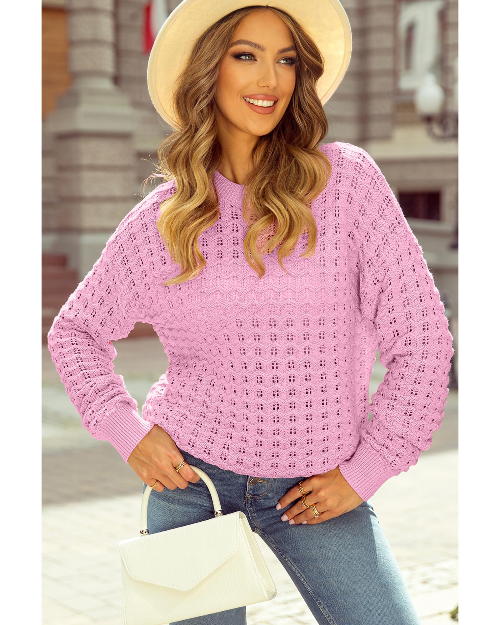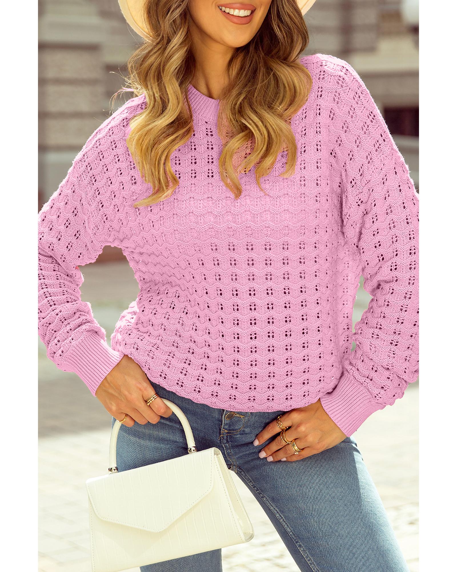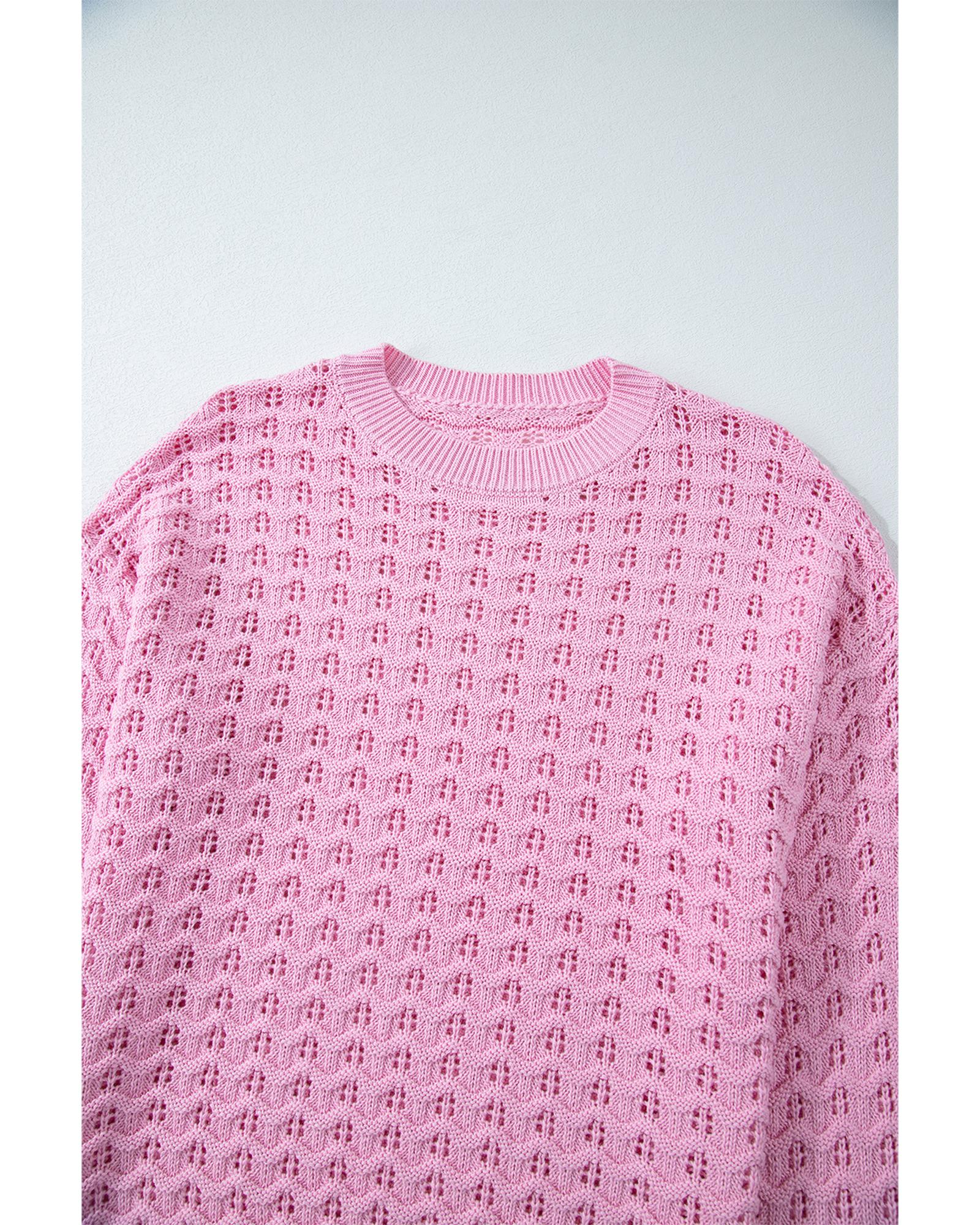 • Delicate and fashionable Pink Crochet Knit Drop Shoulder Sweater