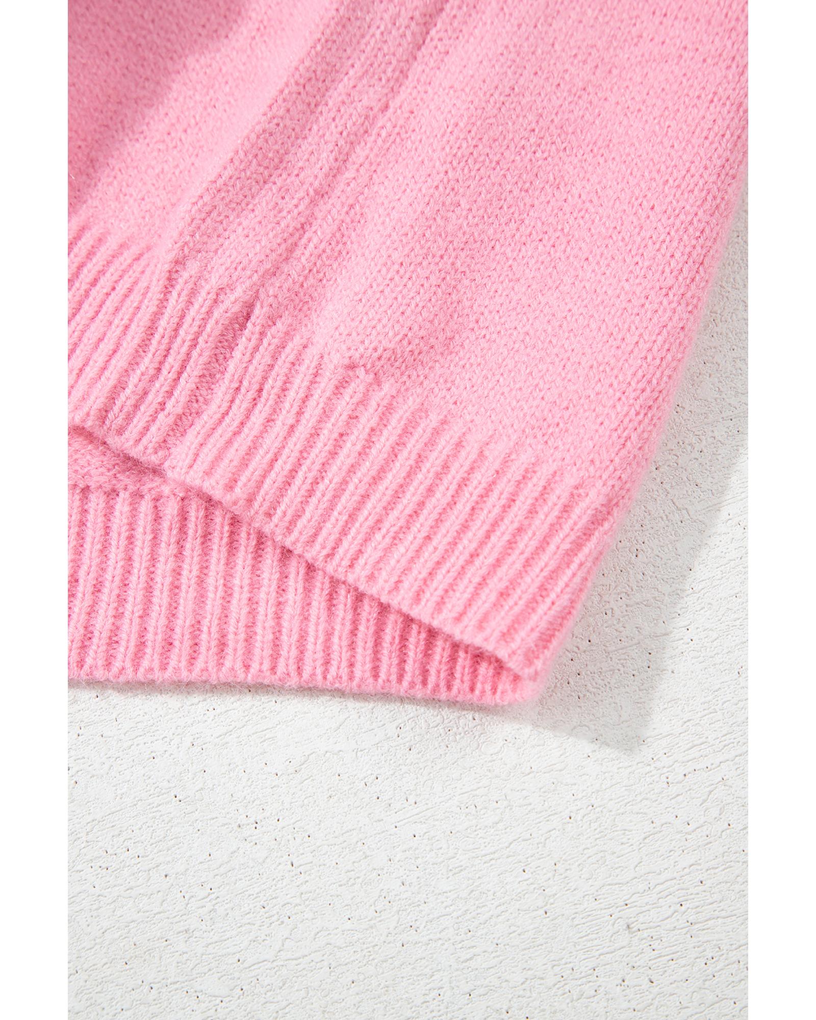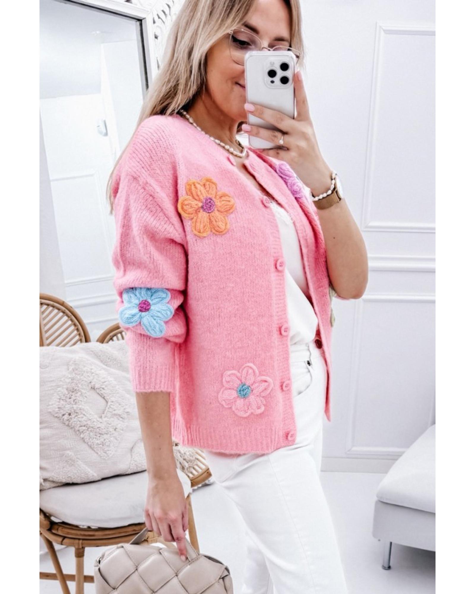 Pink Cute Knitted Floral Pattern Button Up Cardigan – M