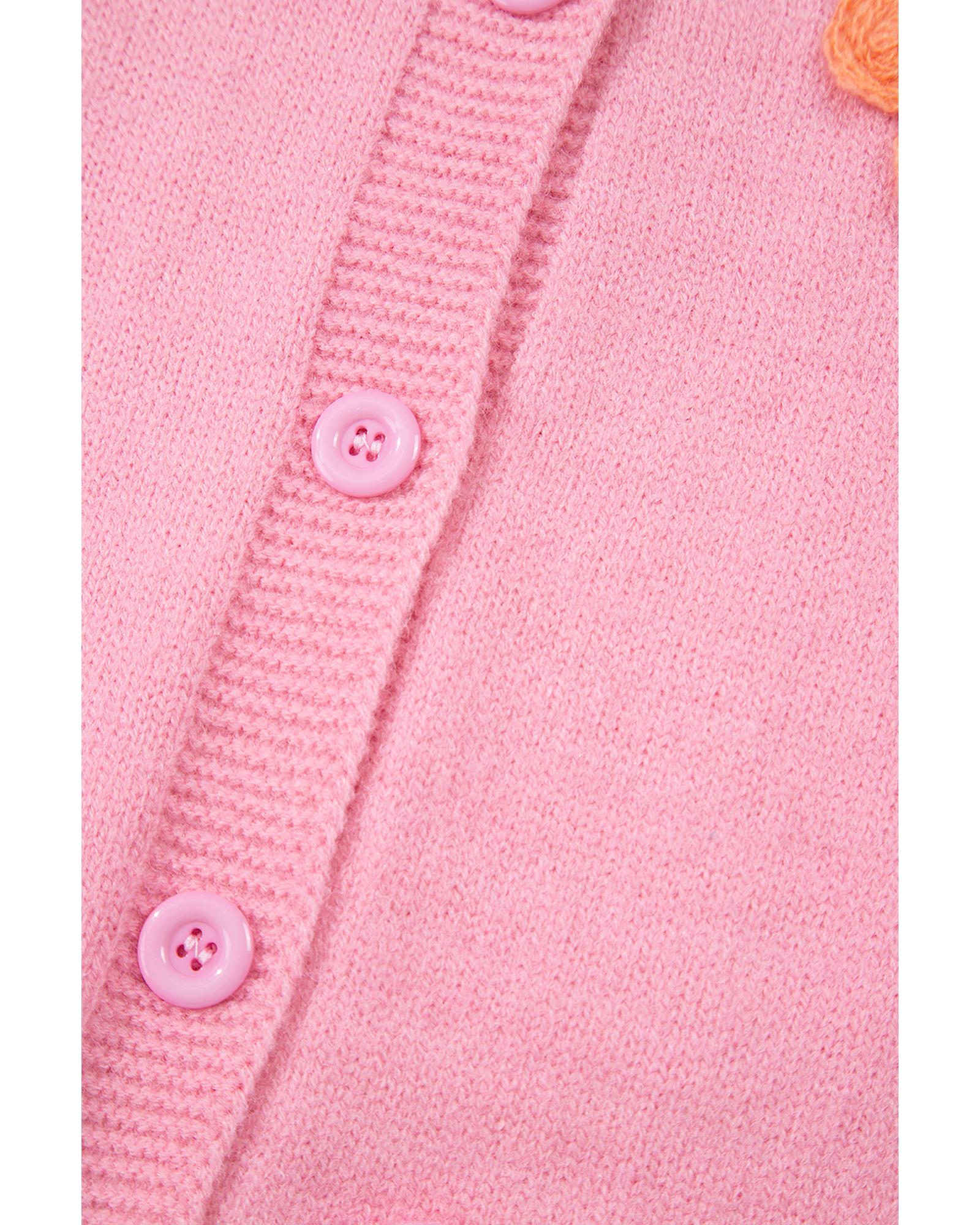 Pink Cute Knitted Floral Pattern Button Up Cardigan – XL