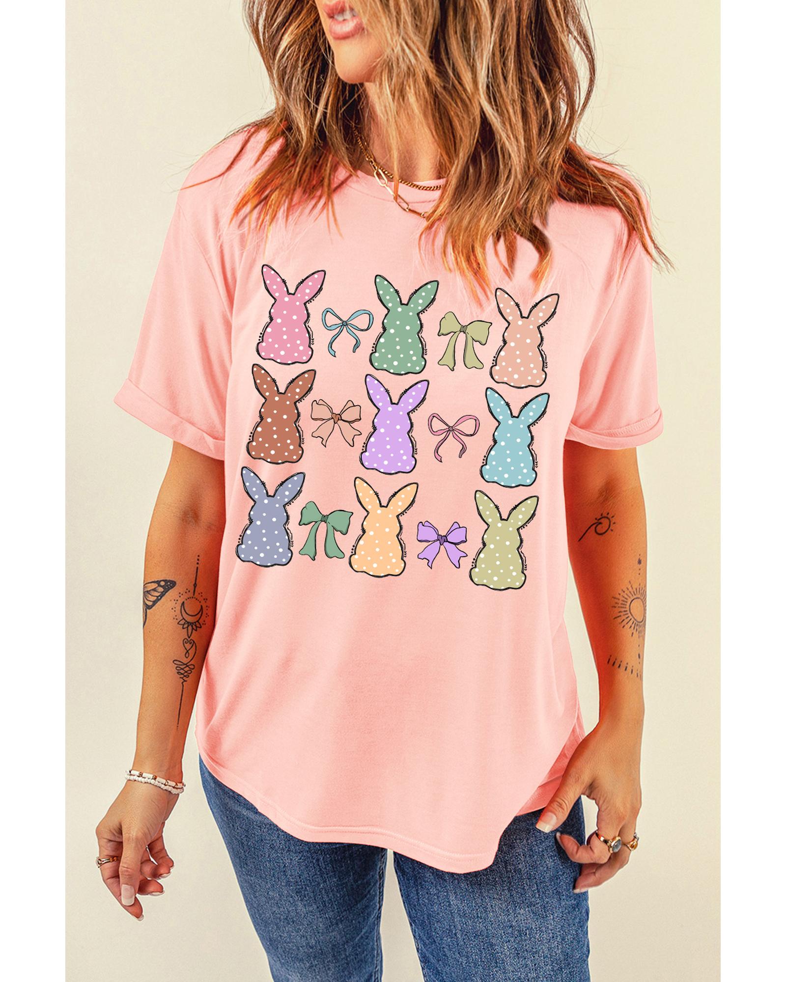 Pink Dotty Bunny Bow Printed Easter Day Fashion T Shirt – S
