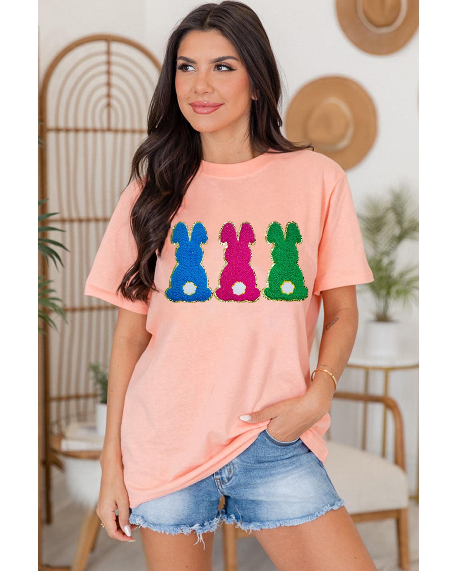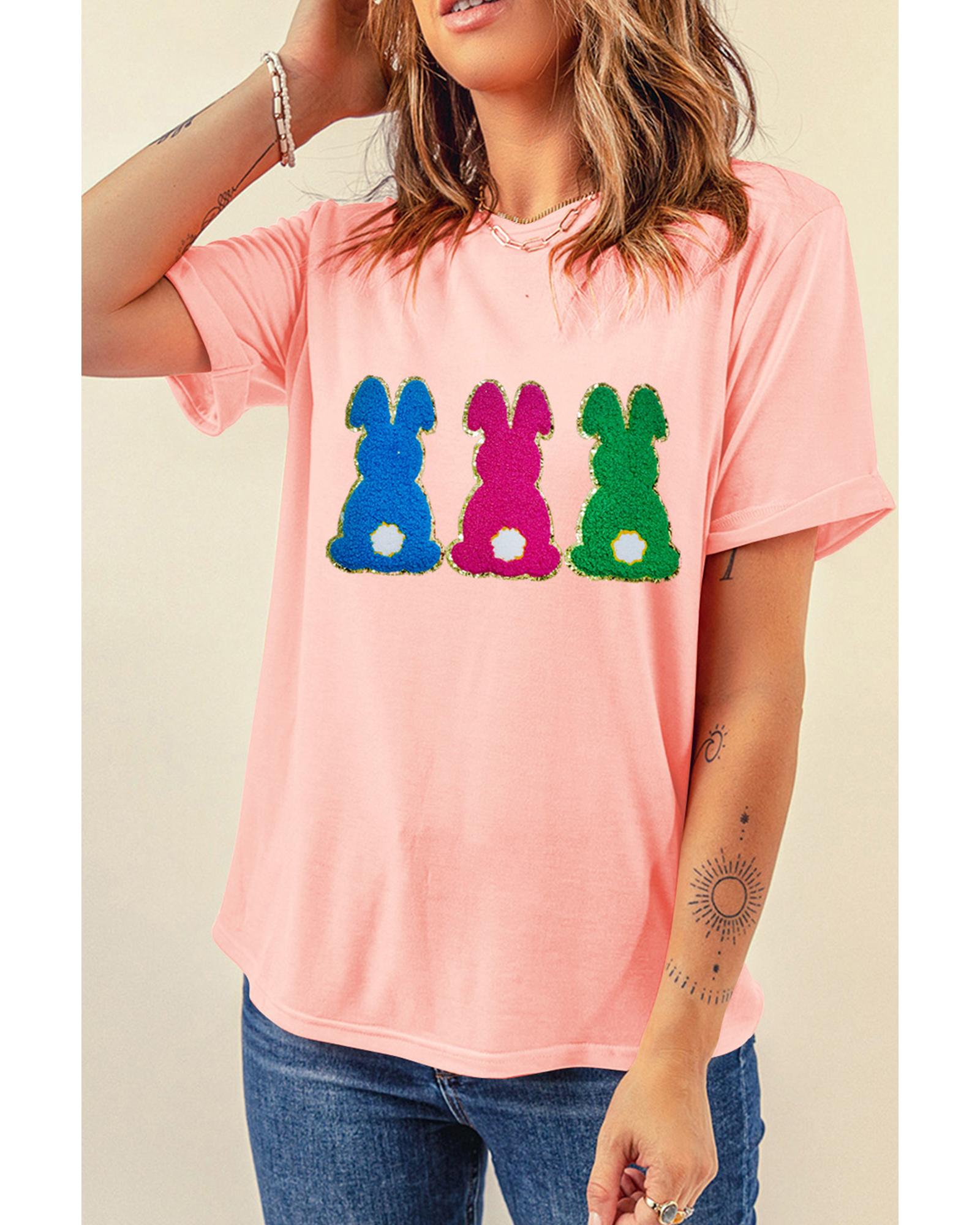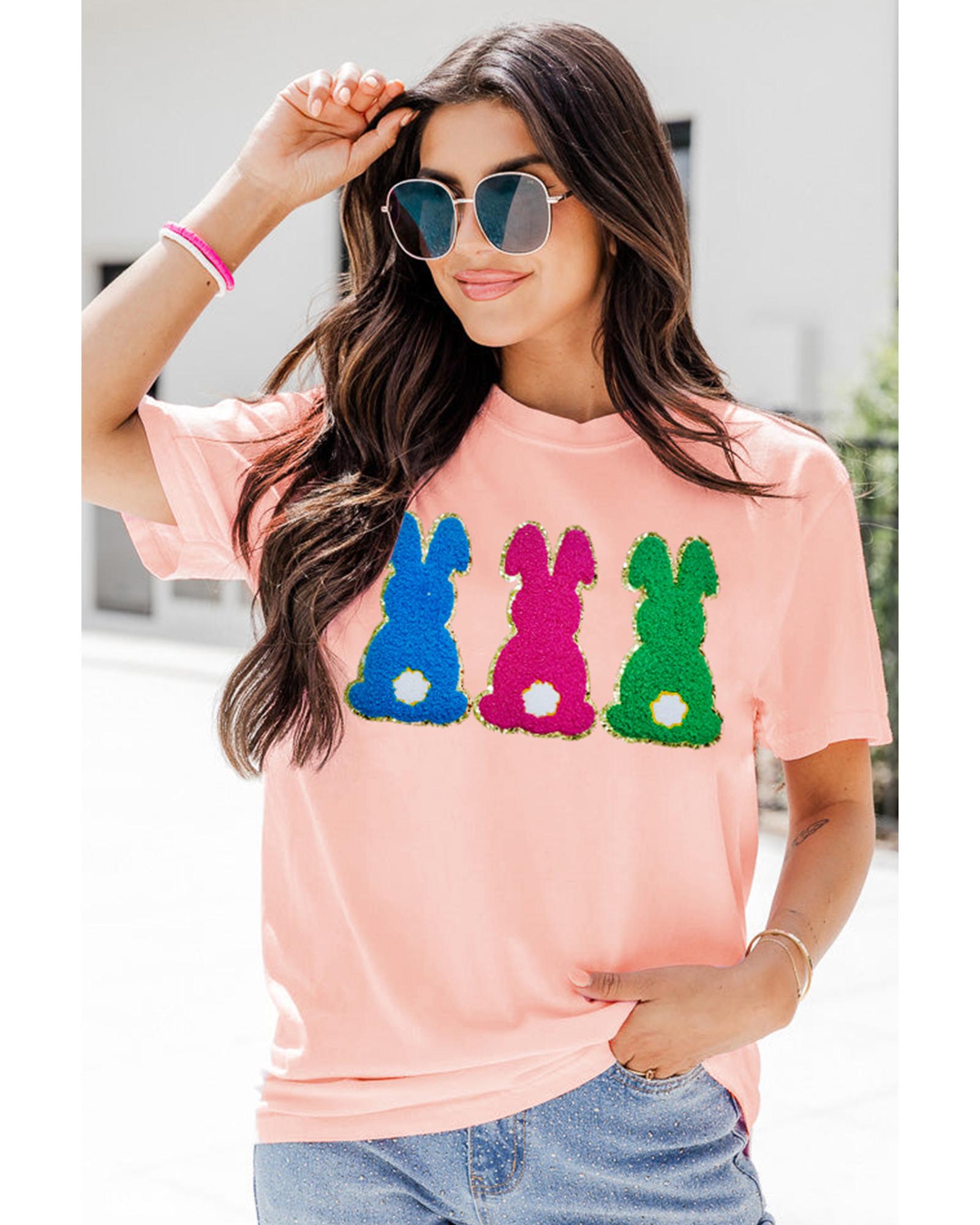 Pink Easter Bunny Chenille Patched Graphic Tee – 2XL
