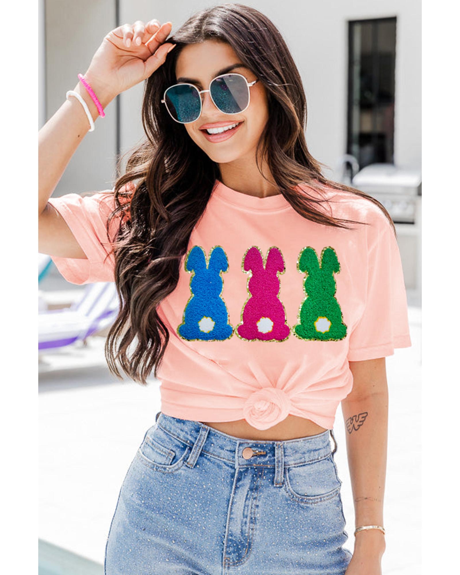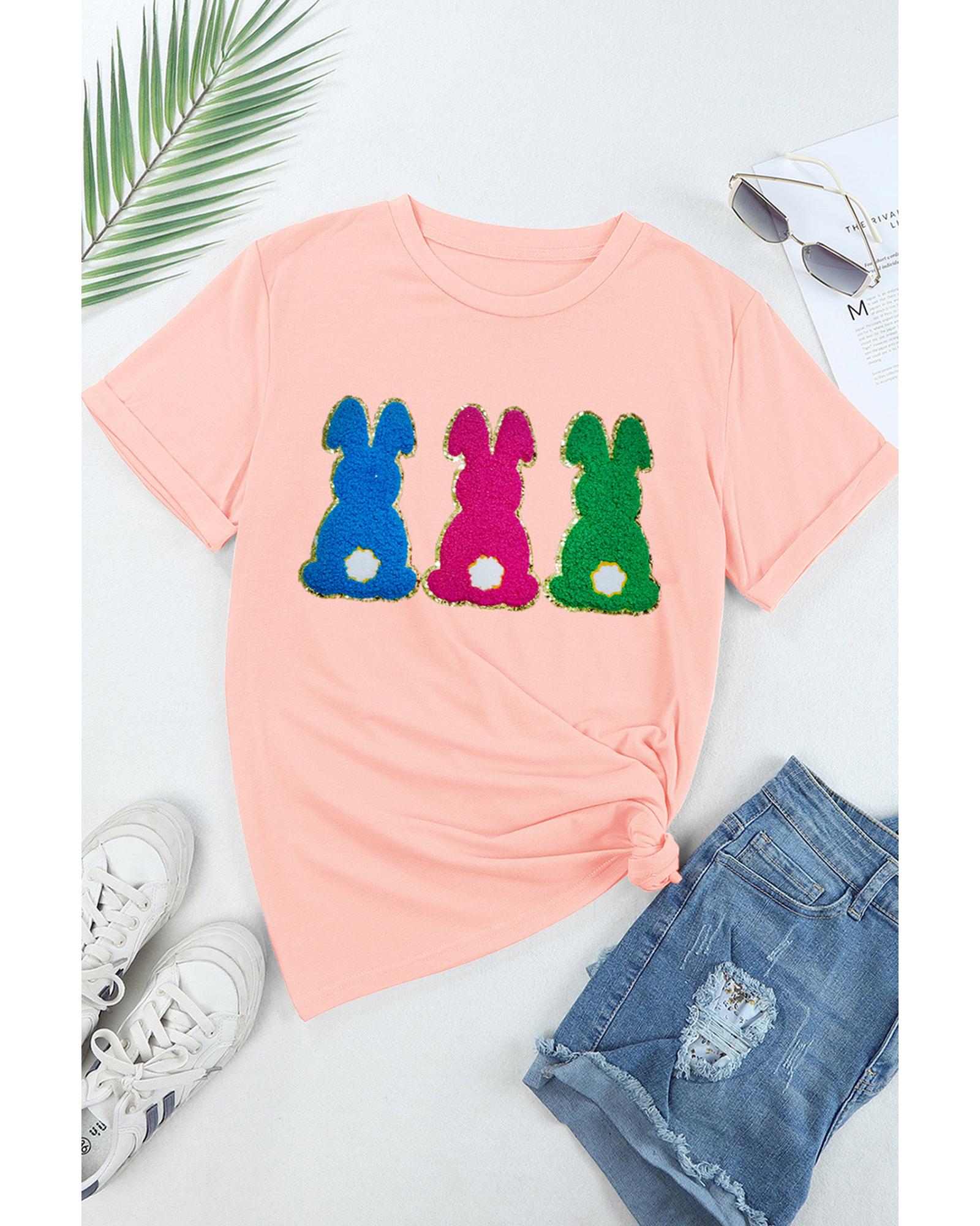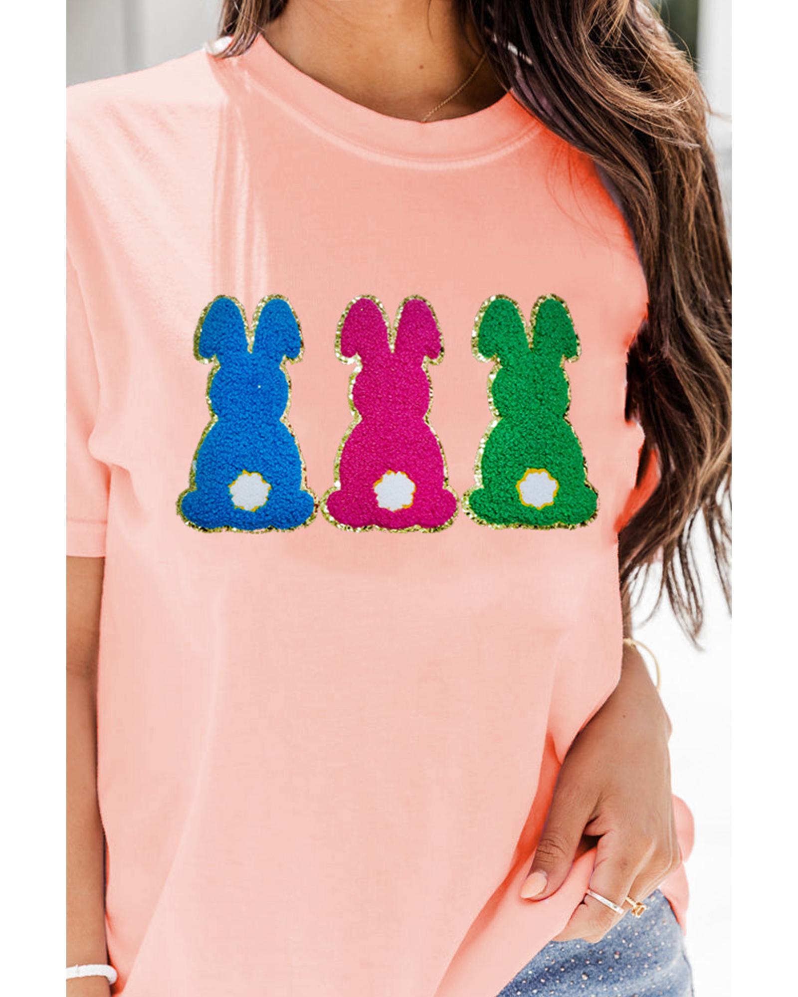 Pink Easter Bunny Chenille Patched Graphic Tee – 2XL