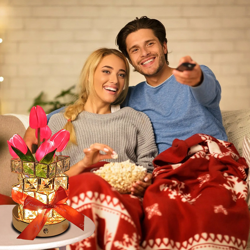 • Stunning Crystal & Tulip Design: Features lifelike LED tulips nestled within a sparkling crystal cube base, adding a touch of luxury and elegance to any room.