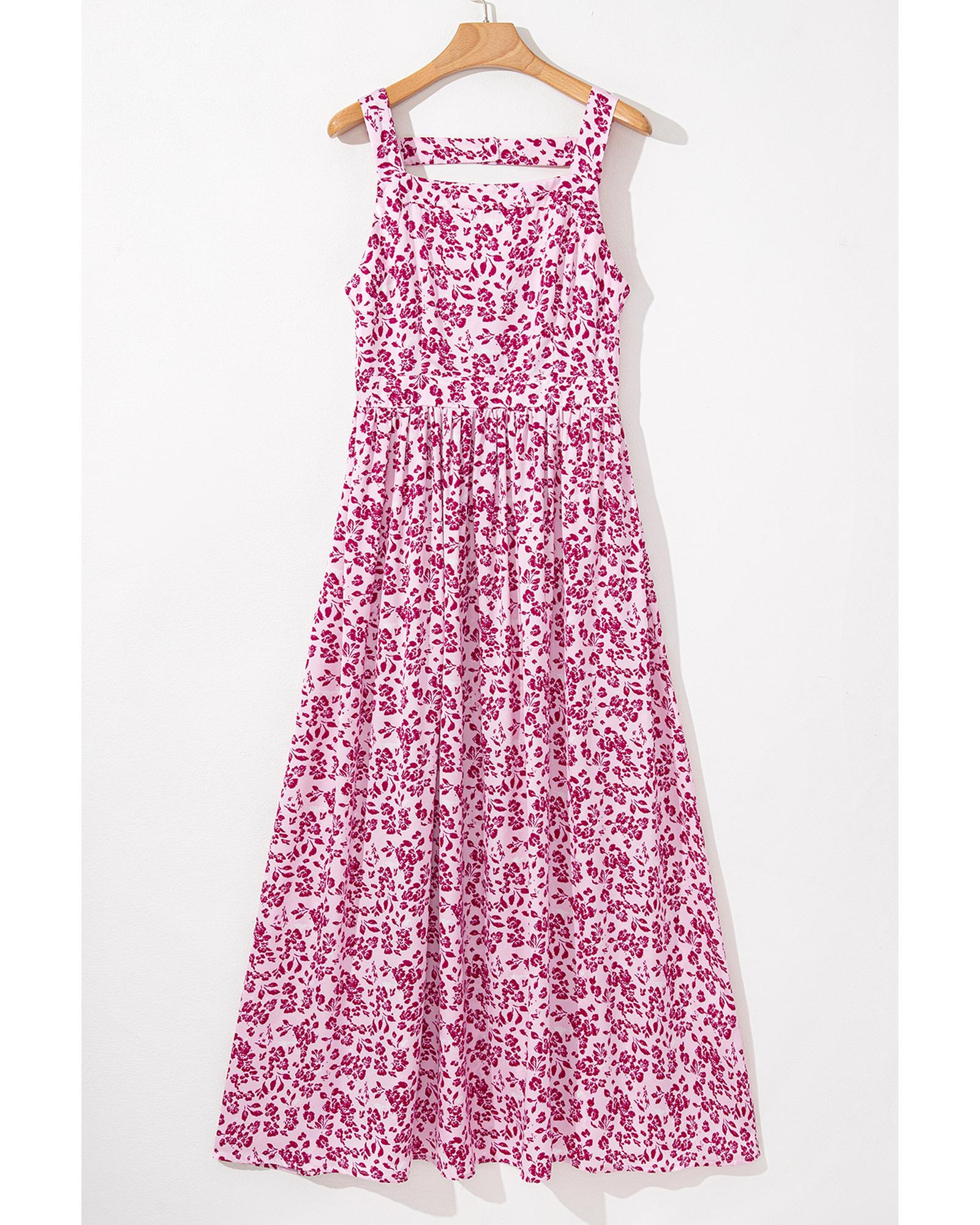 Pink Floral Cutout Back Empire Waist Sleeveless Maxi Dress – M