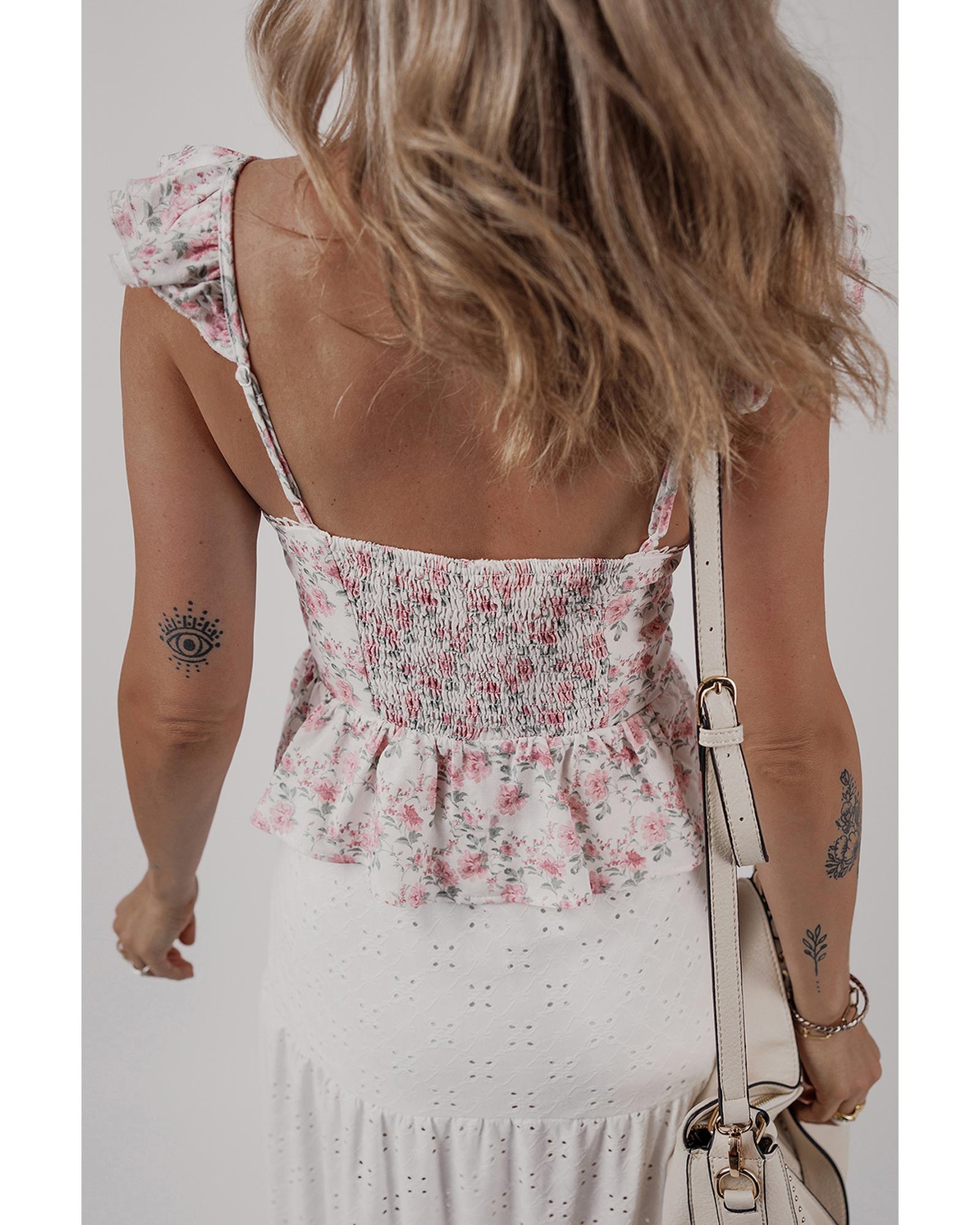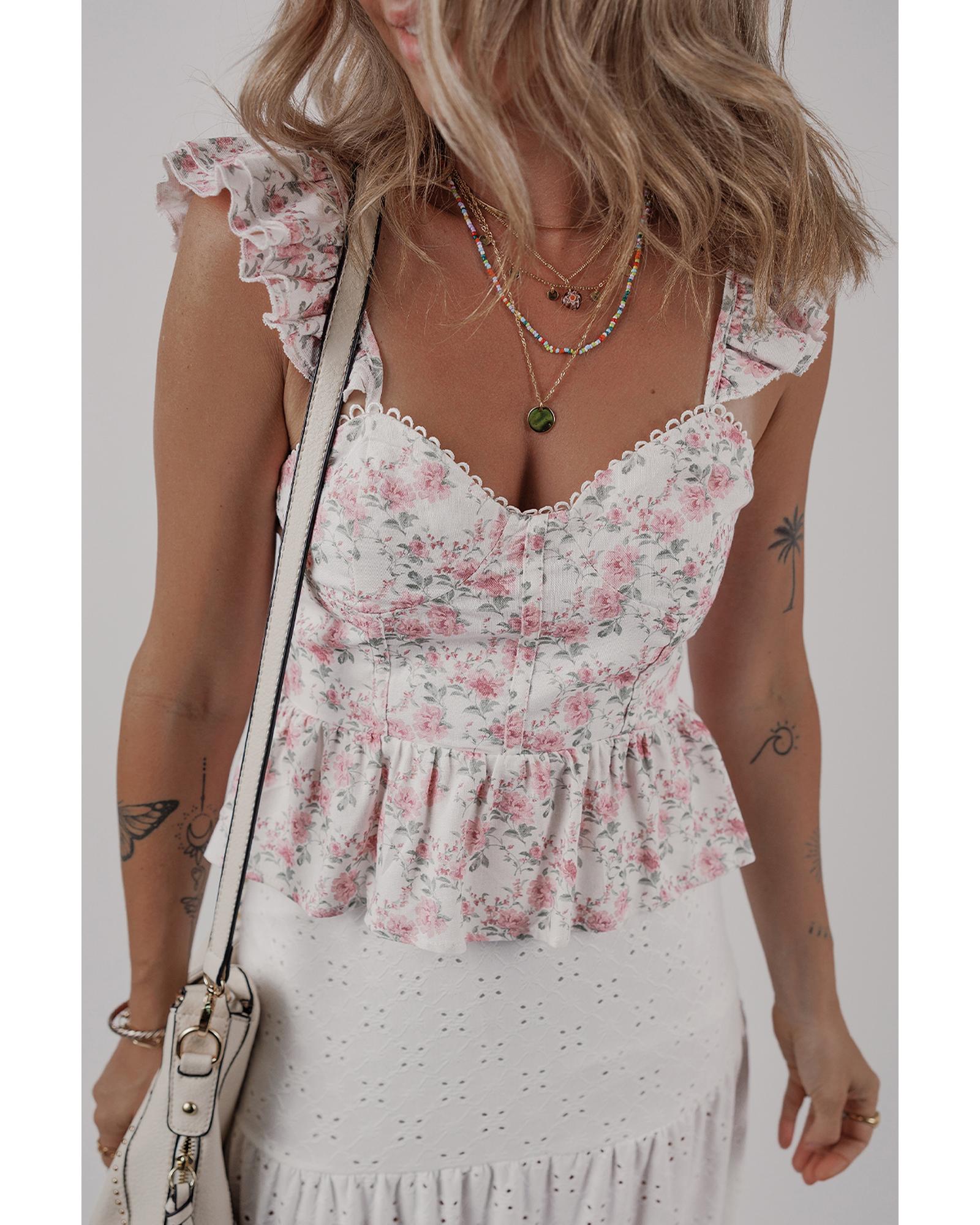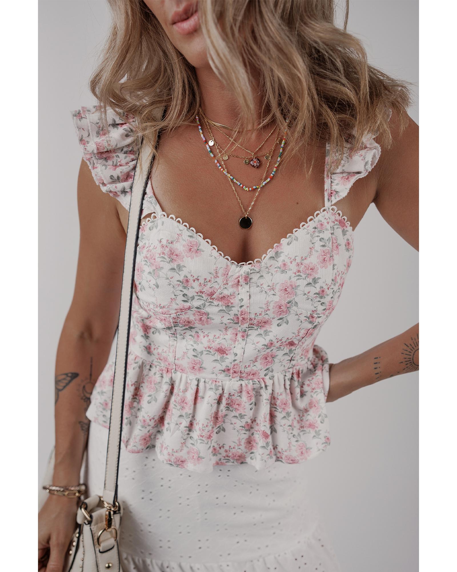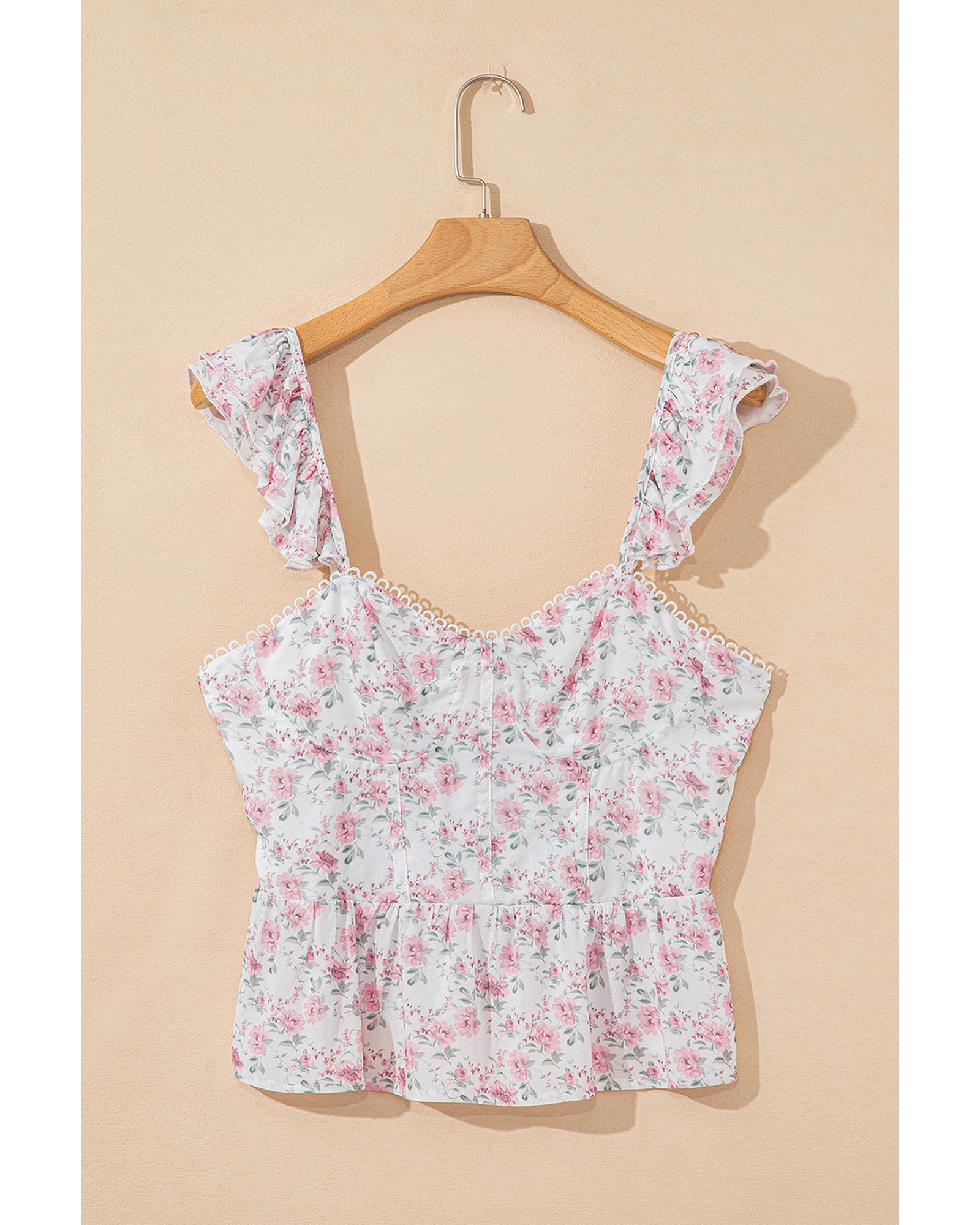 Pink Floral Flutter Peplum Tank Top – XL
