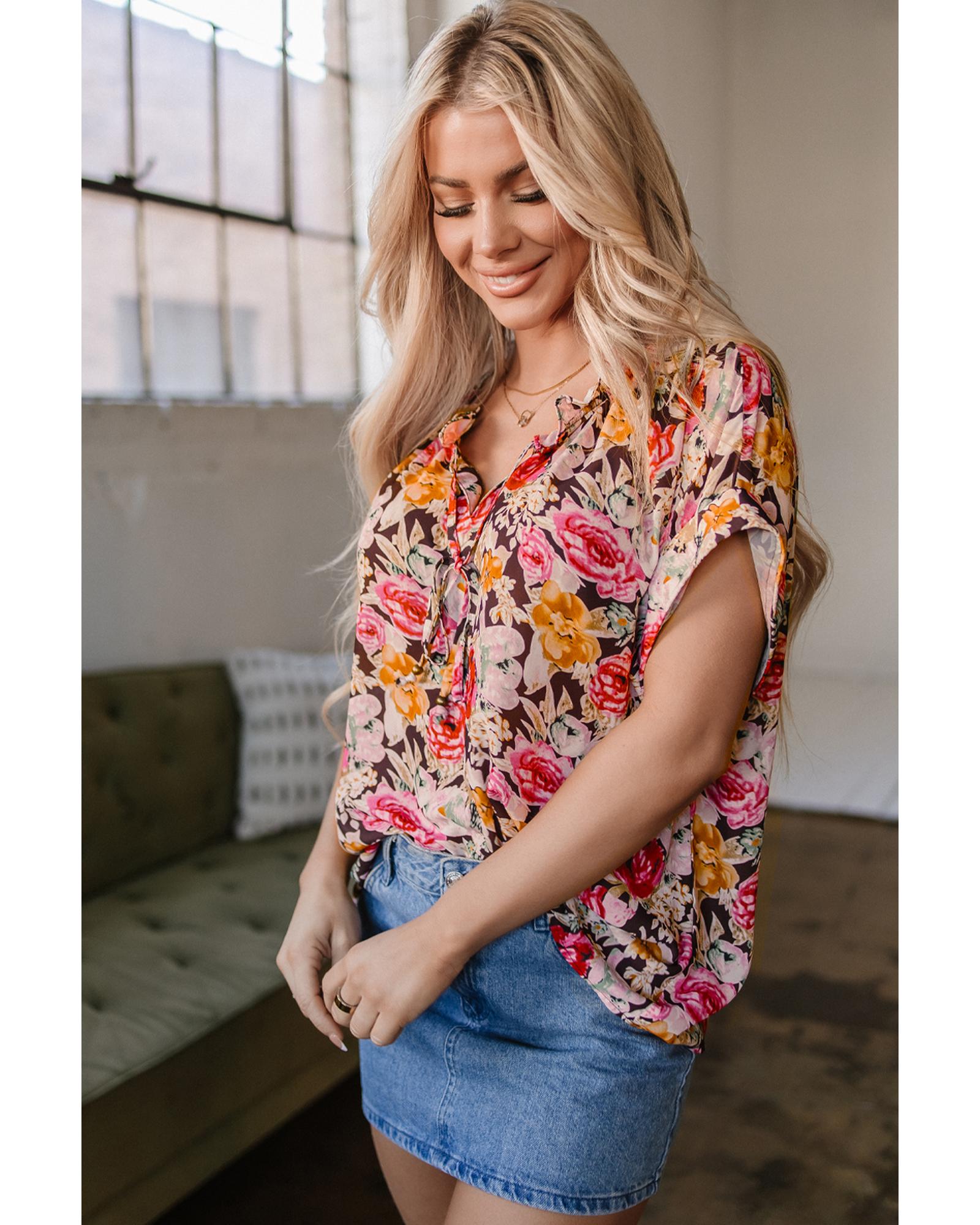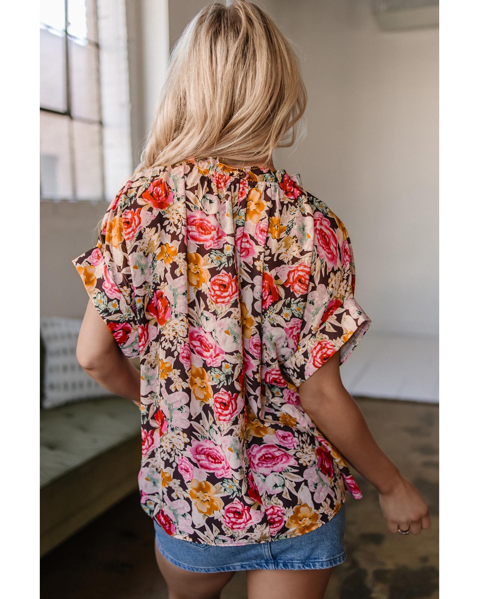 Pink Floral Print Crew Neck Short Sleeve Shift Blouse – S