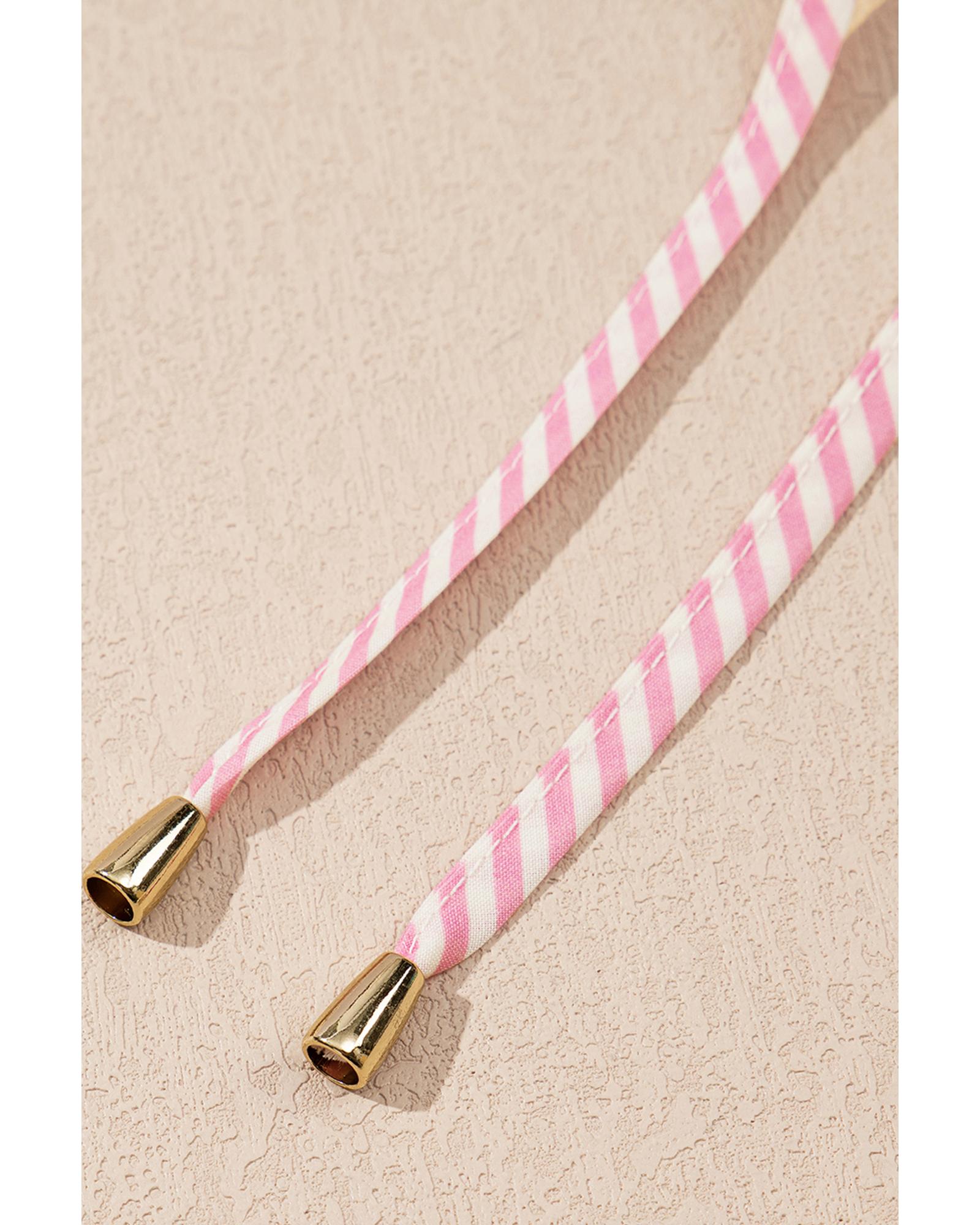 Pink Floral Print Drawstring V Neck Peplum Blouse – M