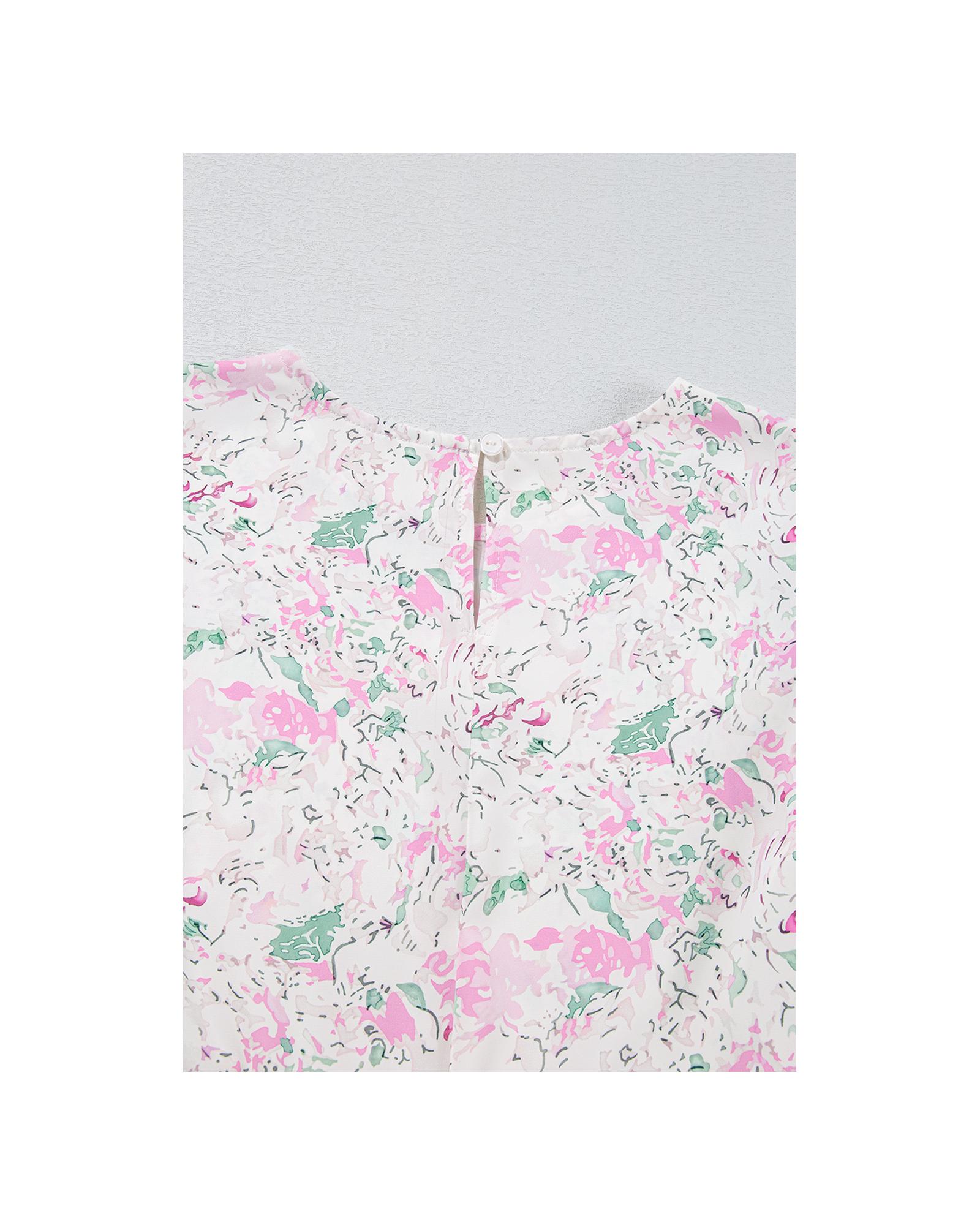Pink Floral Print Shirred Balloon Sleeve Keyhole Back Babydoll Blouse – XL