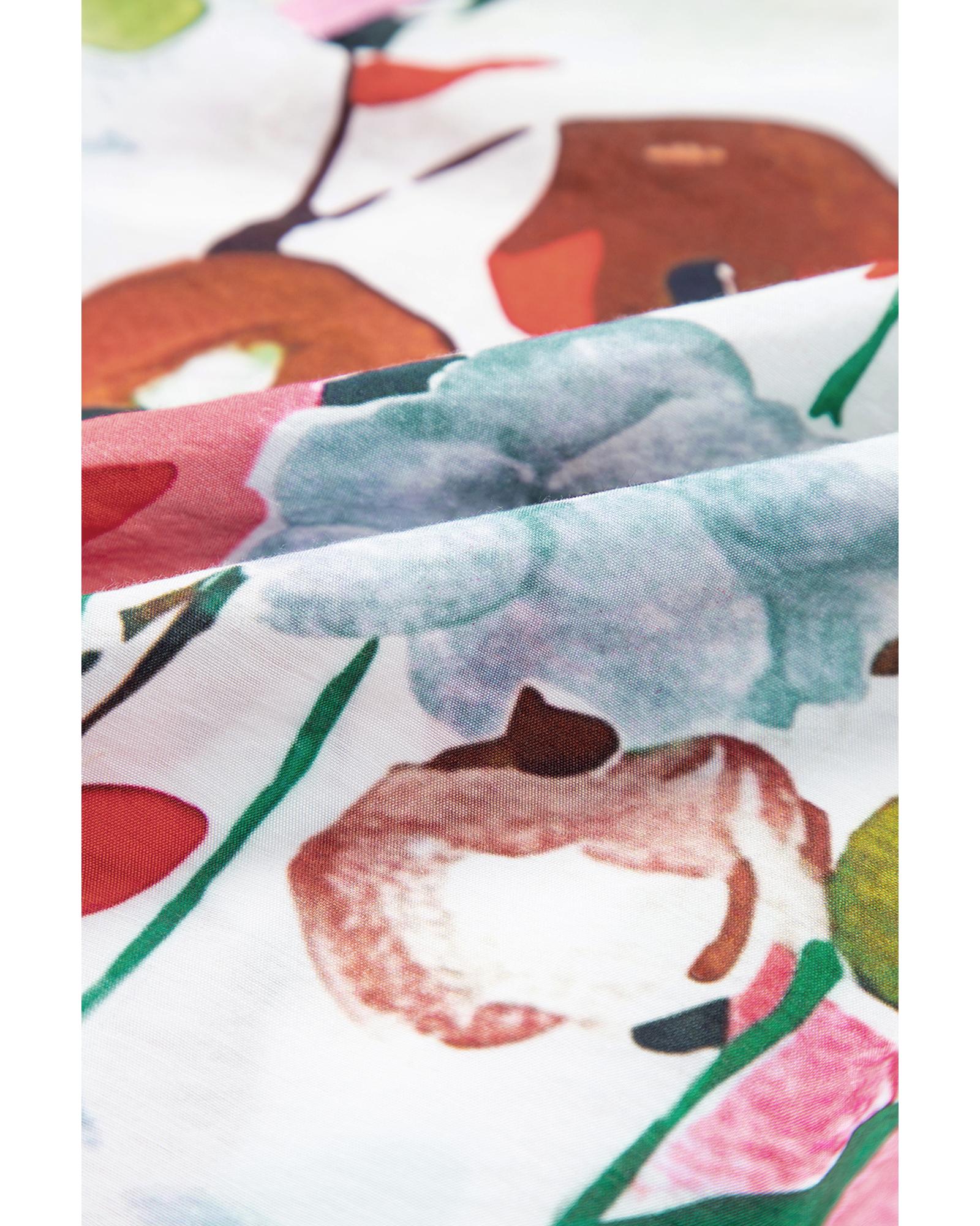Pink Floral Print Slit V Neck Short Sleeve Blouse – L