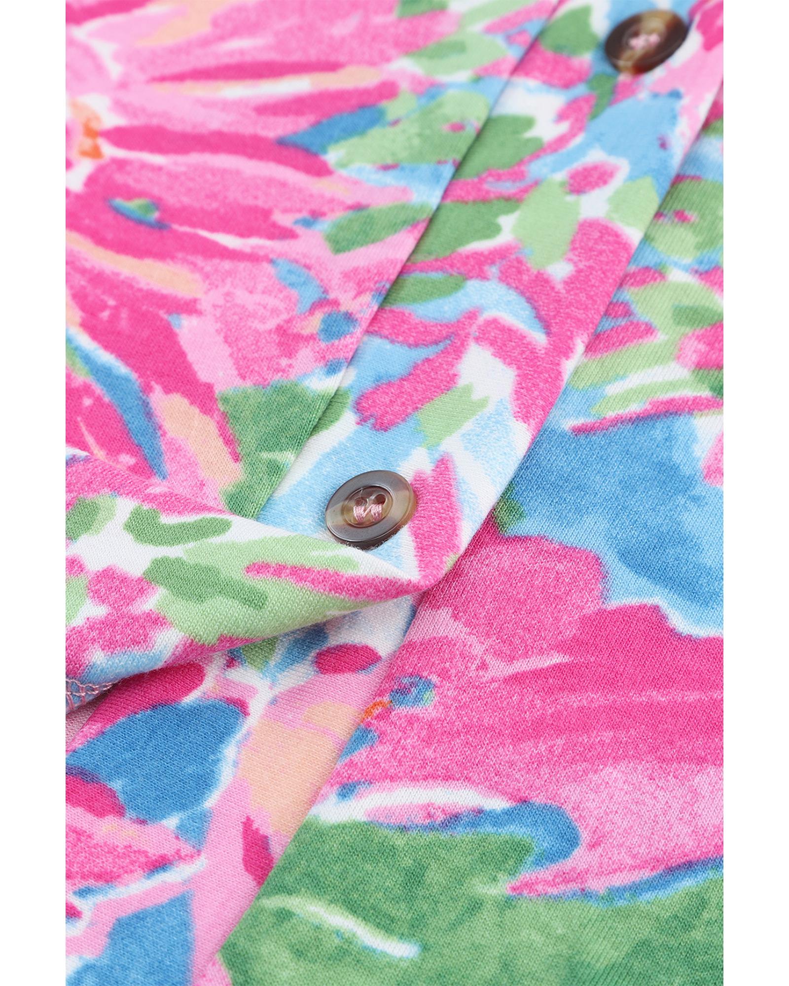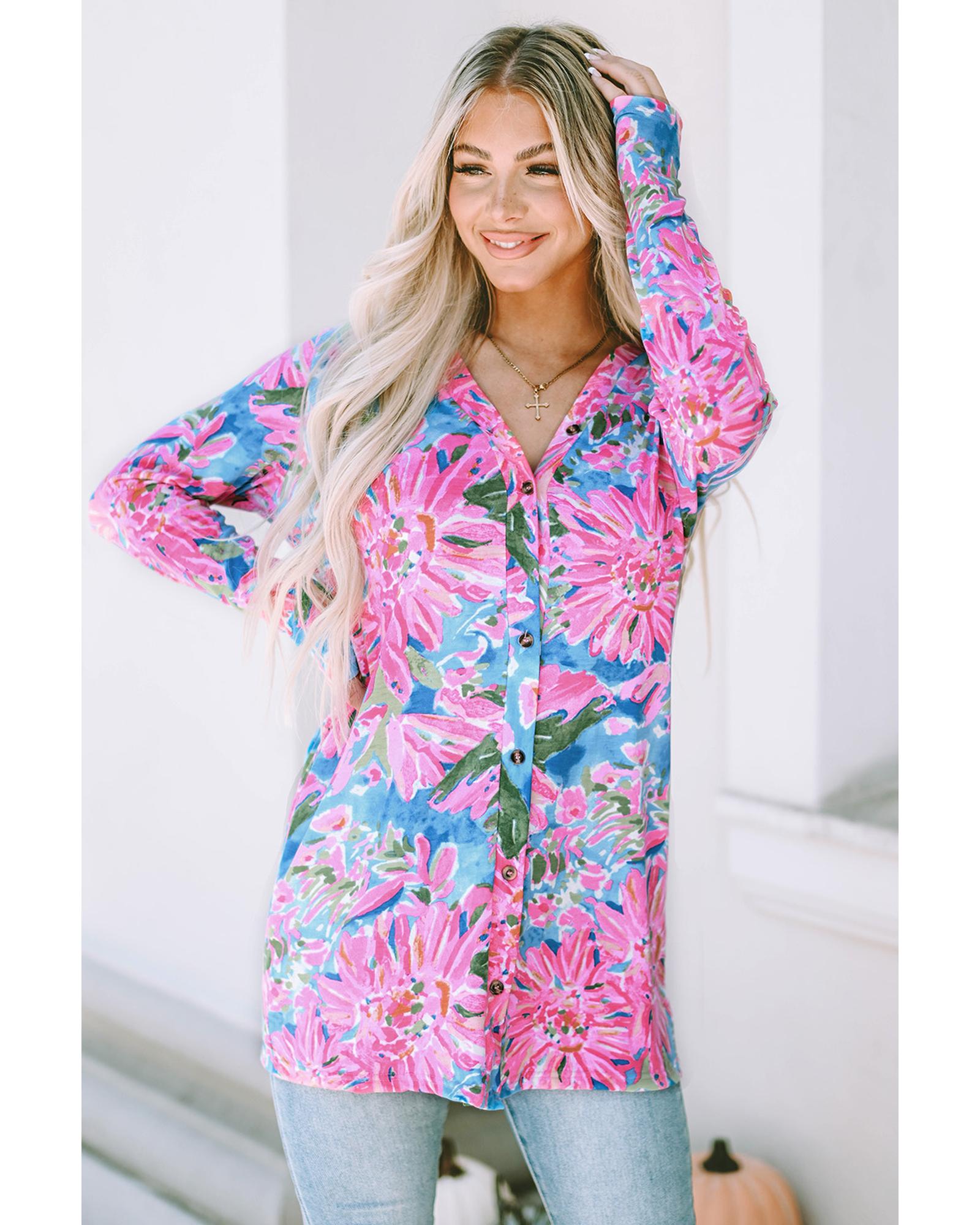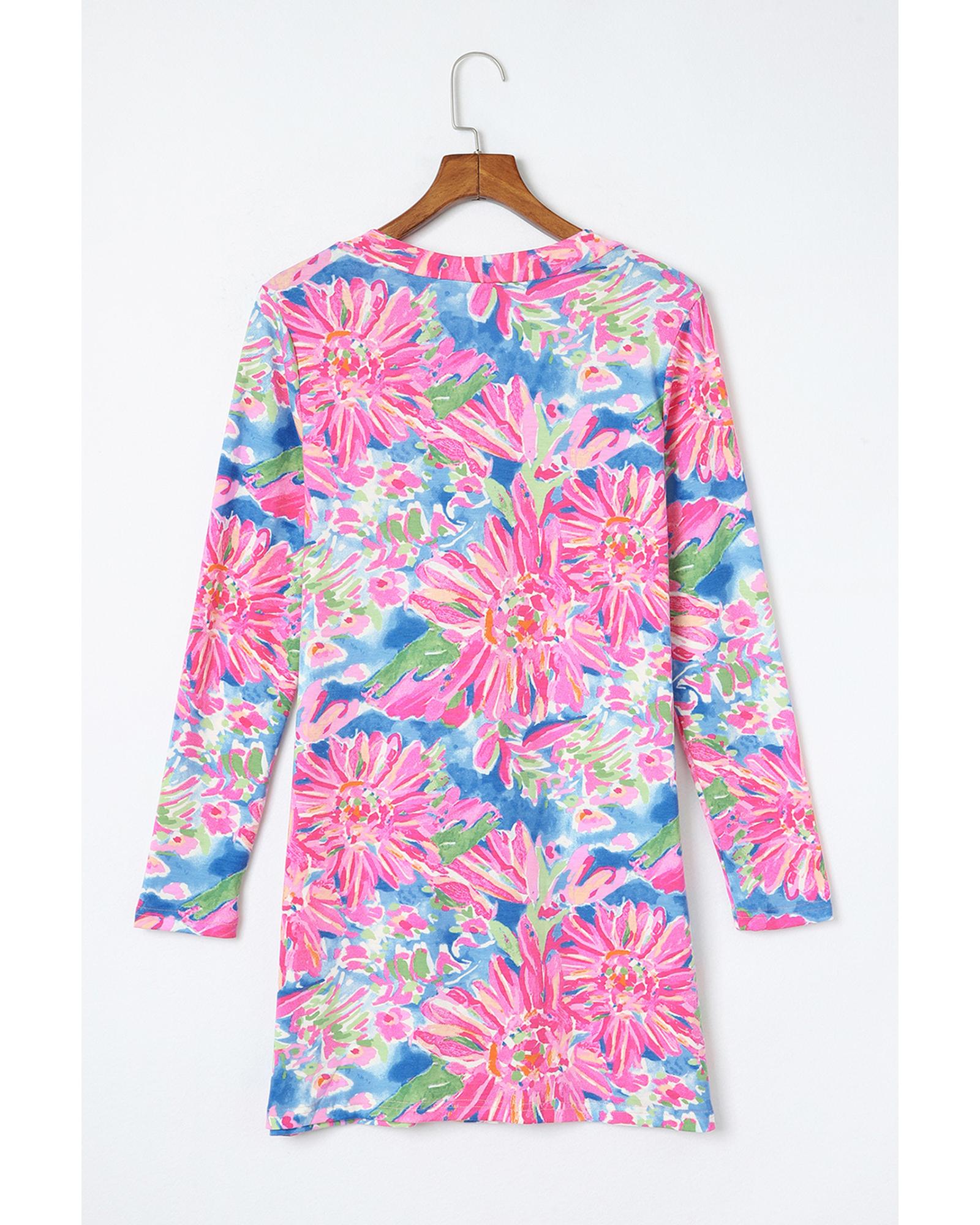 Pink Flower Print Long Sleeve Button Up Cardigan – M