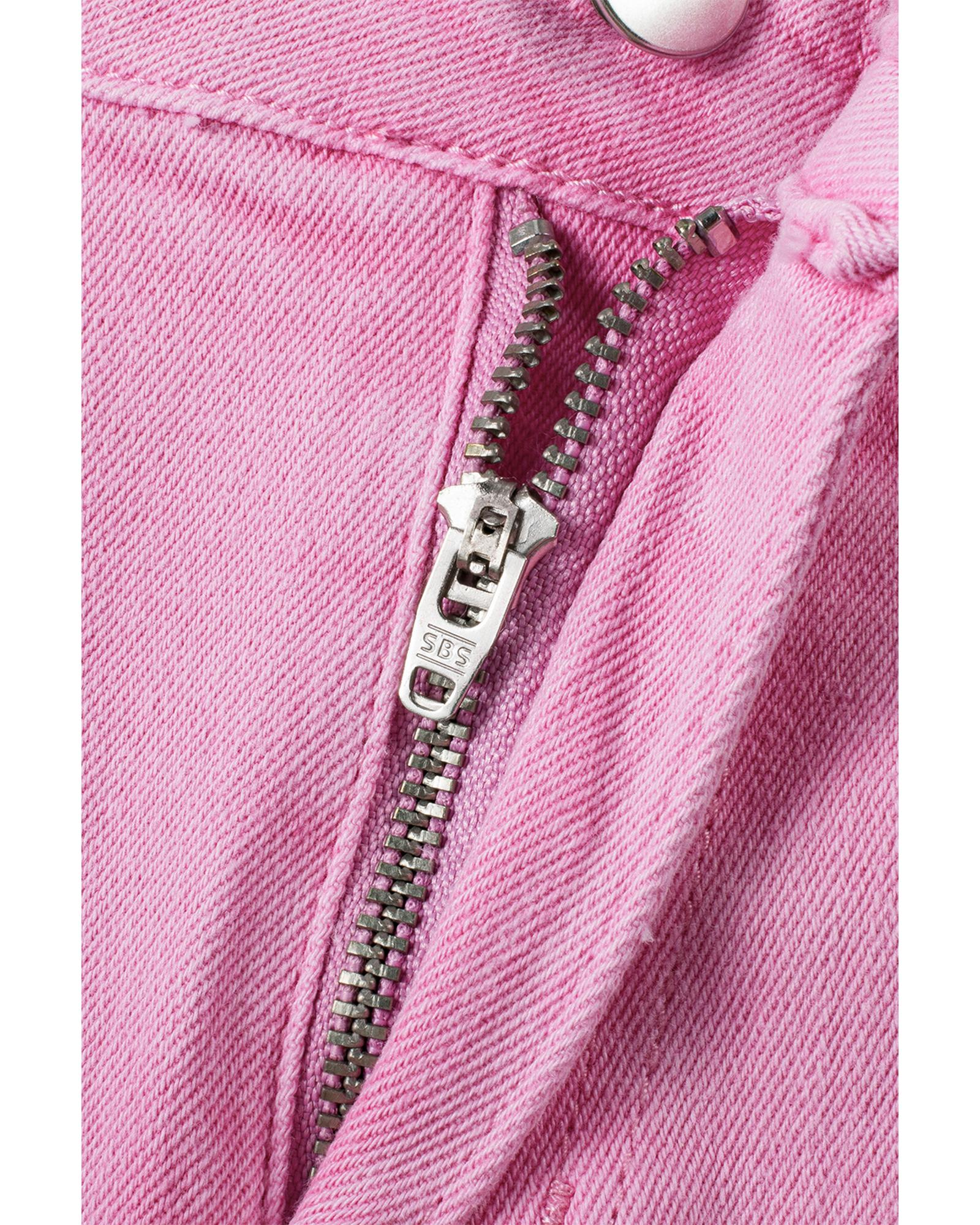 - Pink Frayed Edge Mid Rise Denim Shorts