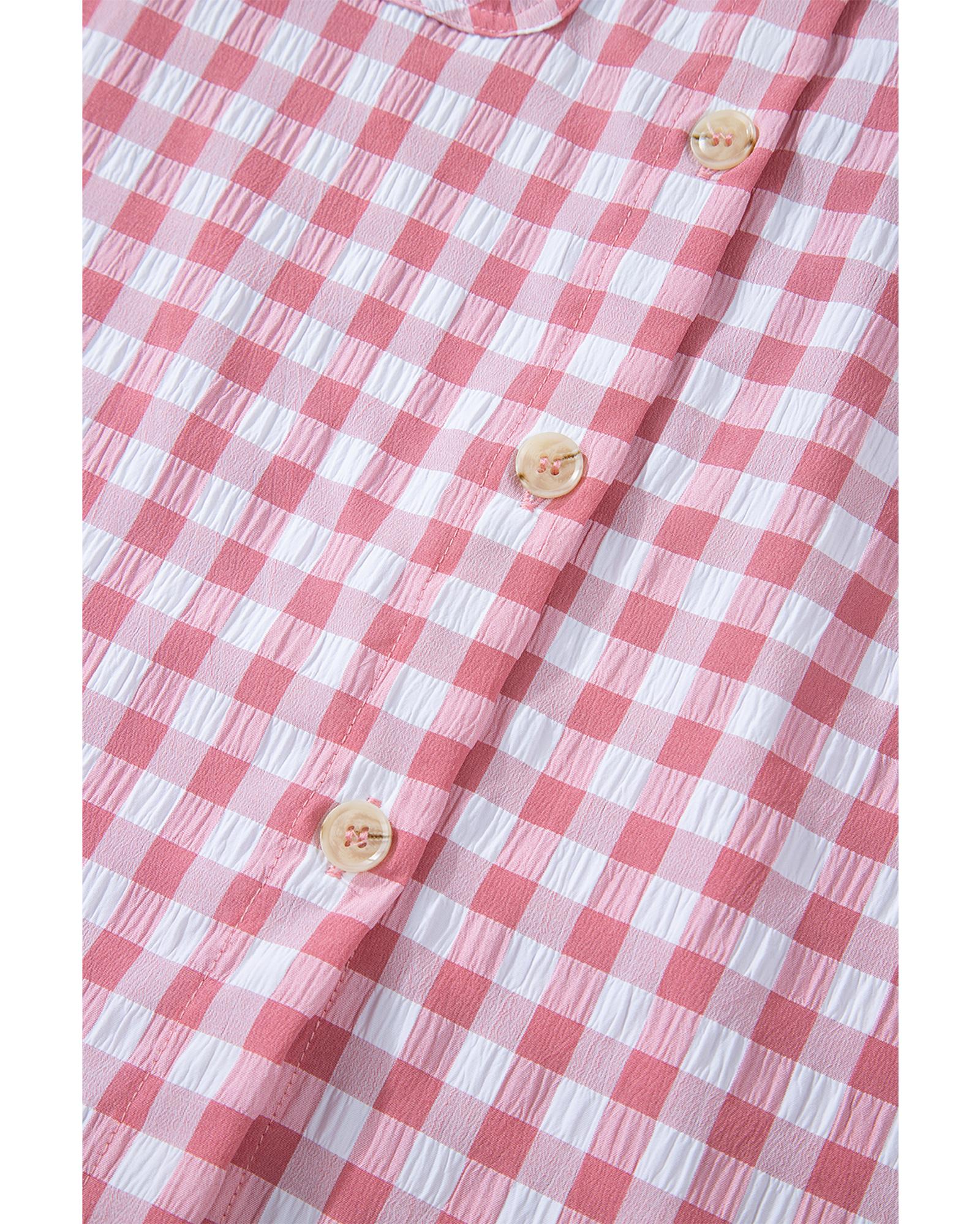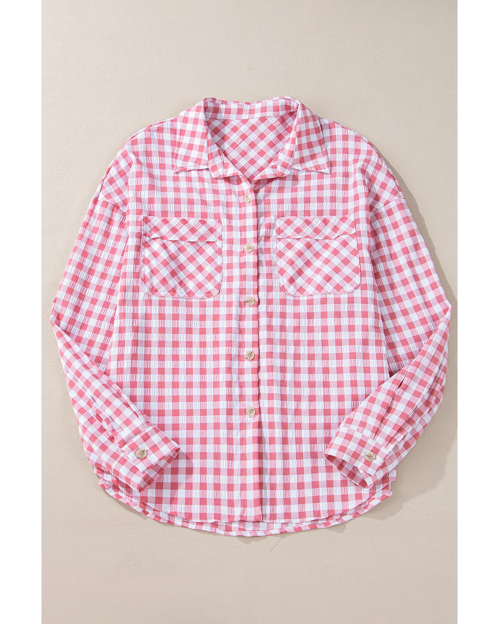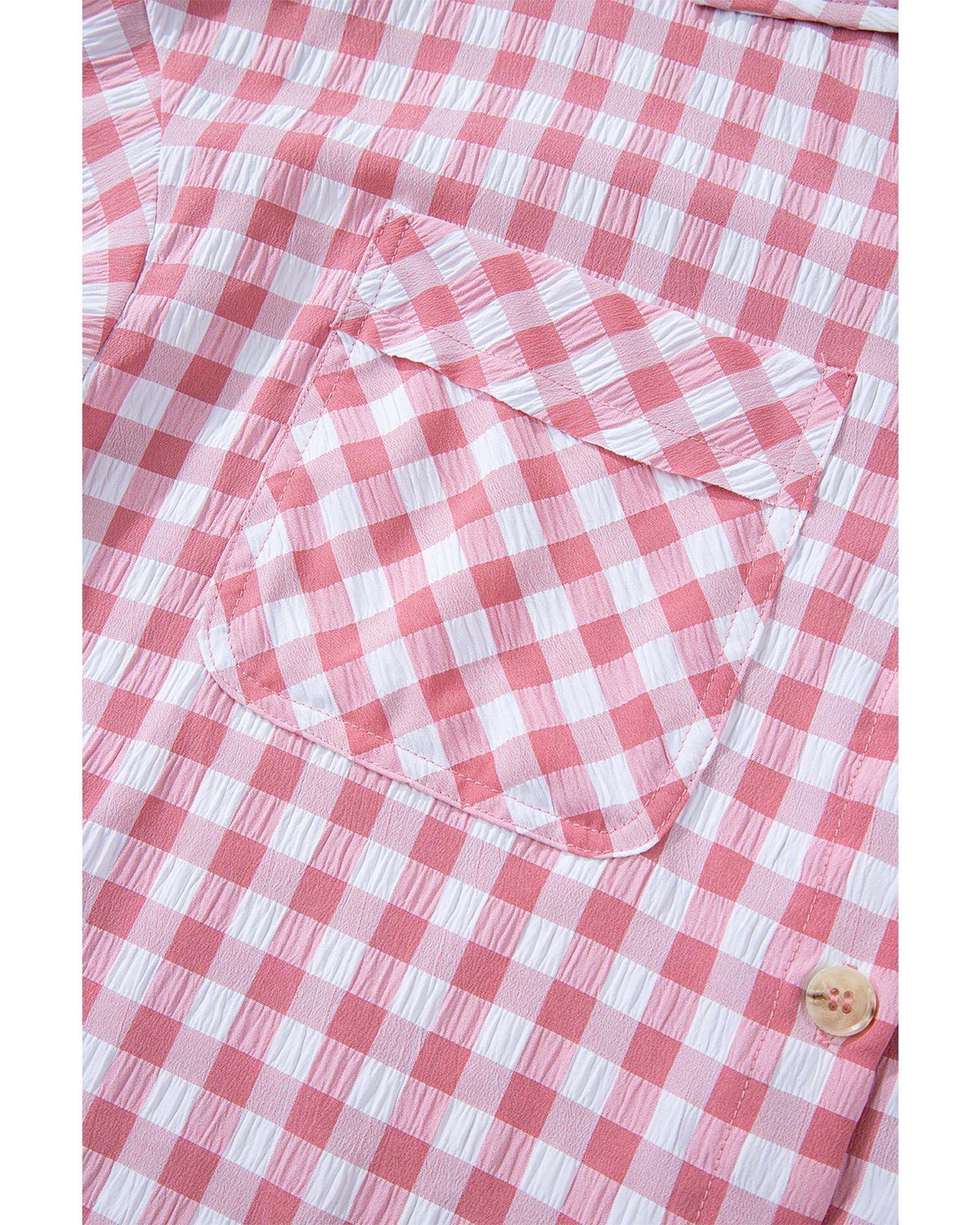Pink Gingham Print Chest Pockets Buttoned Collared Shirt – L