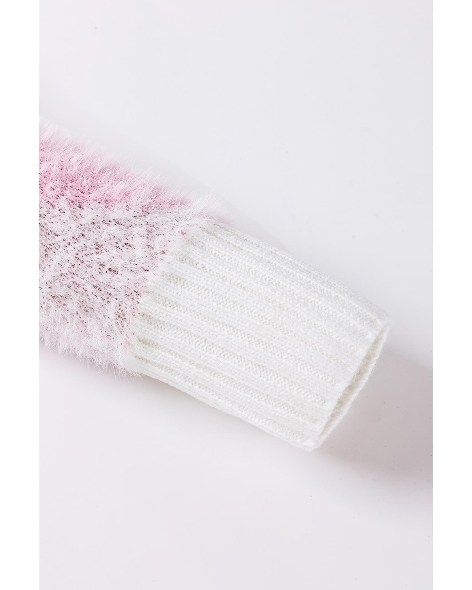 Pink Heart Leopard Print Pearled Ribbed Trim Fuzzy Sweater – L