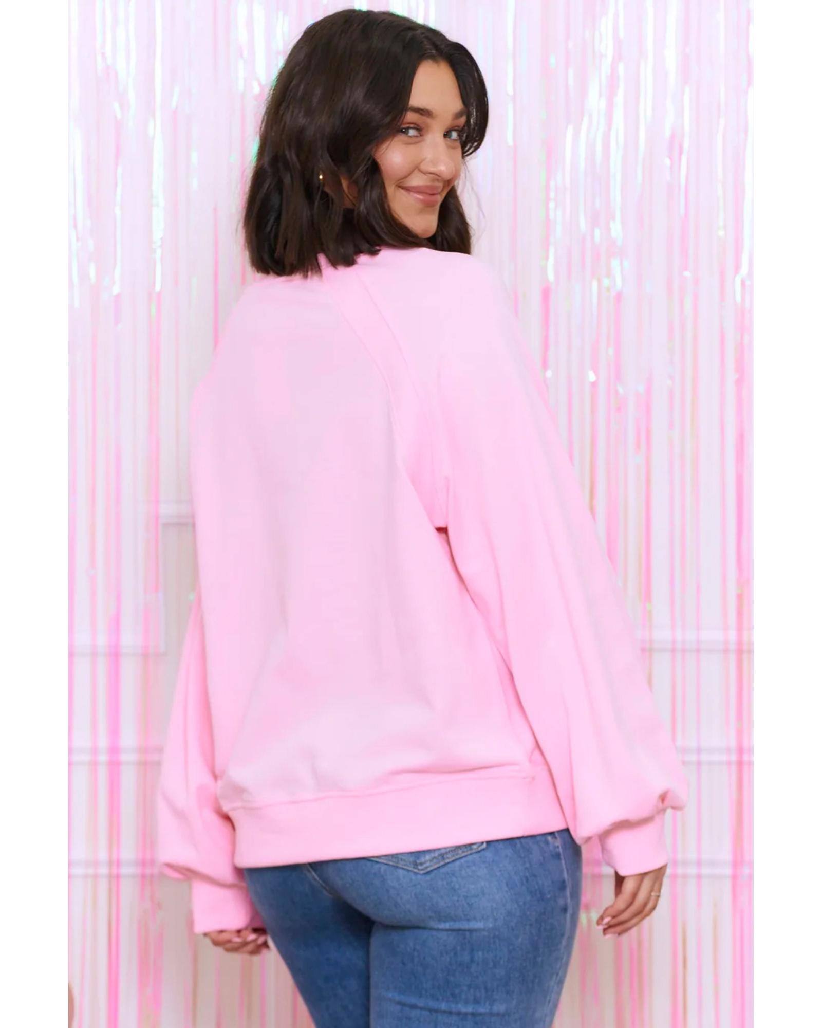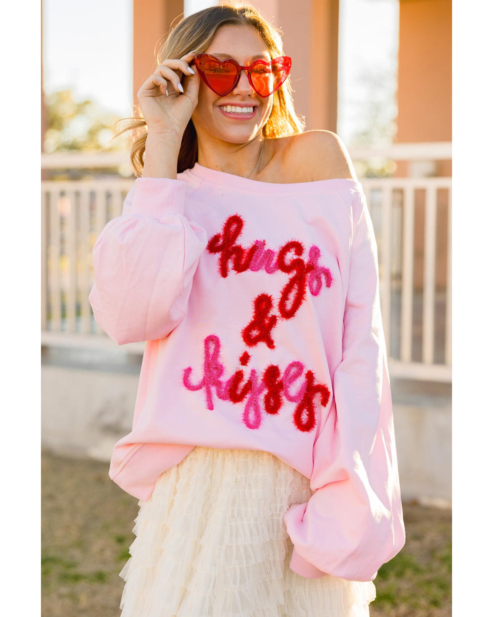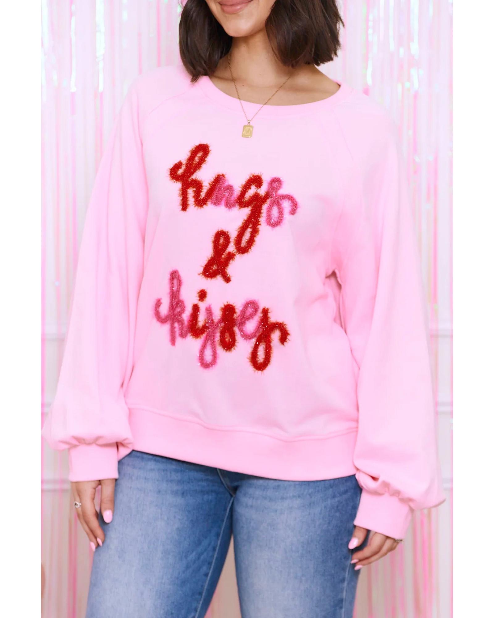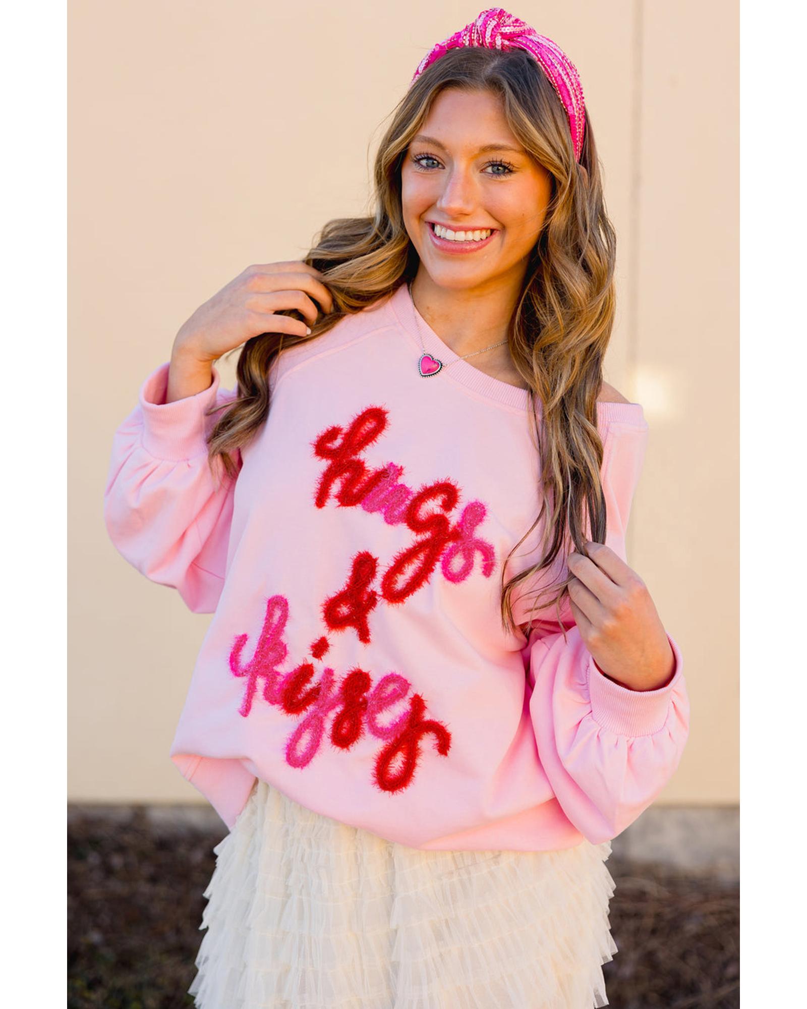 Pink Hugs and Kisses Pop Up Embroidered Raglan Sleeve Sweatshirt – M