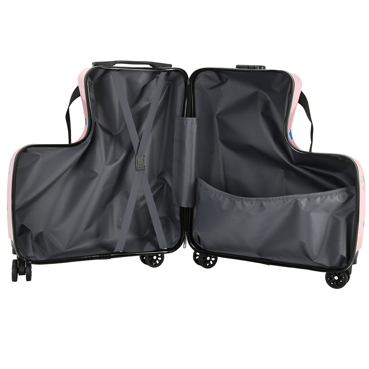 Pink Kids Ride-On Luggage – 20-Inch Cartoon Travel Suitcase with Footrest, Durable Rolling Carry-On for Children