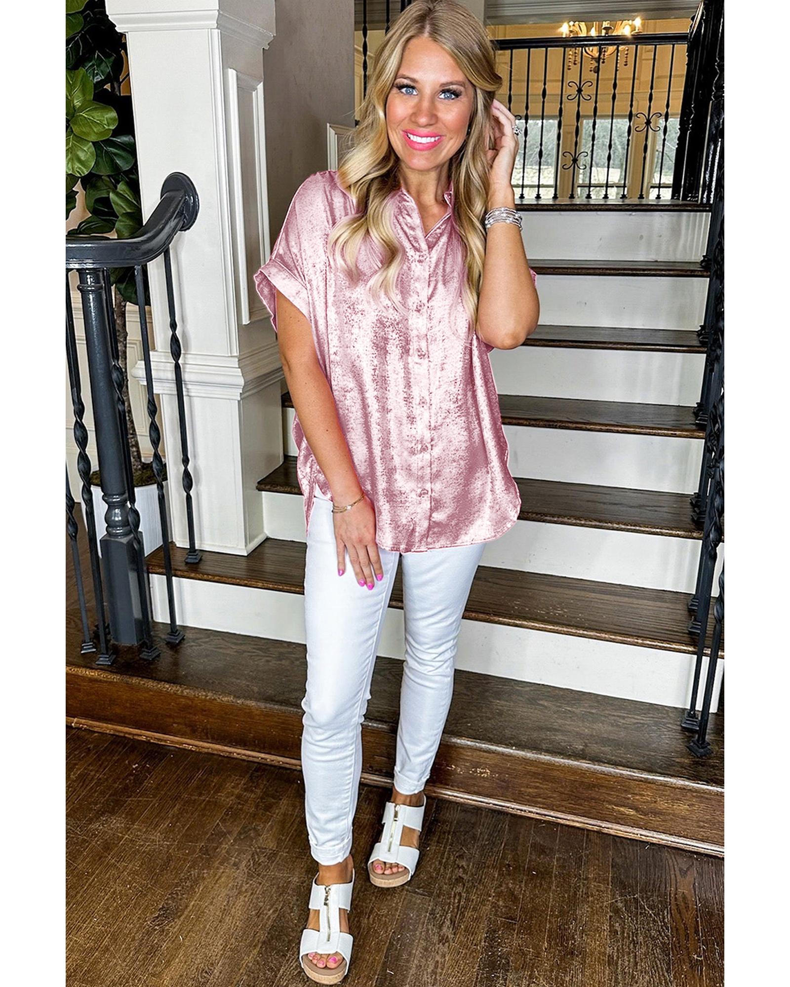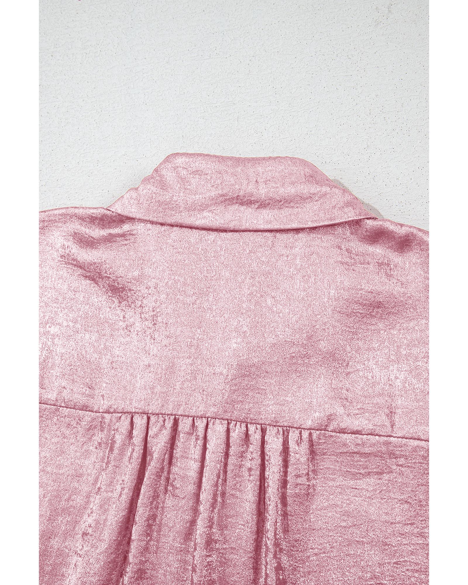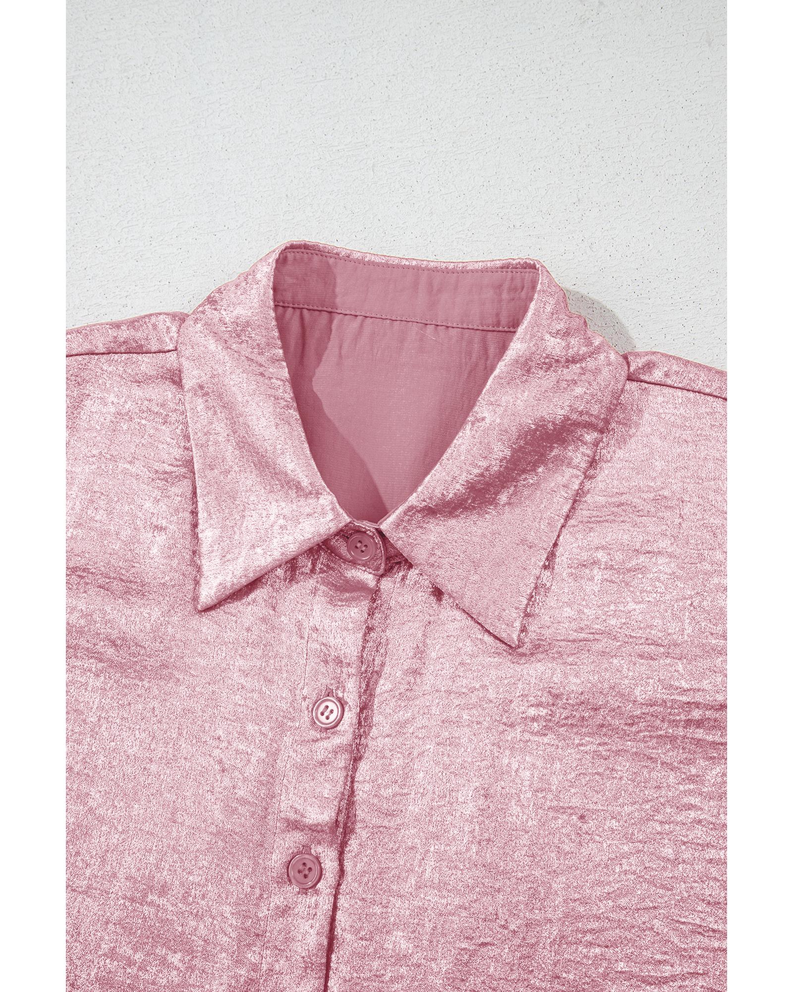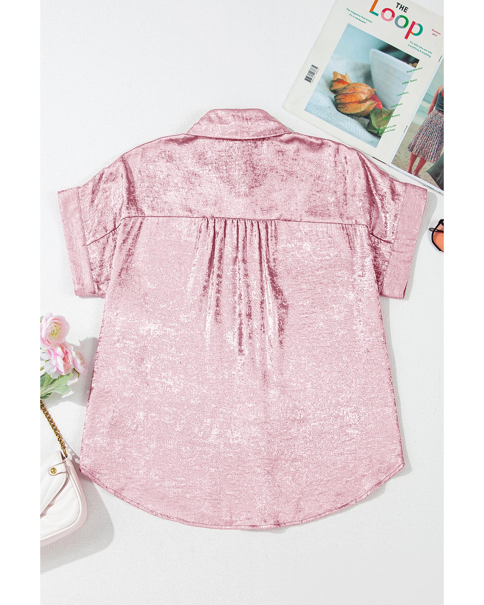 Pink Metallic Sheen Short Sleeve Buttoned Front Casual Shirt – M