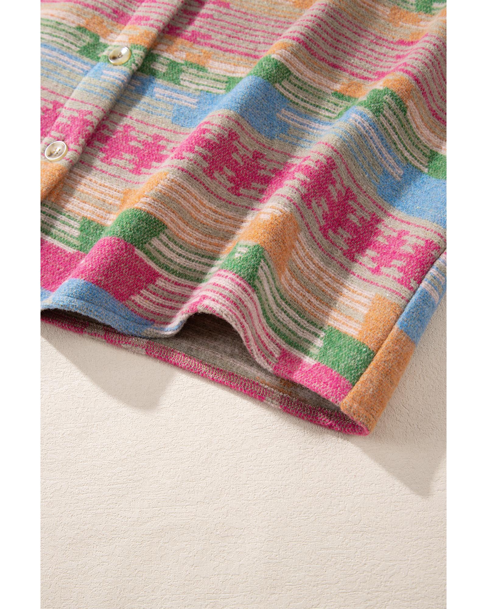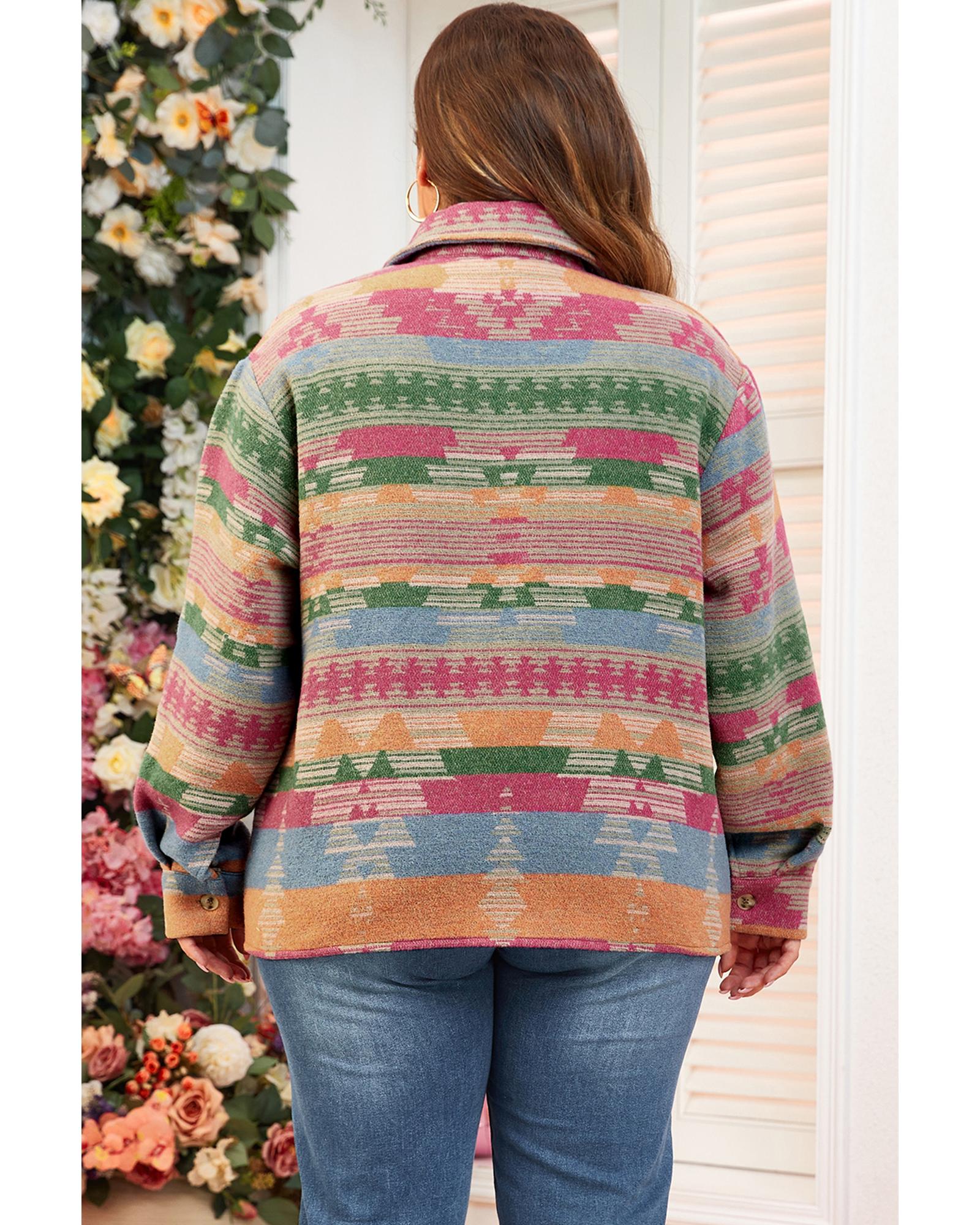 - Pink Plus Size Aztec Printed Flap Pocket Shacket