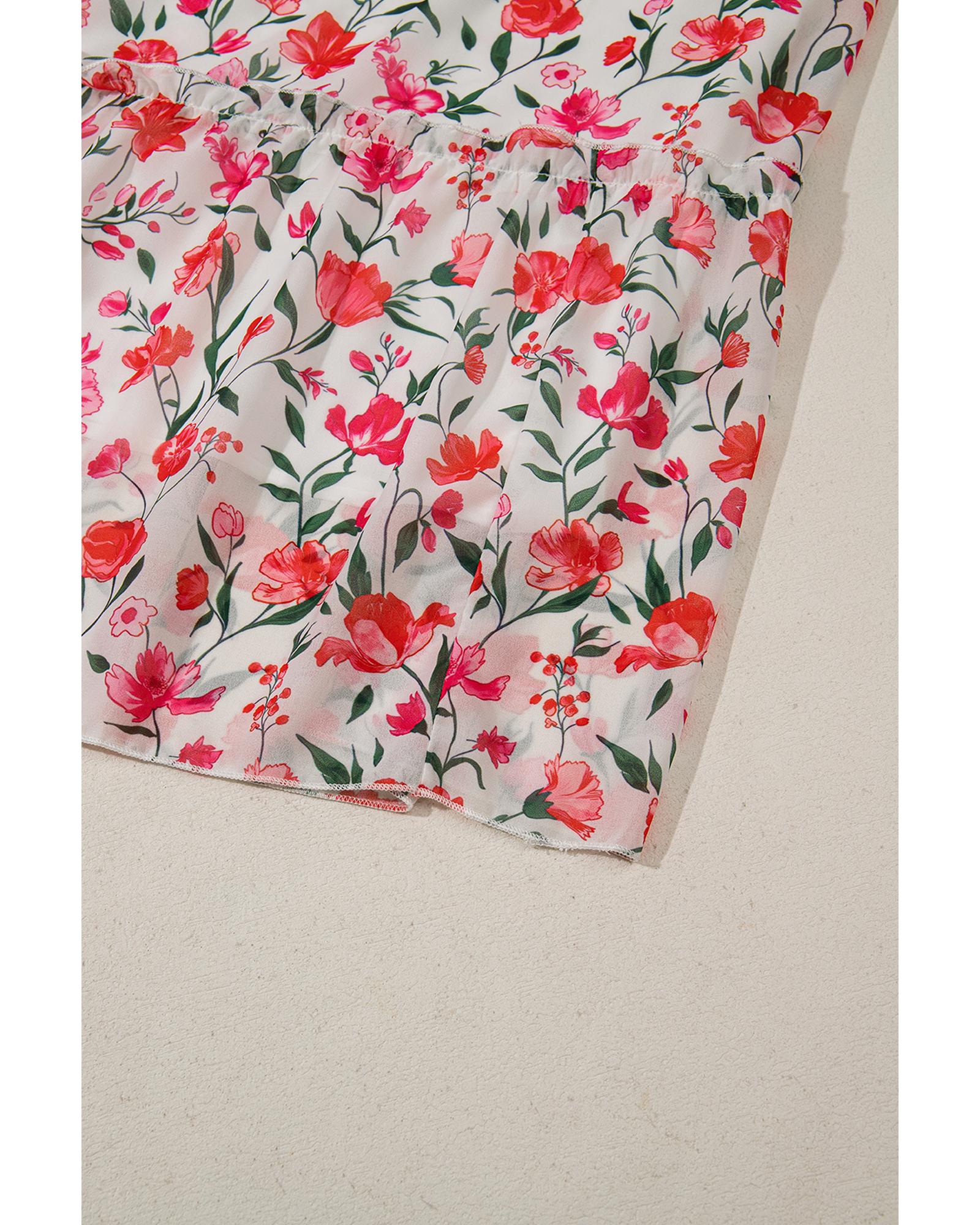 Pink Plus Size Floral Square Neck Puff Sleeve Ruffle Maxi Dress - 2X