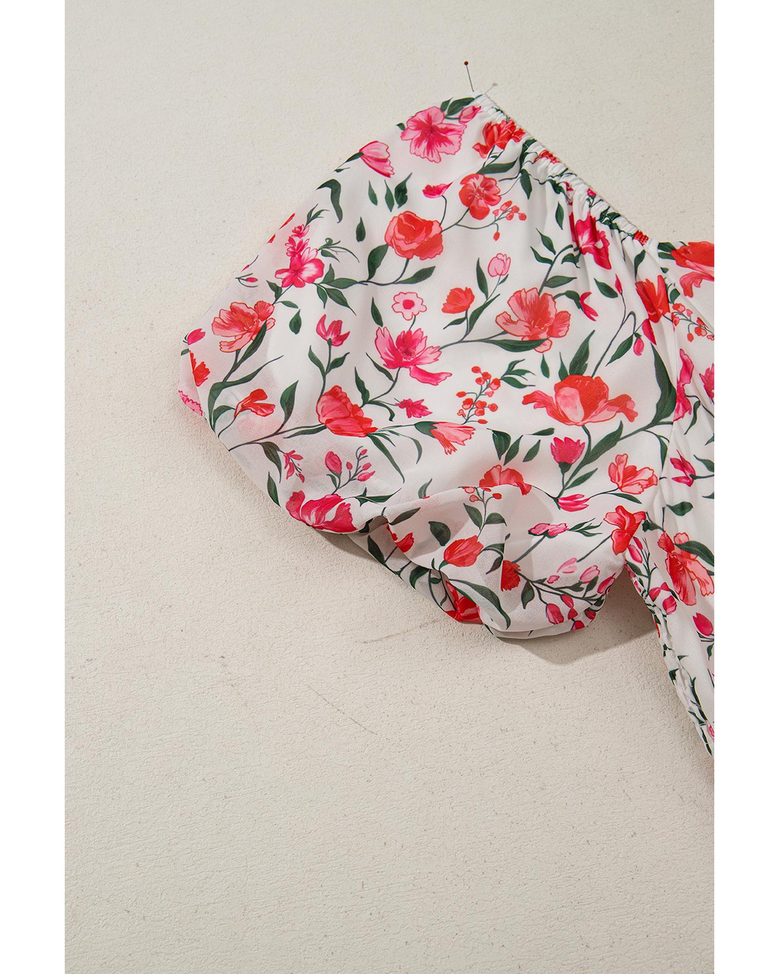 Pink Plus Size Floral Square Neck Puff Sleeve Ruffle Maxi Dress - 2X