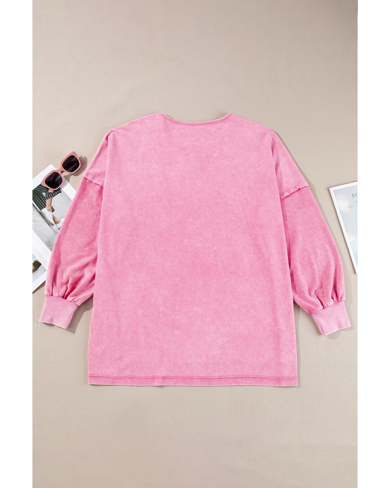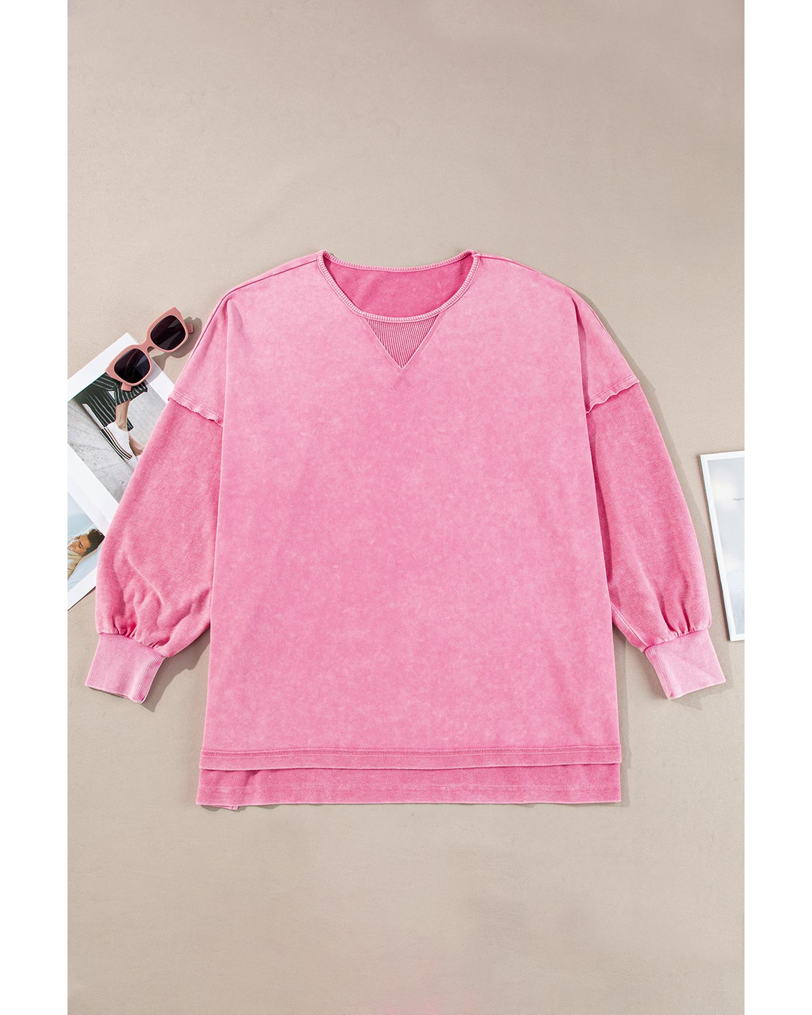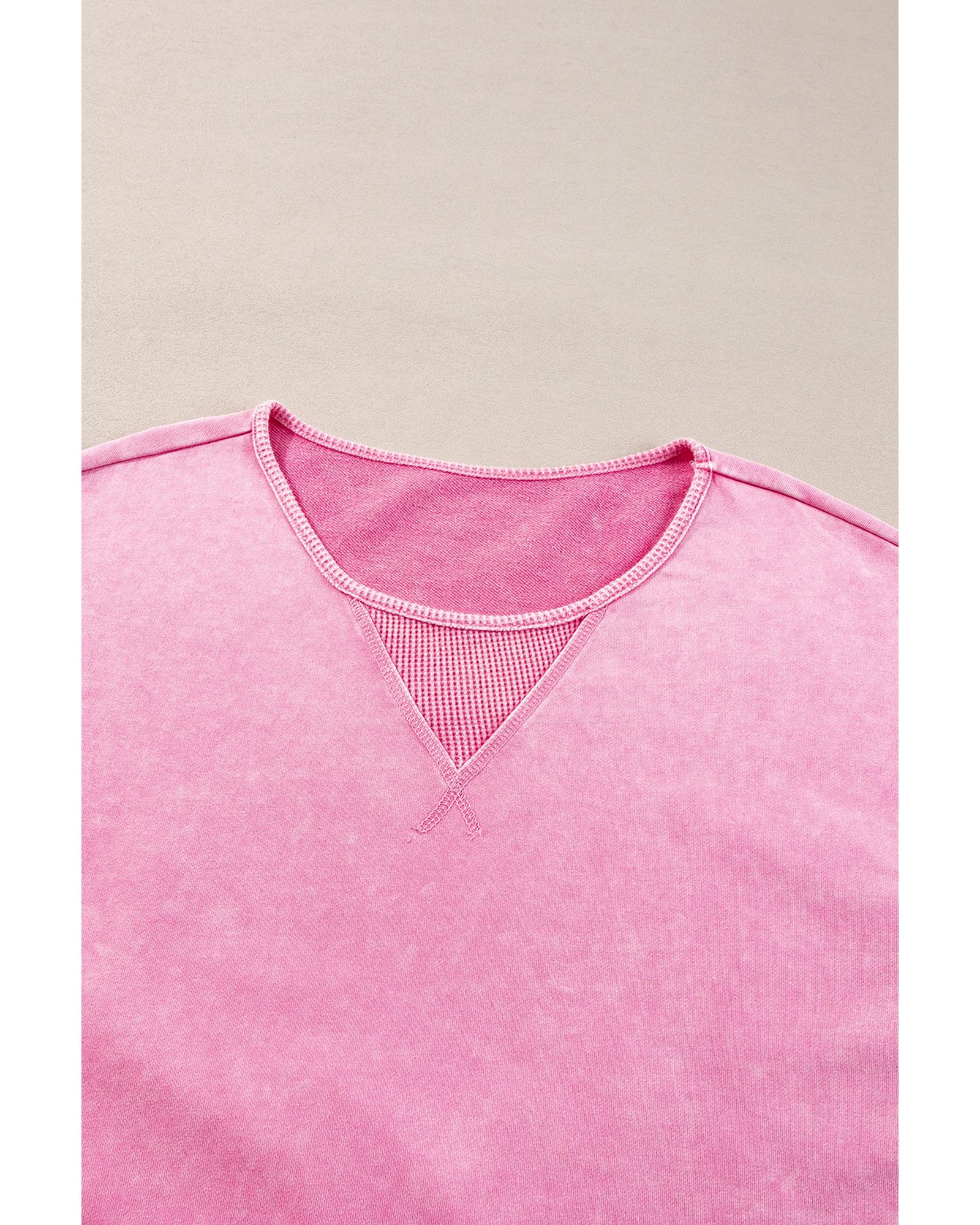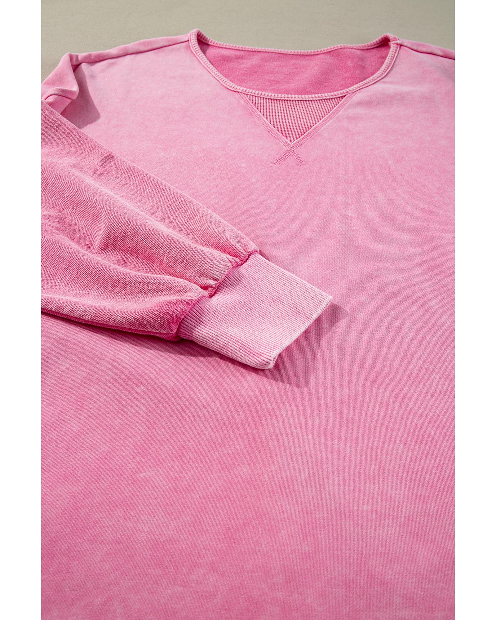 Pink Plus Size Mineral Wash Drop Shoulder Round Neck Sweatshirt – 2X