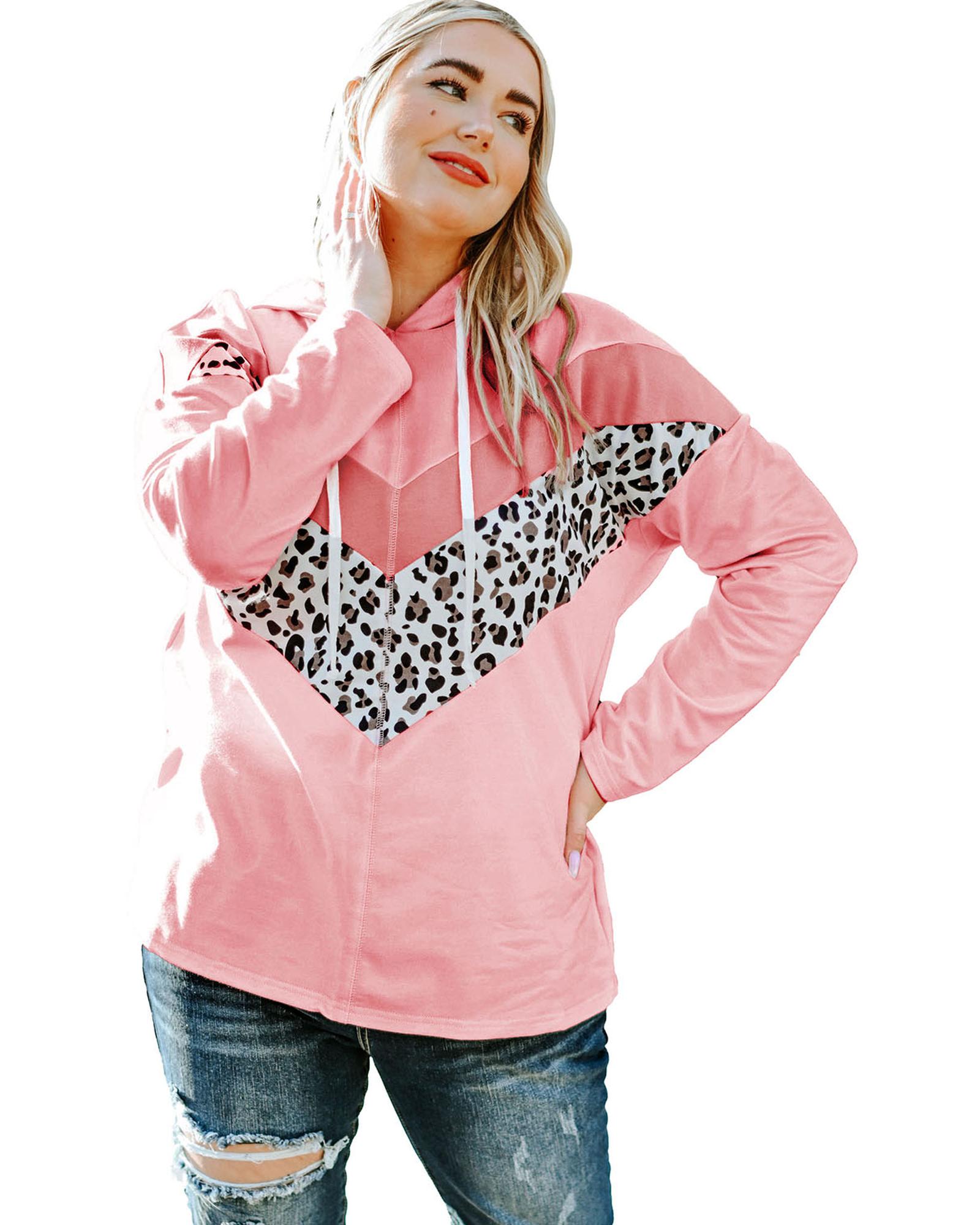Pink Plus Size Taupe Chevron Hooded Top – 2X