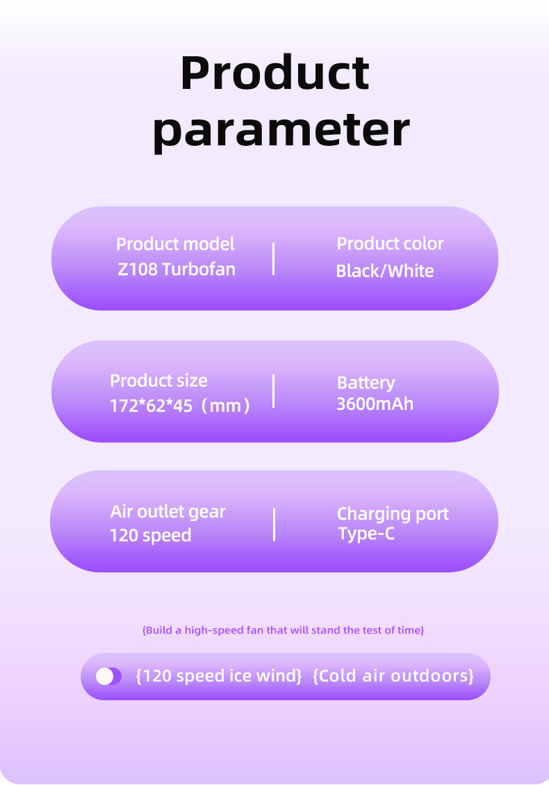 Stay cool anywhere with this Portable Handheld Fan featuring a 120-speed digital display. Designed for powerful cooling, this USB rechargeable mini fan delivers a strong cold blast with a rapid cooling rate of 300%, thanks to its high-speed motor reaching up to 80000 RPM and 29000 RPM options. Ideal for outdoor activities or daily use, its compact design fits easily into your pocket or bag. Made from durable ABS and TPE materials, it offers a stylish aesthetic in multiple colors, ensuring both performance and portability.