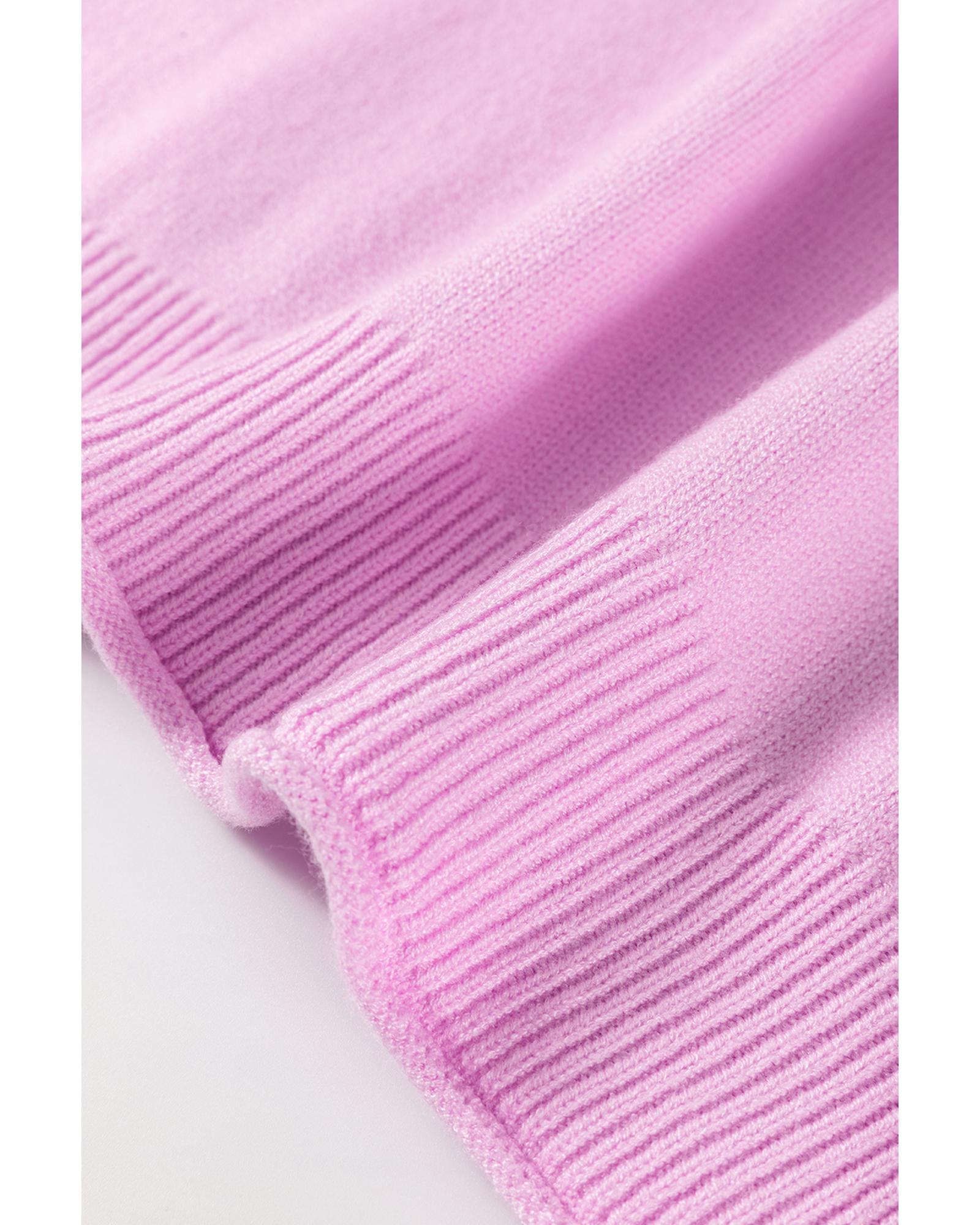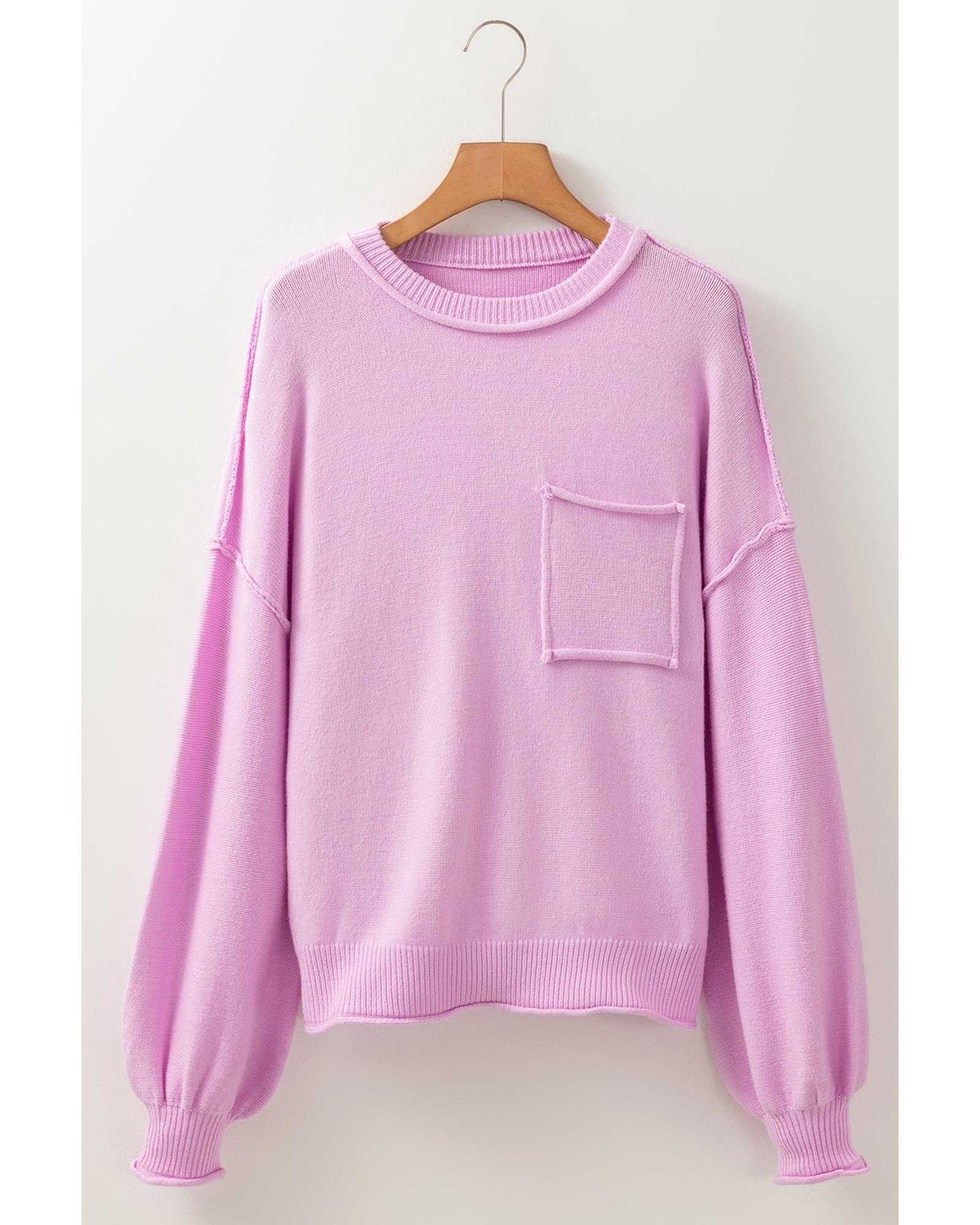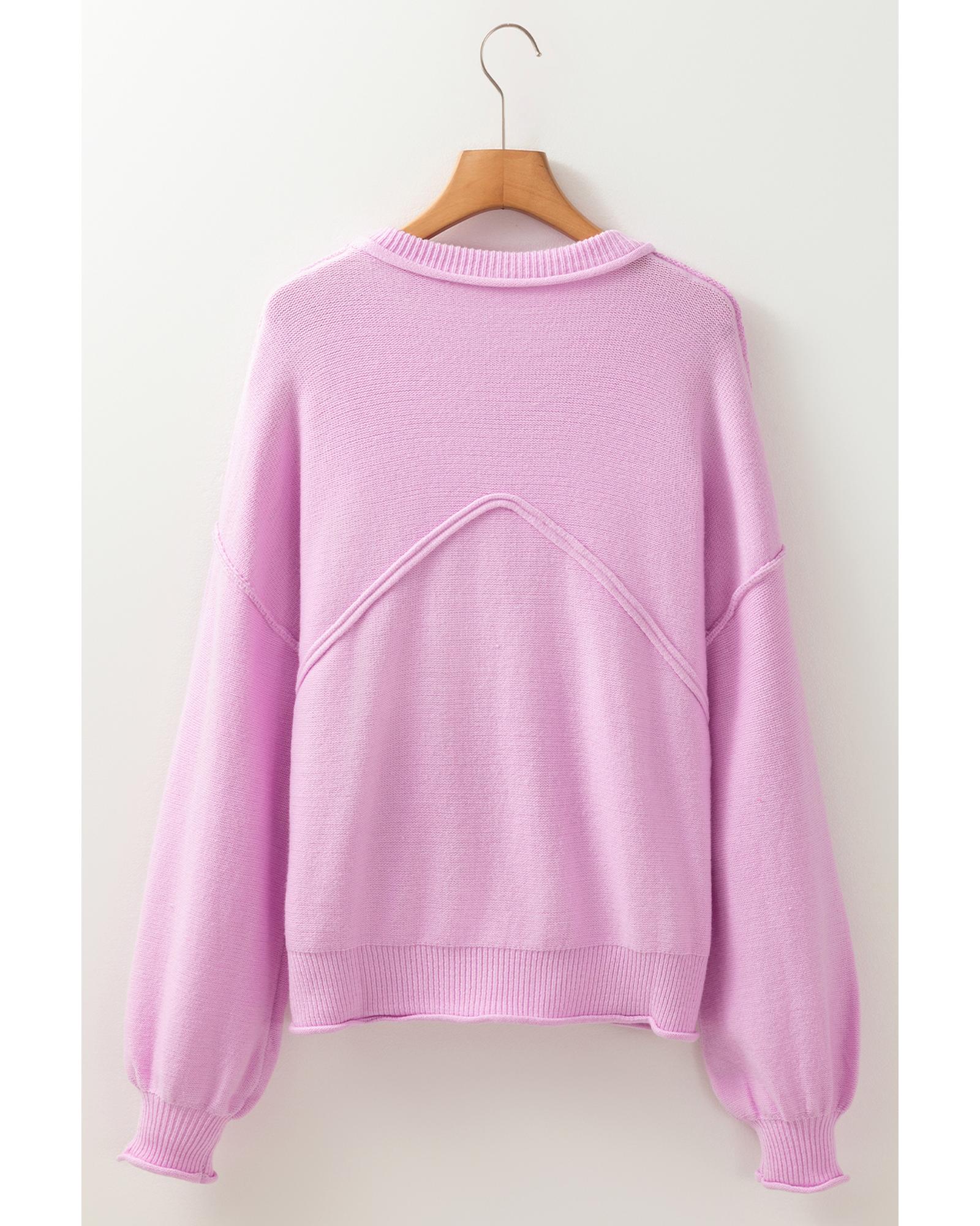 Pink Raw Edge Ribbed Detail Drop Shoulder Sweater – L