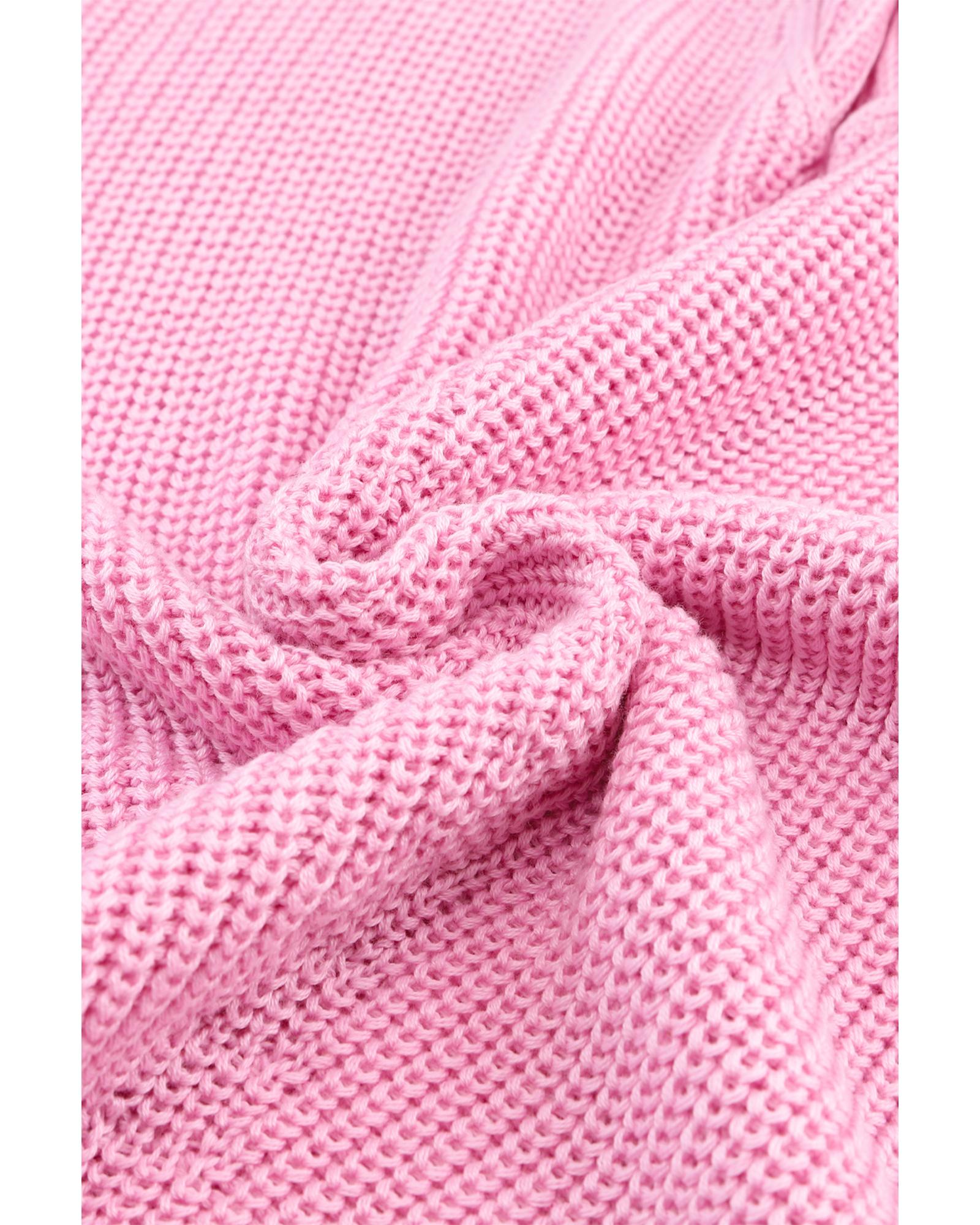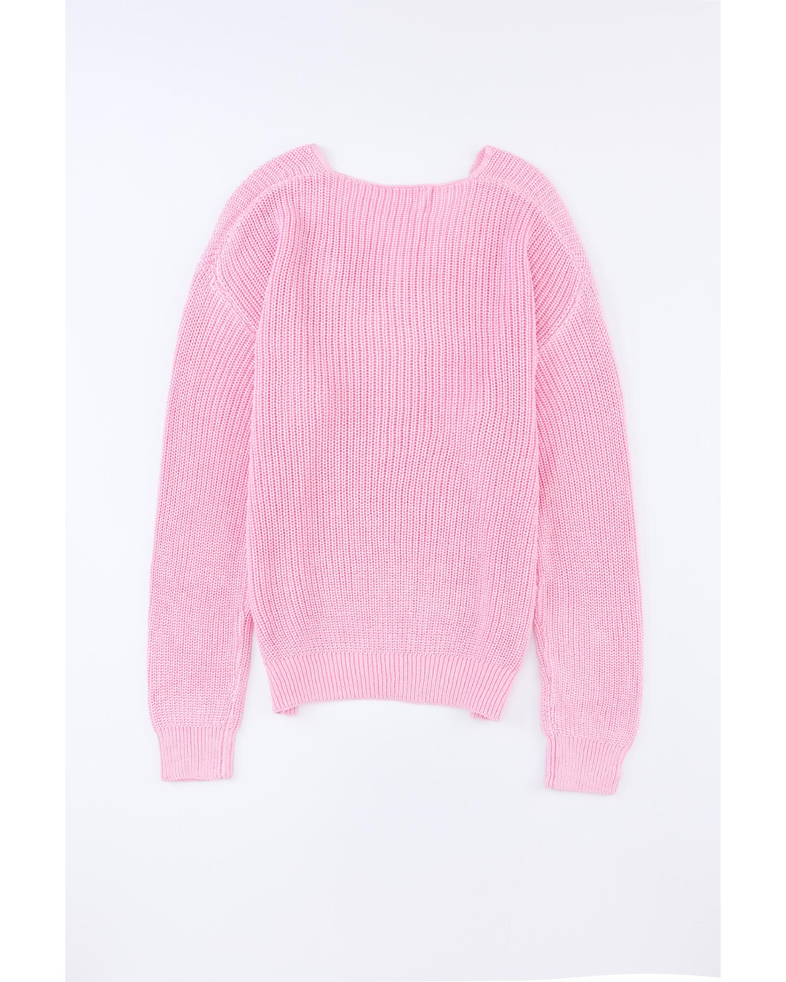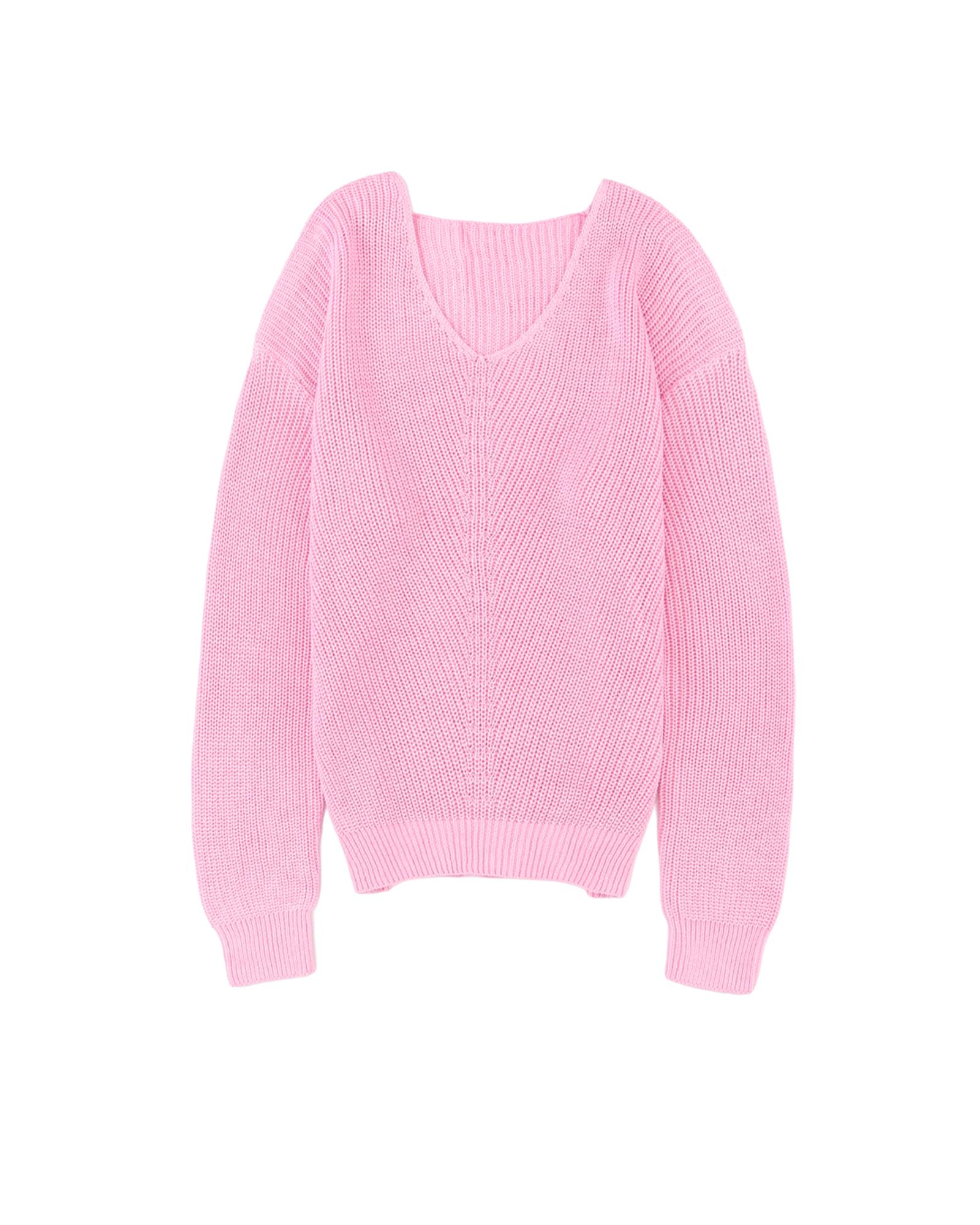 Pink Ribbed Knit V Neck Sweater – M
