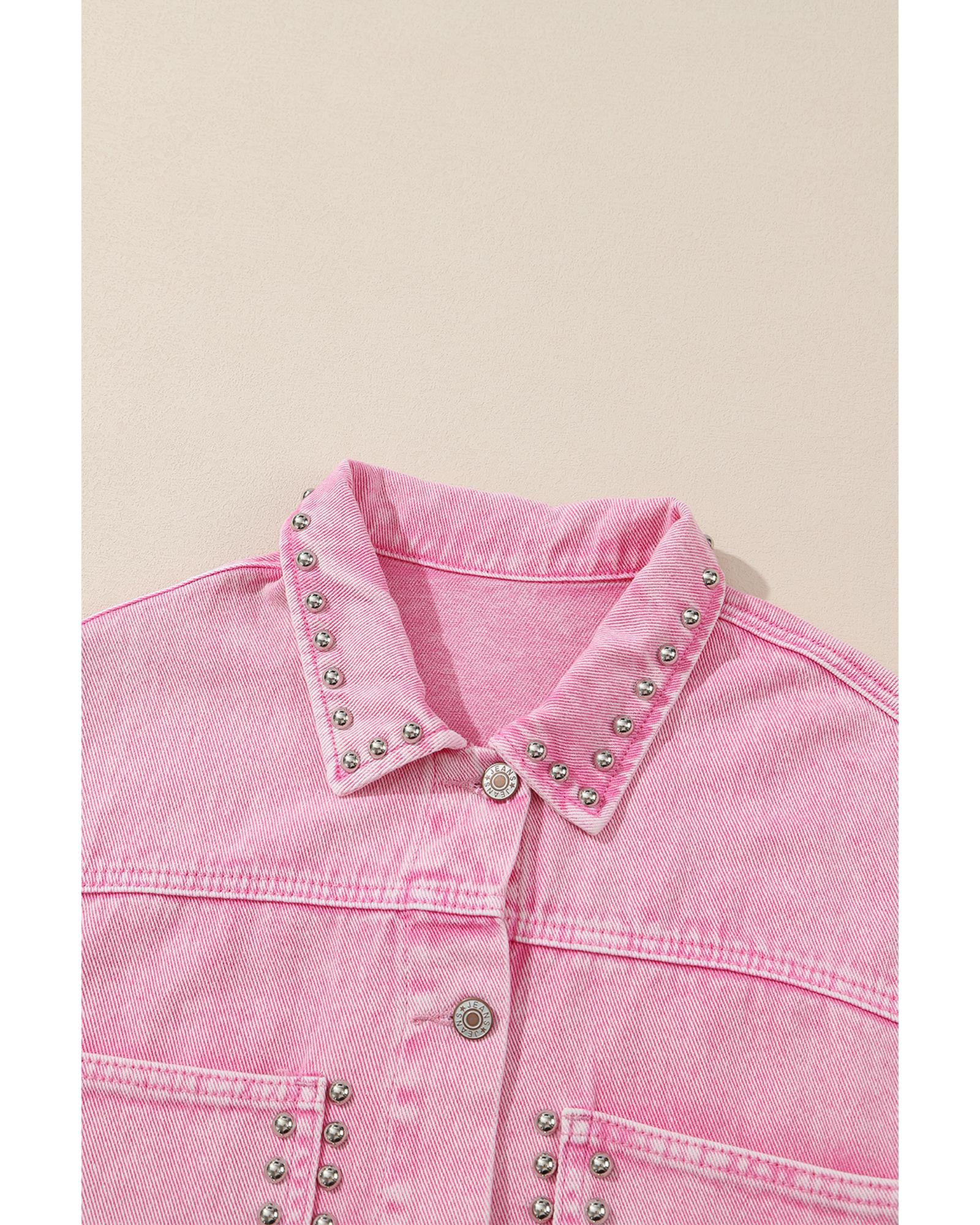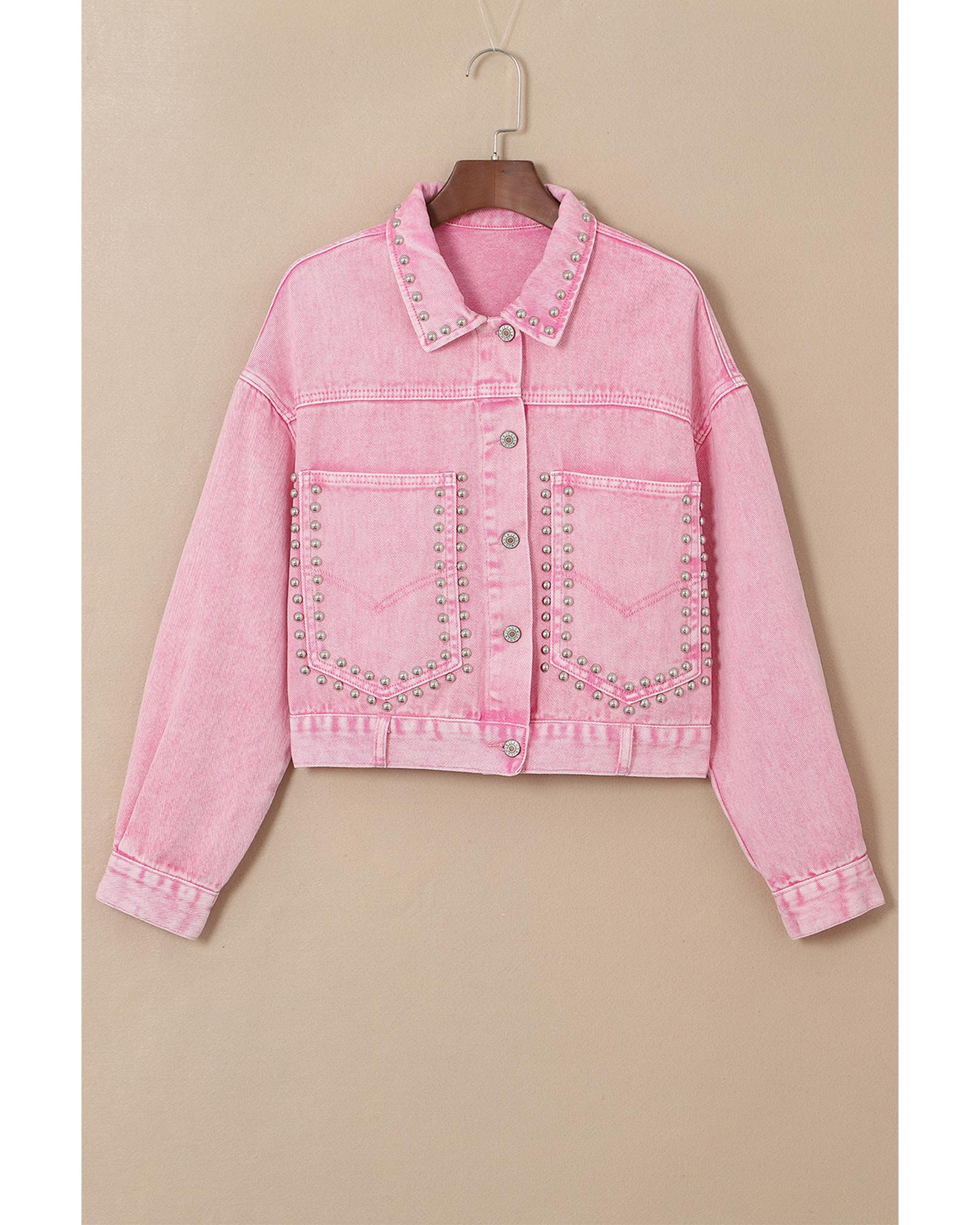 Pink Rivet Studded Pocketed Denim Jacket - S
