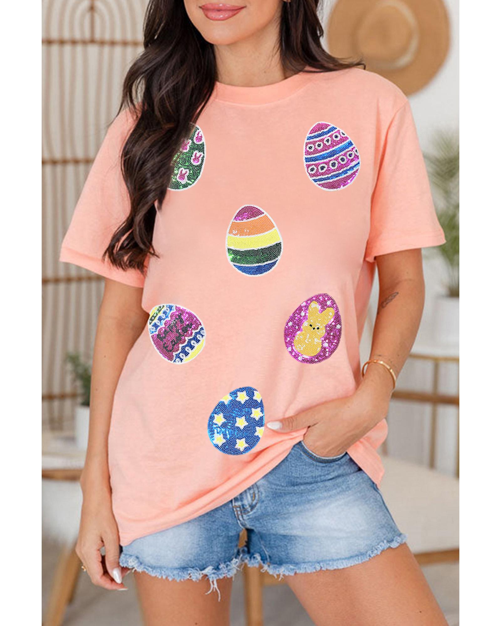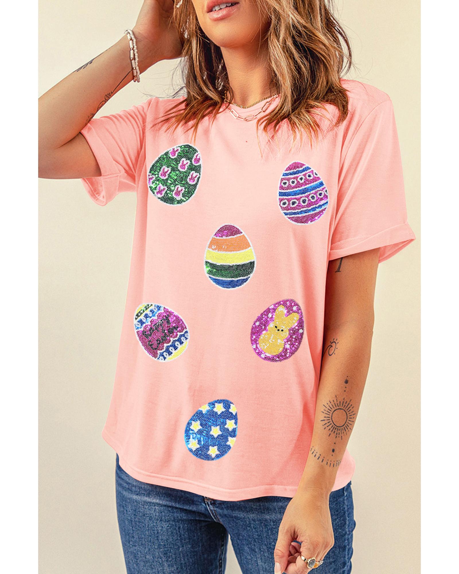 Pink Sequin Easter Eggs Graphic Crewneck T Shirt – XL