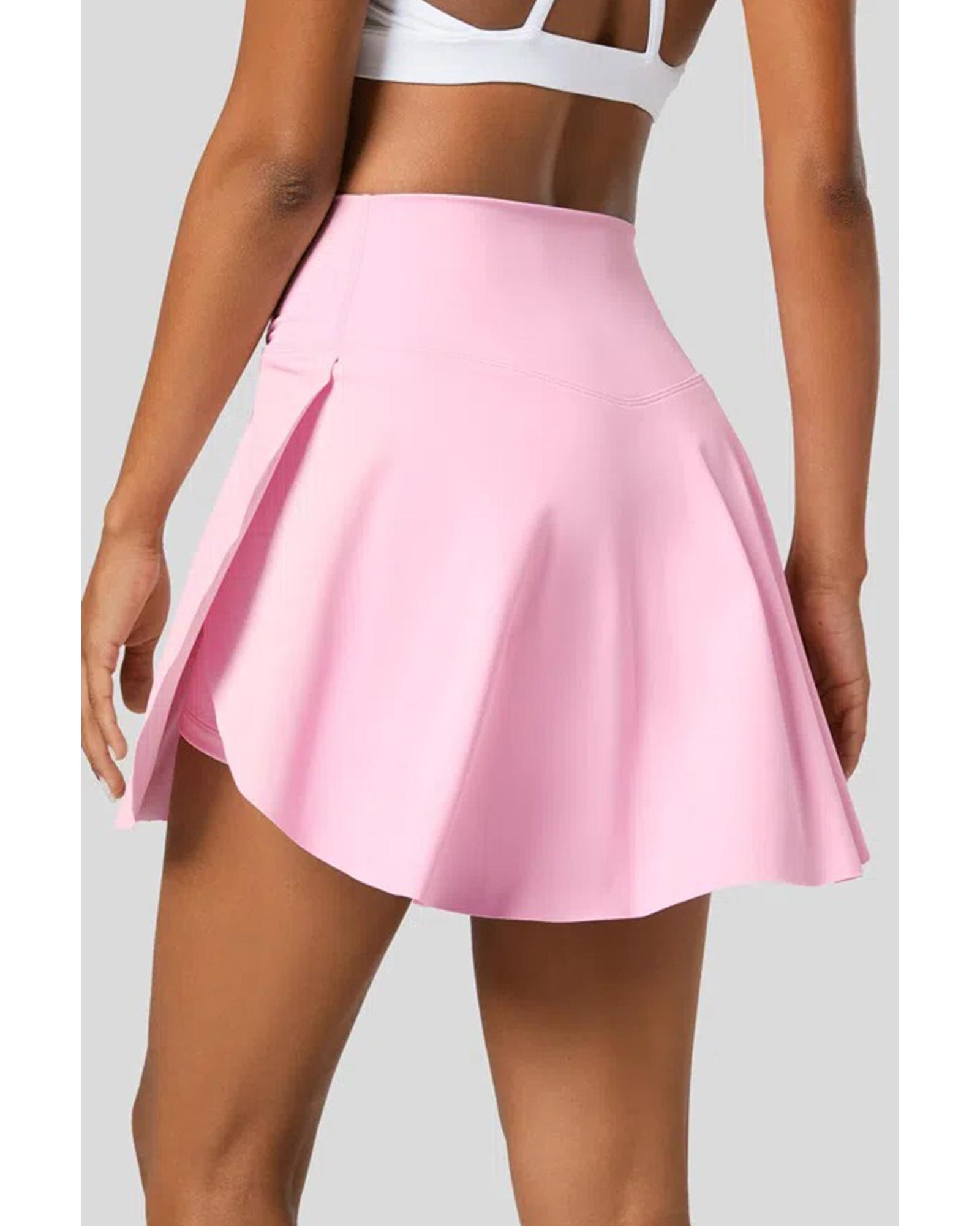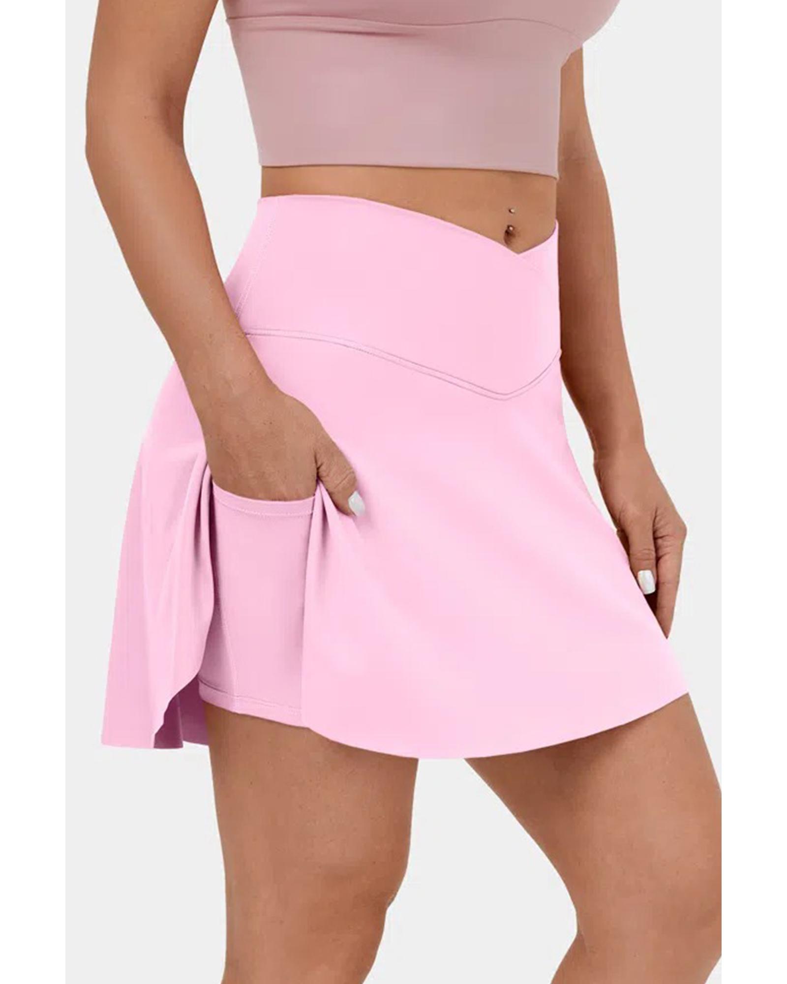 Pink Solid Pocketed Crossover High Waist Swim Skort – L
