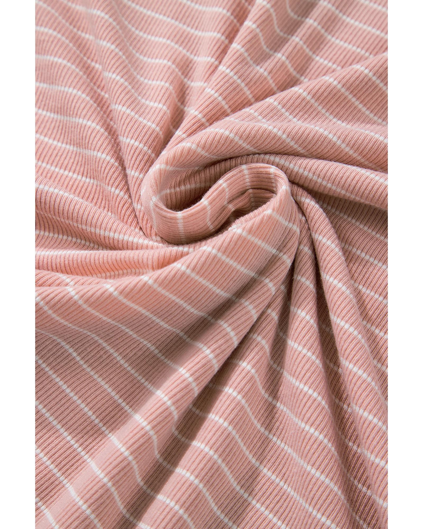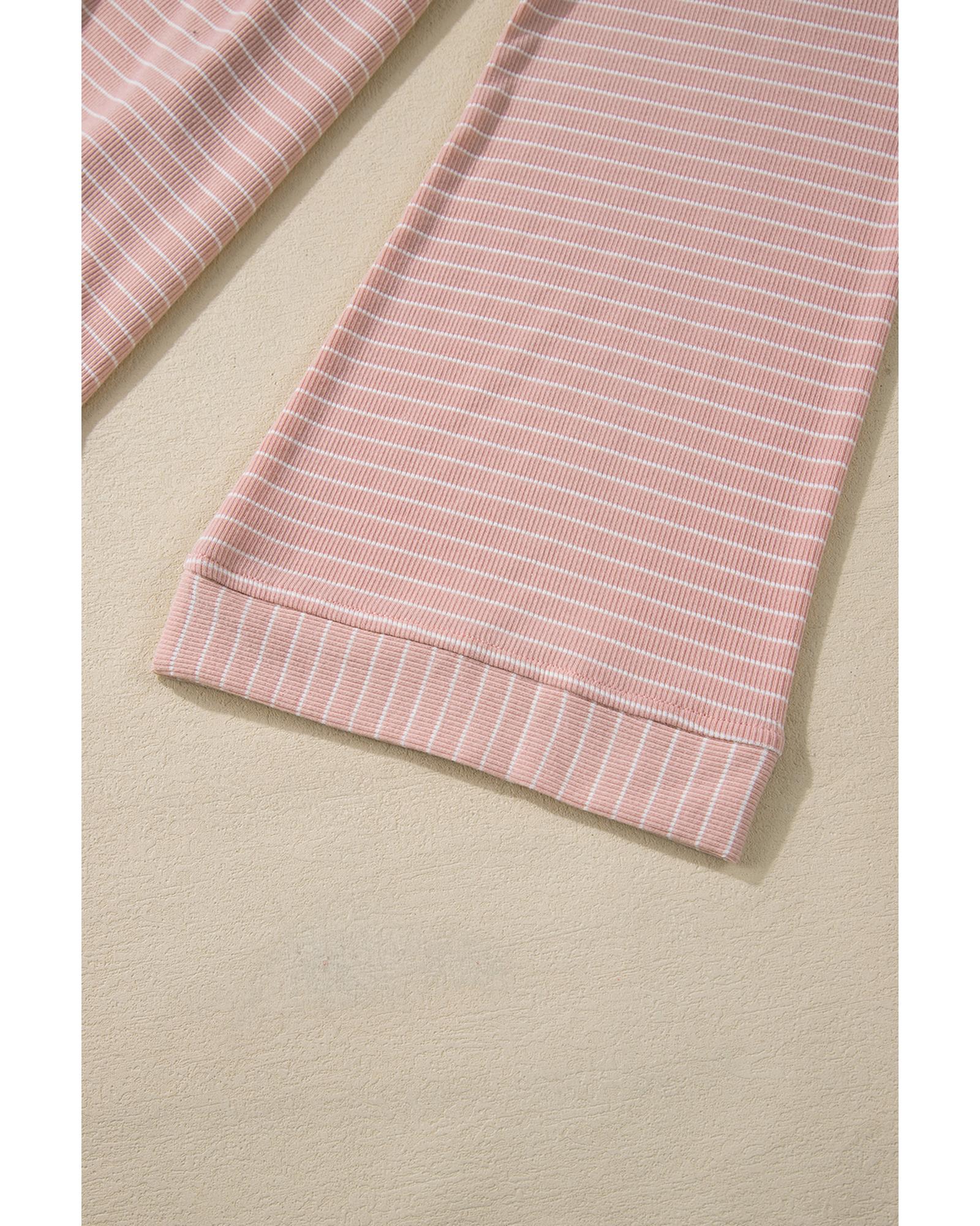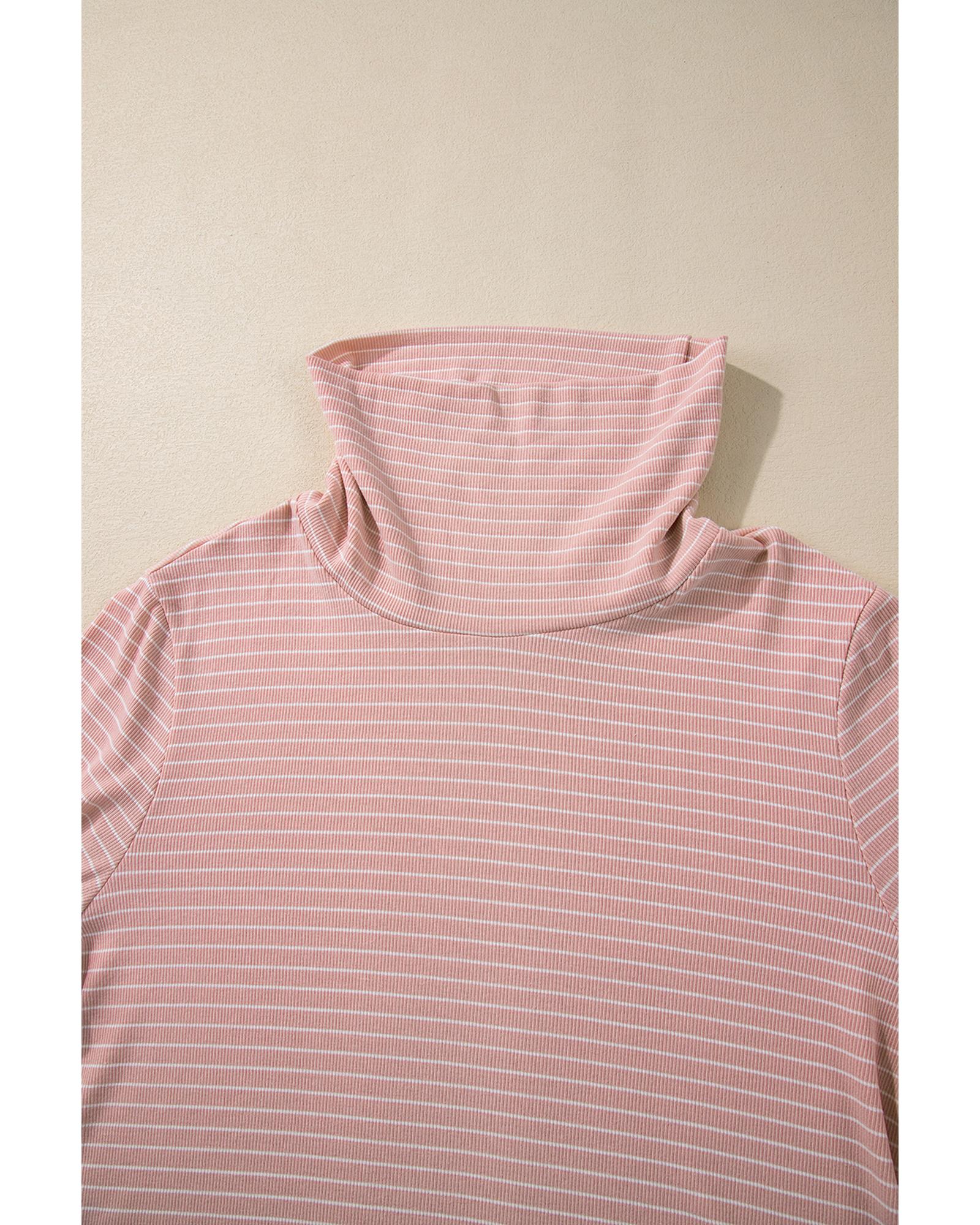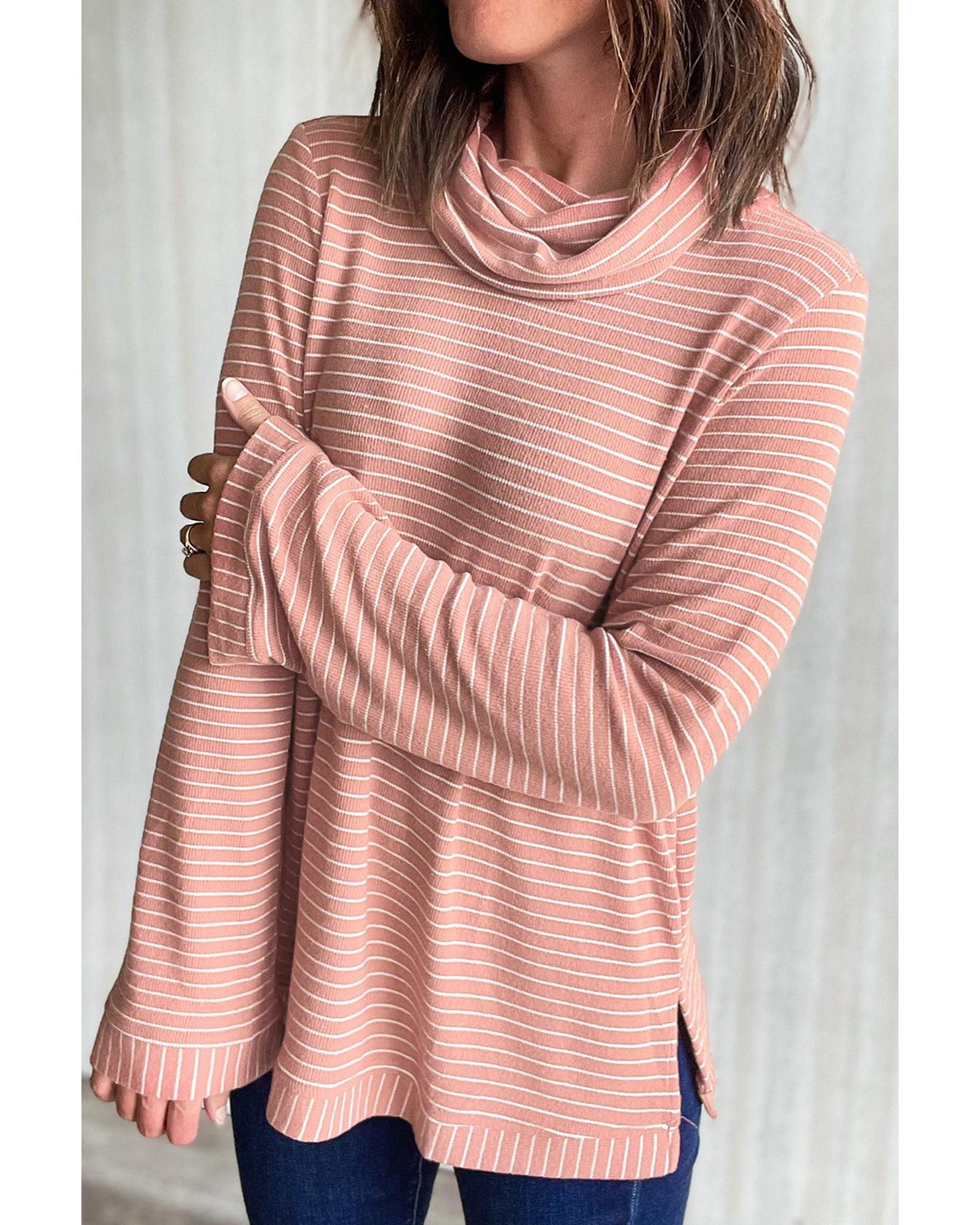 Pink Stripe Cowl Neck Side Slits Loose Fit Long Sleeve Top – M