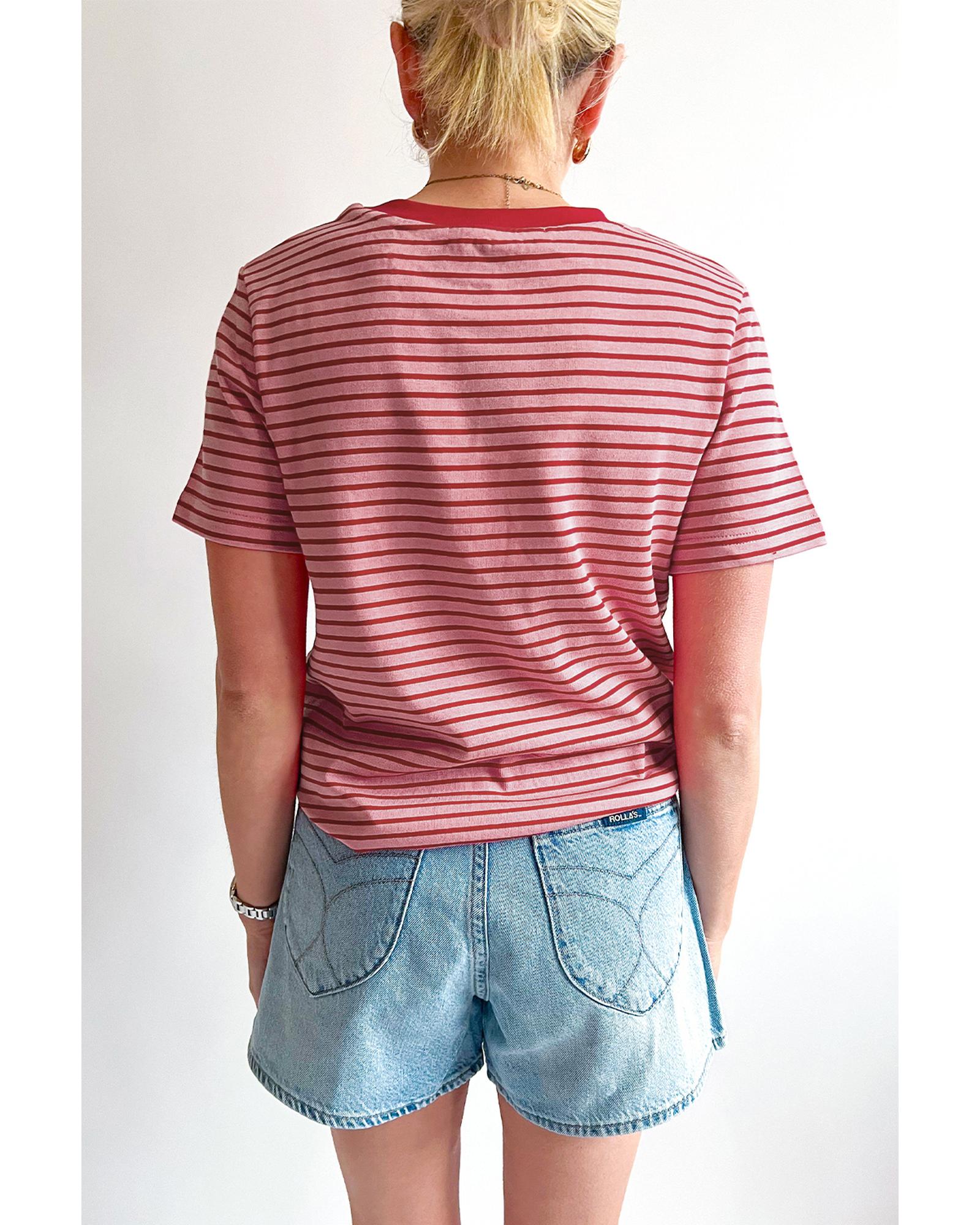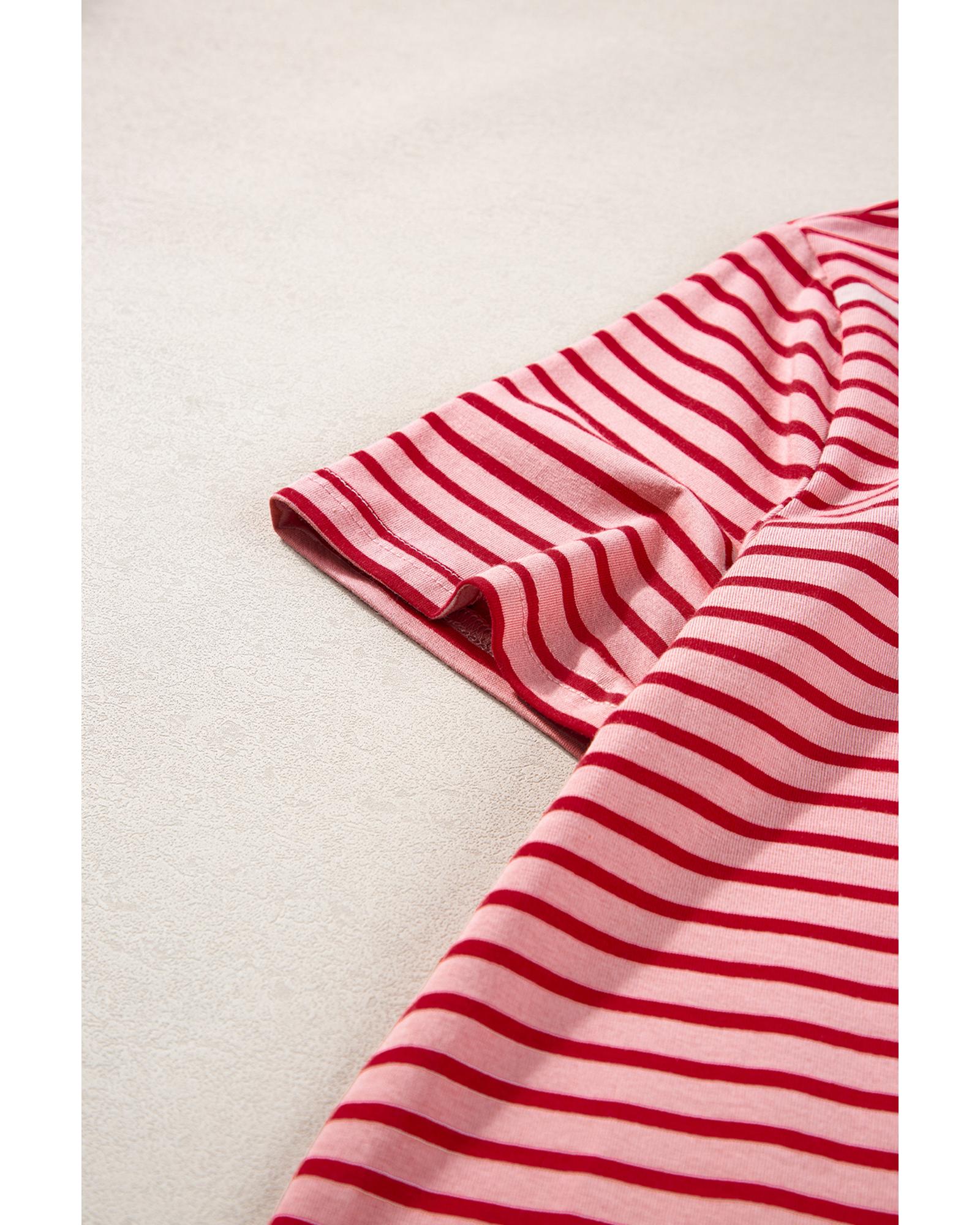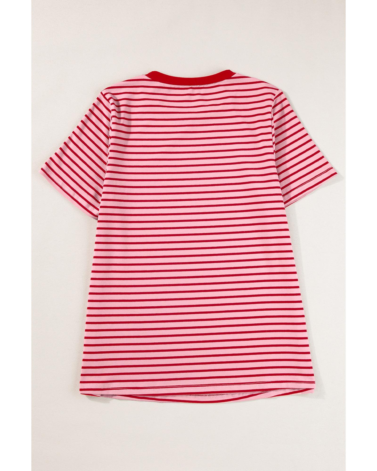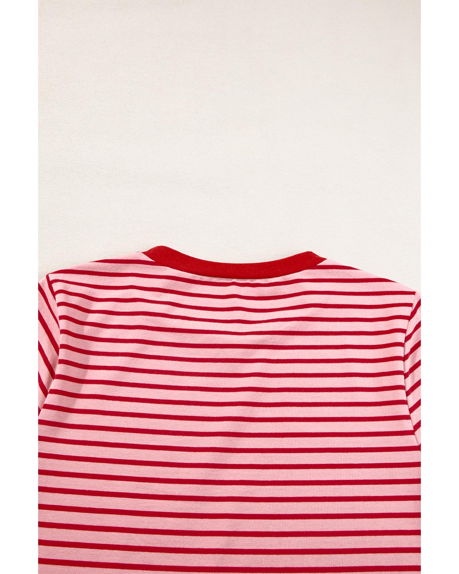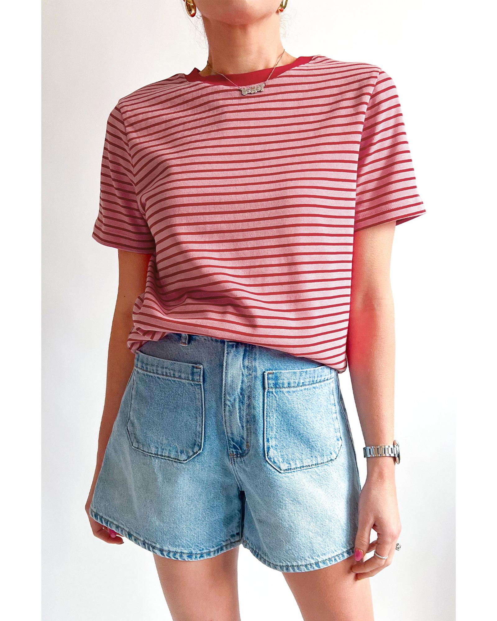 Pink Stripe Crew Neck Casual T Shirt – XL