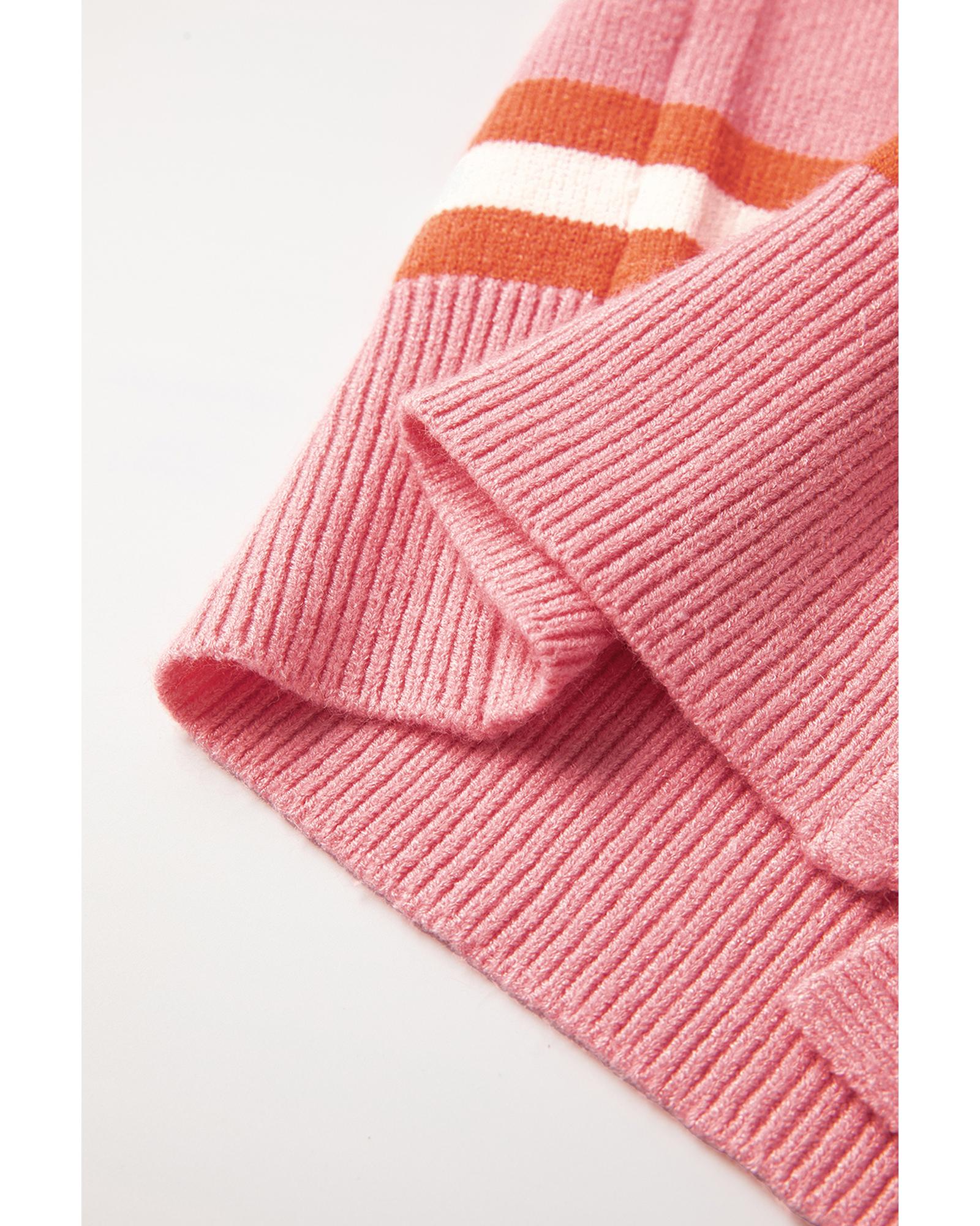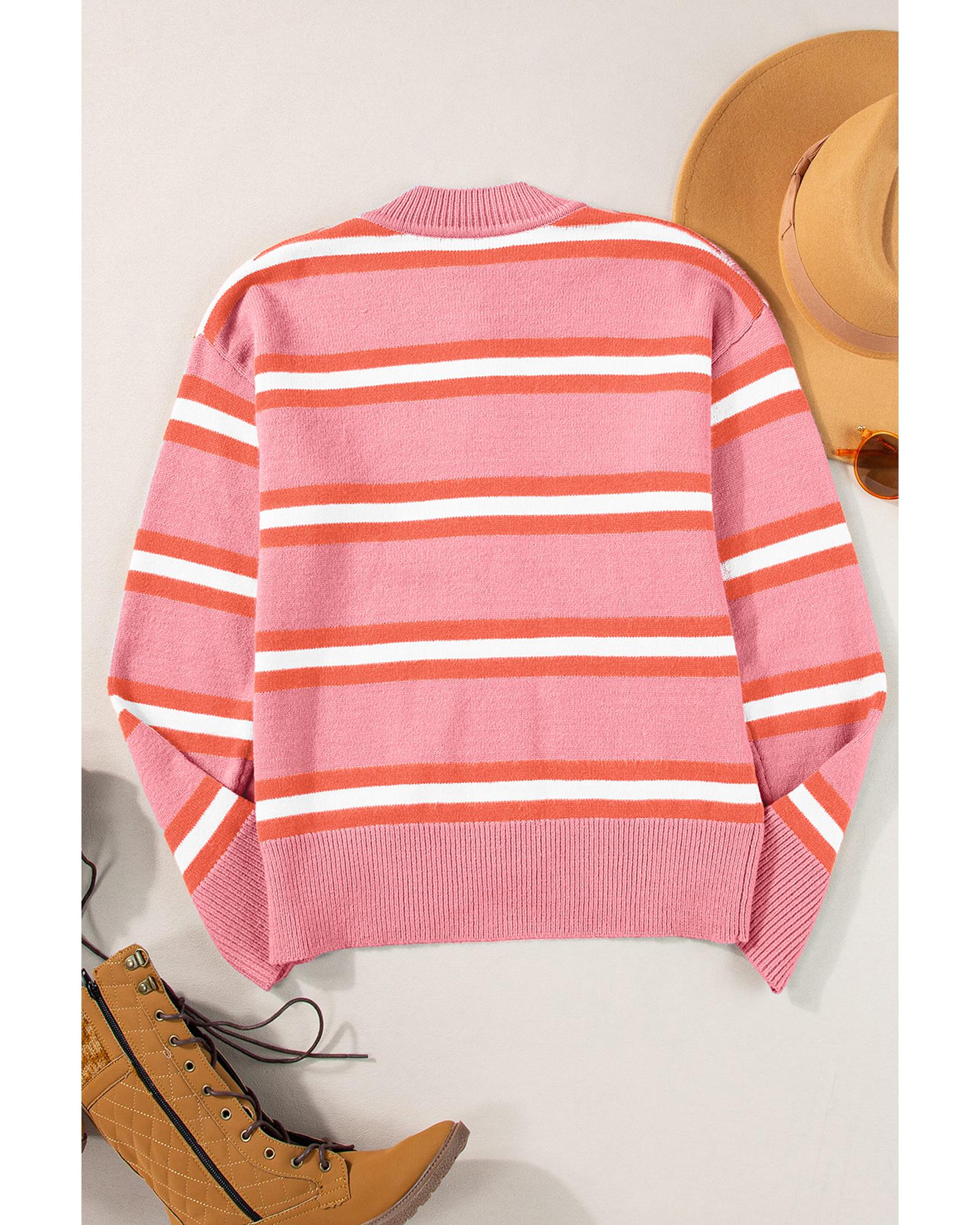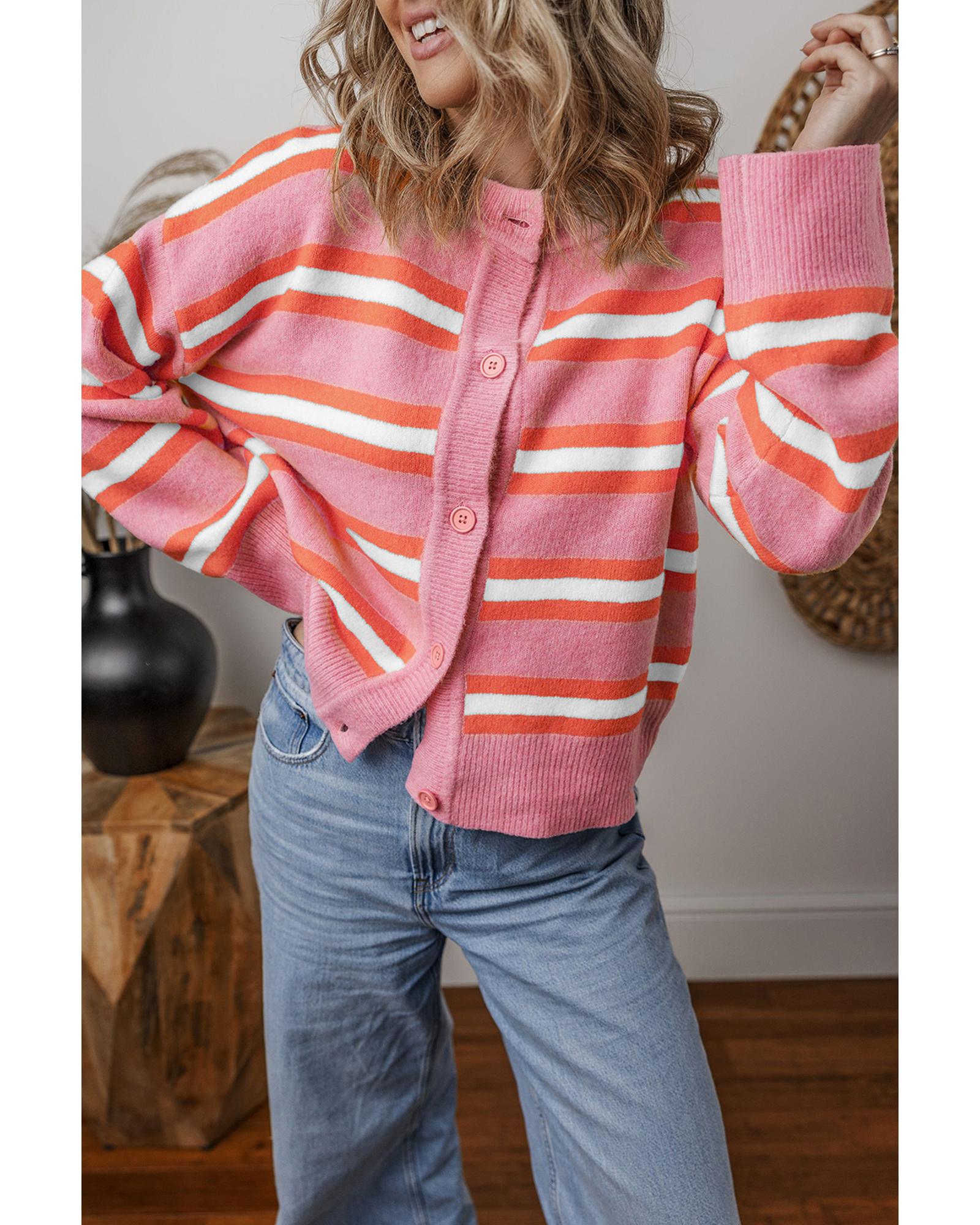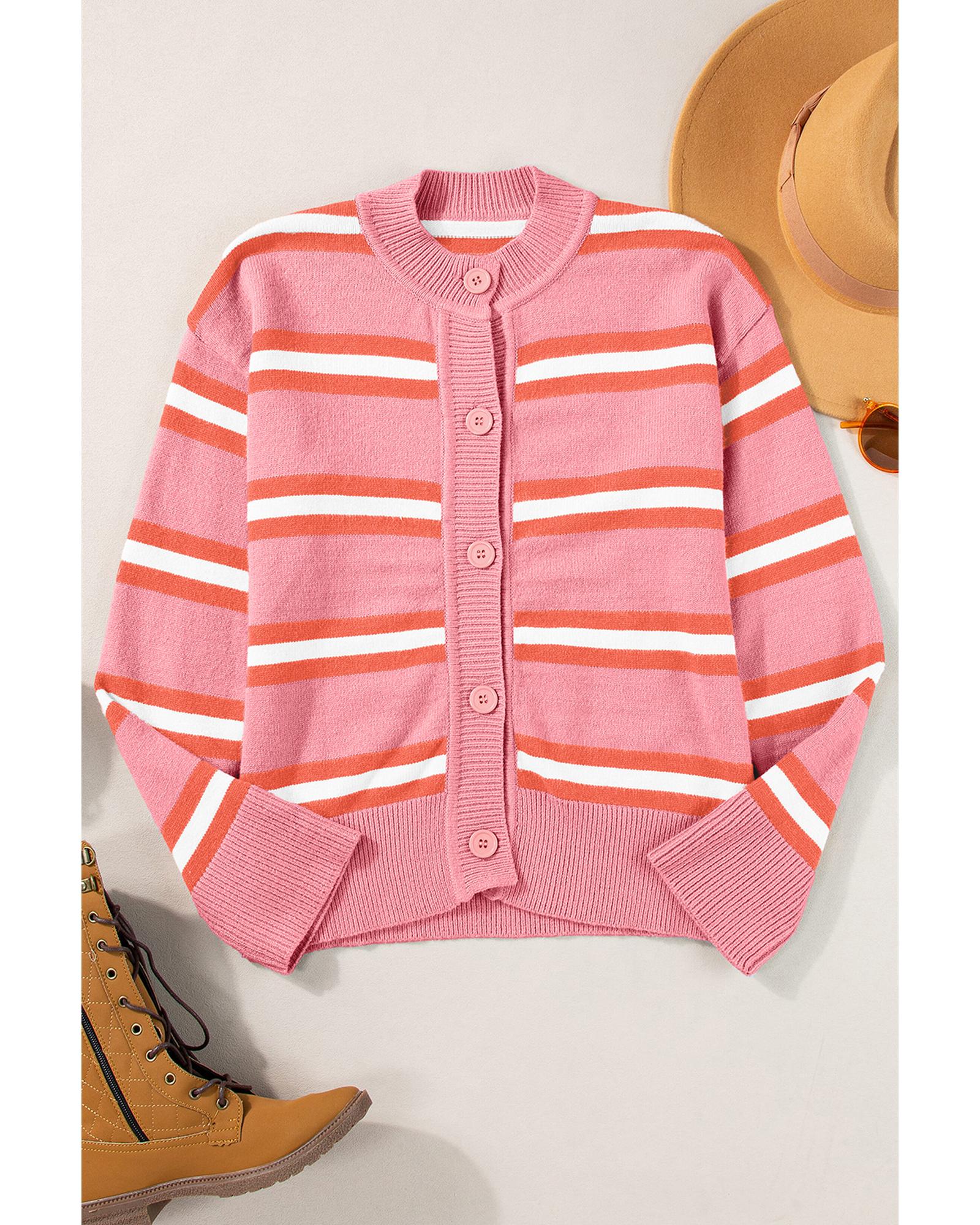 - Pink Stripe Drop Shoulder Buttons Cardigan Sweater